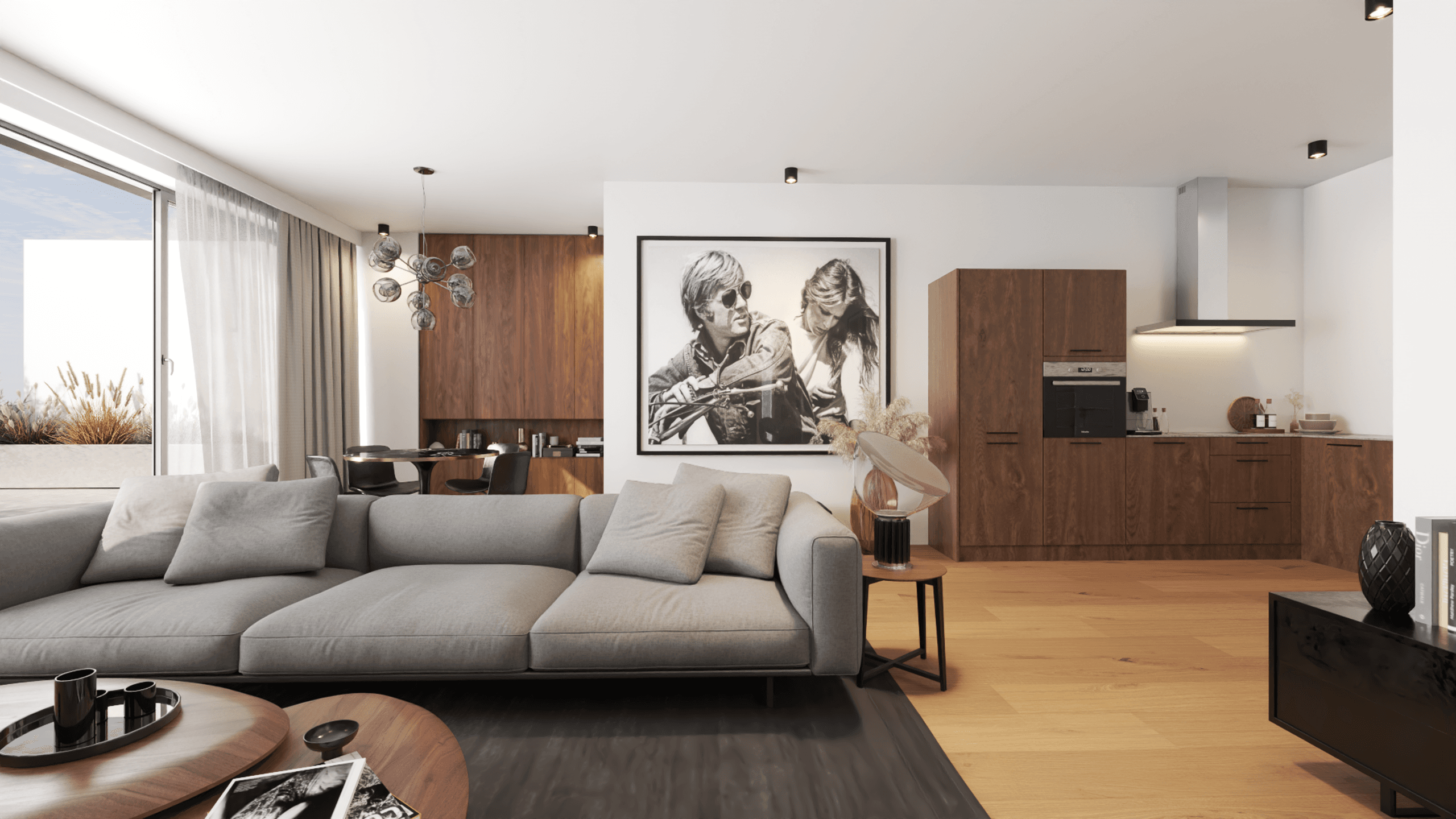 SINT-LAMBRECHTS-WOLUWE - Gelegen in een rustige, groene omgeving dicht bij de grote verkeersaders (E40, R0) en een groot aantal faciliteiten (Woluwe Shopping Centre, UCL, luchthaven, metro), prachtig APPARTEMENT (2slpk/1douchek) van 112,8 m² met een TERRAS en een PRIVETUIN. Gelegen op de 1e verdieping (tuinniveau), bestaat het uit een inkomhal met toilet en wasruimte, een mooie woonkamer van 45,8 m² met schuiframen die uitkomen op het op het westen gerichte terras en de tuin, een super ingerichte open keuken, een hoofdslaapkamer van 14,7 m², een tweede slaapkamer van 11,3 m² en een doucheruimte (dubbele wastafel, douche). Naast de strategische ligging zal dit appartement u verleiden met zijn helderheid en prachtige GEMEENSCHAPPELIJKE BUITENRUIMTE. Het gebouw voldoet aan de huidige comfort- en duurzaamheidsnormen : hoge thermische en akoestische isolatie, zuinige verwarming, dubbele ventilatie. EPC A tot B-. Kelder en parking tegen meerprijs. Beveiligde fietsenstalling. Verkoop van het appartement onderworpen aan 21% btw en van de kelder en parkeerplaats onderworpen aan 12,5% registratierechten. Te ontdekken bij L&P !