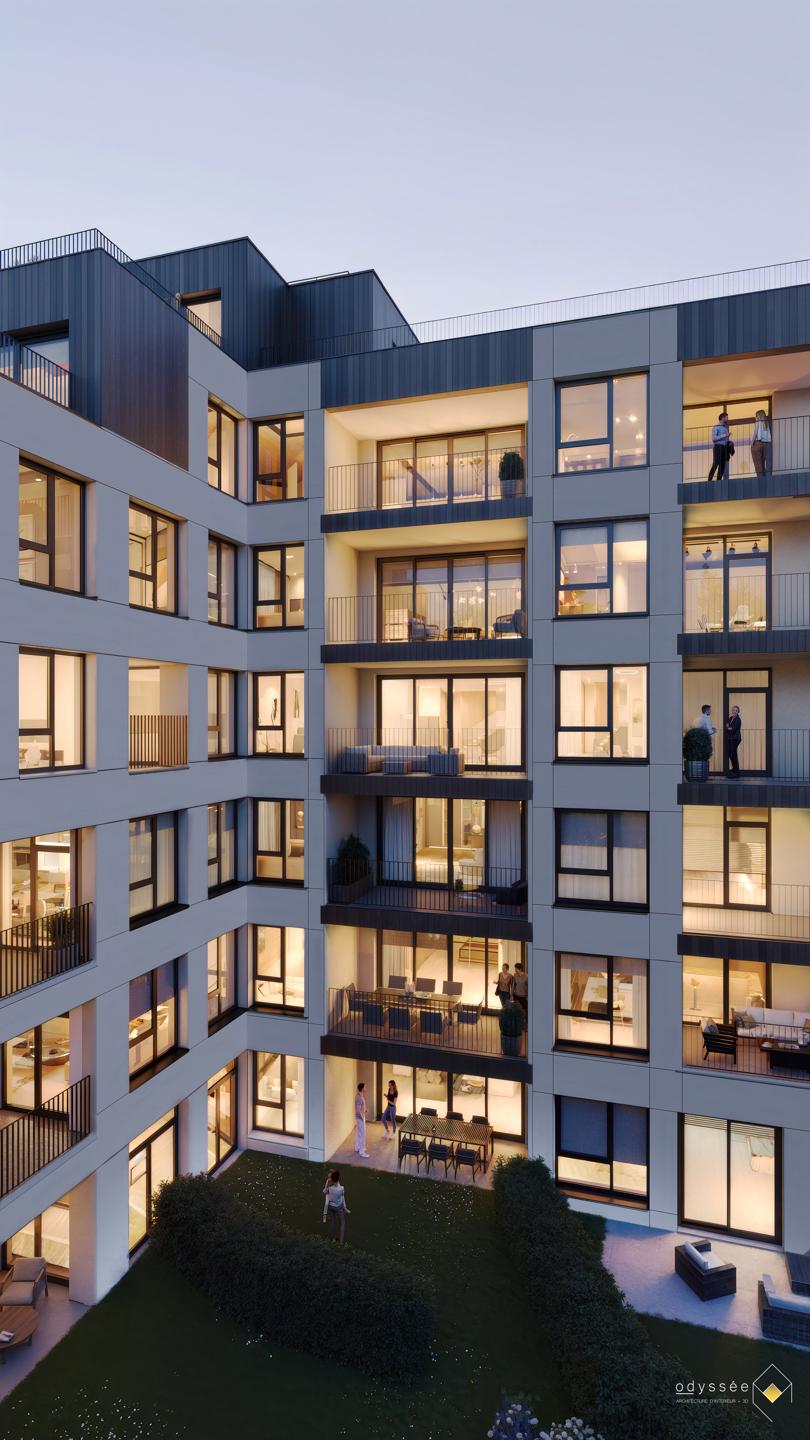 SINT-LAMBRECHTS-WOLUWE - Gelegen in een rustige, groene omgeving dicht bij de grote verkeersaders (E40, R0) en een groot aantal faciliteiten (Woluwe Shopping Centre, UCL, luchthaven, metro), prachtig APPARTEMENT (2slpk/1badk) van 95,4 m² met een TERRAS. Gelegen op de 2e verdieping, bestaat het uit een inkomhal met toilet en wasruimte, een mooie woonkamer met een super ingerichte open keuken van 31,9 m² met schuiframen die uitkomen op het op het westen gerichte terras, een hoofdslaapkamer van 14,7 m², een tweede slaapkamer van 11,3 m² en een doucheruimte (dubbele wastafel, douche). Naast de strategische ligging zal dit appartement u verleiden met zijn helderheid en prachtige GEMEENSCHAPPELIJKE BUITENRUIMTE. Het gebouw voldoet aan de huidige comfort- en duurzaamheidsnormen : hoge thermische en akoestische isolatie, zuinige verwarming, dubbele ventilatie. EPC A tot B-. Kelder en parking tegen meerprijs. Beveiligde fietsenst. Verkoop van het appartement onderworpen aan 21% btw en van de kelder en parkeerplaats onderworpen aan 12,5% registratierechten. Te ontdekken bij L&P !