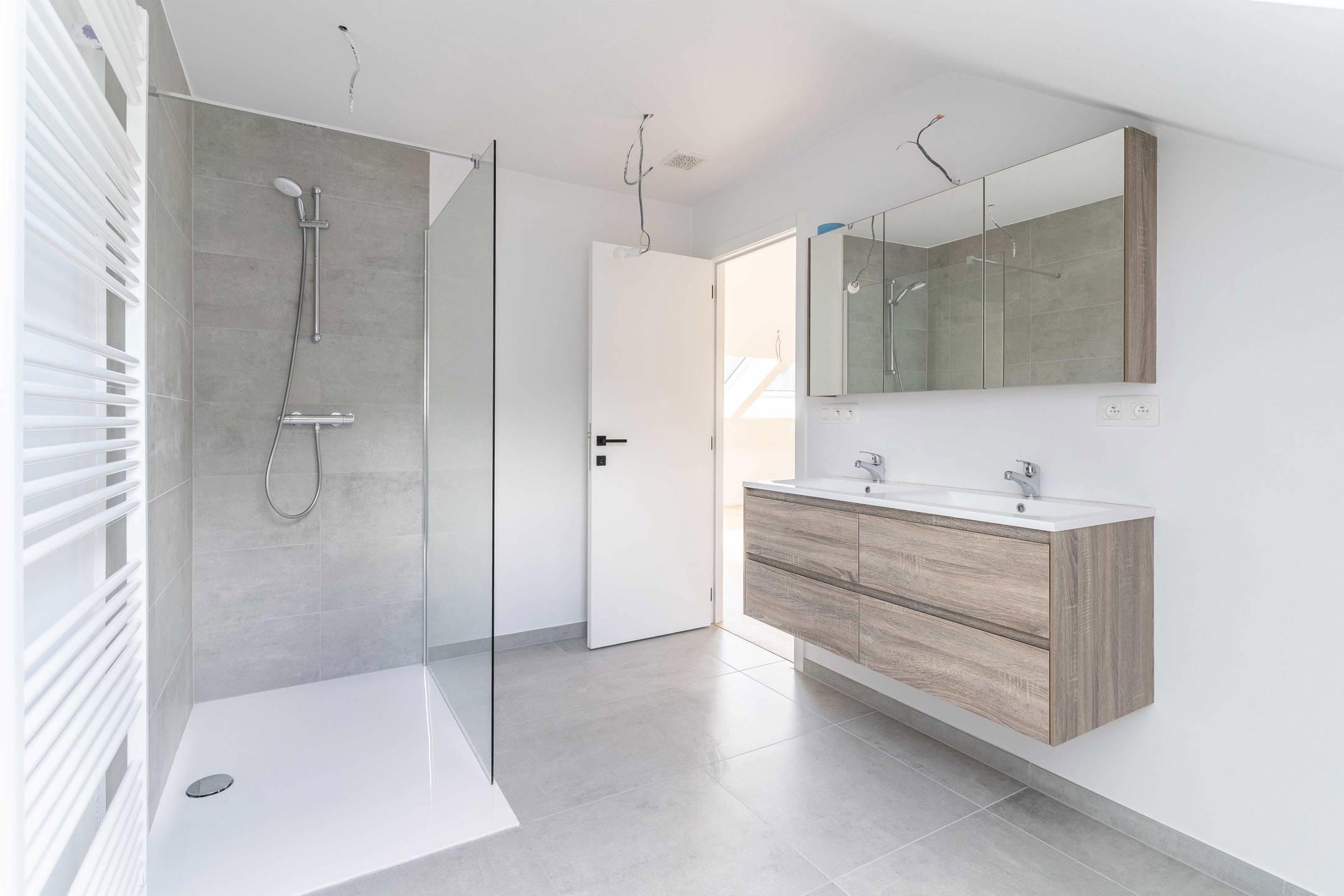 EIGENBRAKEL - Gelegen in de groene wijk Terra Nostra, tussen de Leeuw van Waterloo en Mont-Saint-Jean, in de buurt van een groot aantal faciliteiten (winkels, scholen, bussen 129 en W, station Braine-l'Alleud, R0), prachtig NIEUW HUIS (4slpk/1batk/2douchek) van 240 m², met een TERRAS en een TUIN op het zuidoosten. Onmiddellijk beschikbaar ! Het bestaat uit een inkomhal met op maat gemaakte kasten en gastentoilet, een grote woonkamer van 55 m² die uitgeeft op het terras en de tuin, een superuitgeruste open keuken met centraal eiland en een wasruimte. Op de 1ste verdieping, een nachthal, twee slaapkamers (13,3 en 15,4 m²) die een badkamer delen (wastafel, bad), een 3de slaapkamer (14,4 m²) met aangrenzende doucheruimte (wastafel, douche) en een WC. Op de bovenste verdieping, een nachthal, een master suite met dressing en doucheruimte (dubbele wastafel, douche), een aparte wc en twee kleine bergingen. Het huis is voorzien van kwaliteitsmaterialen, een uitstekend afwerkingsniveau en uitgebreide thermische en akoestische isolatie. 3 parkeerplaatsen + CARPORT. EPC A. Verkoop onderworpen aan BTW (21%). Ontdek het bij L&P !