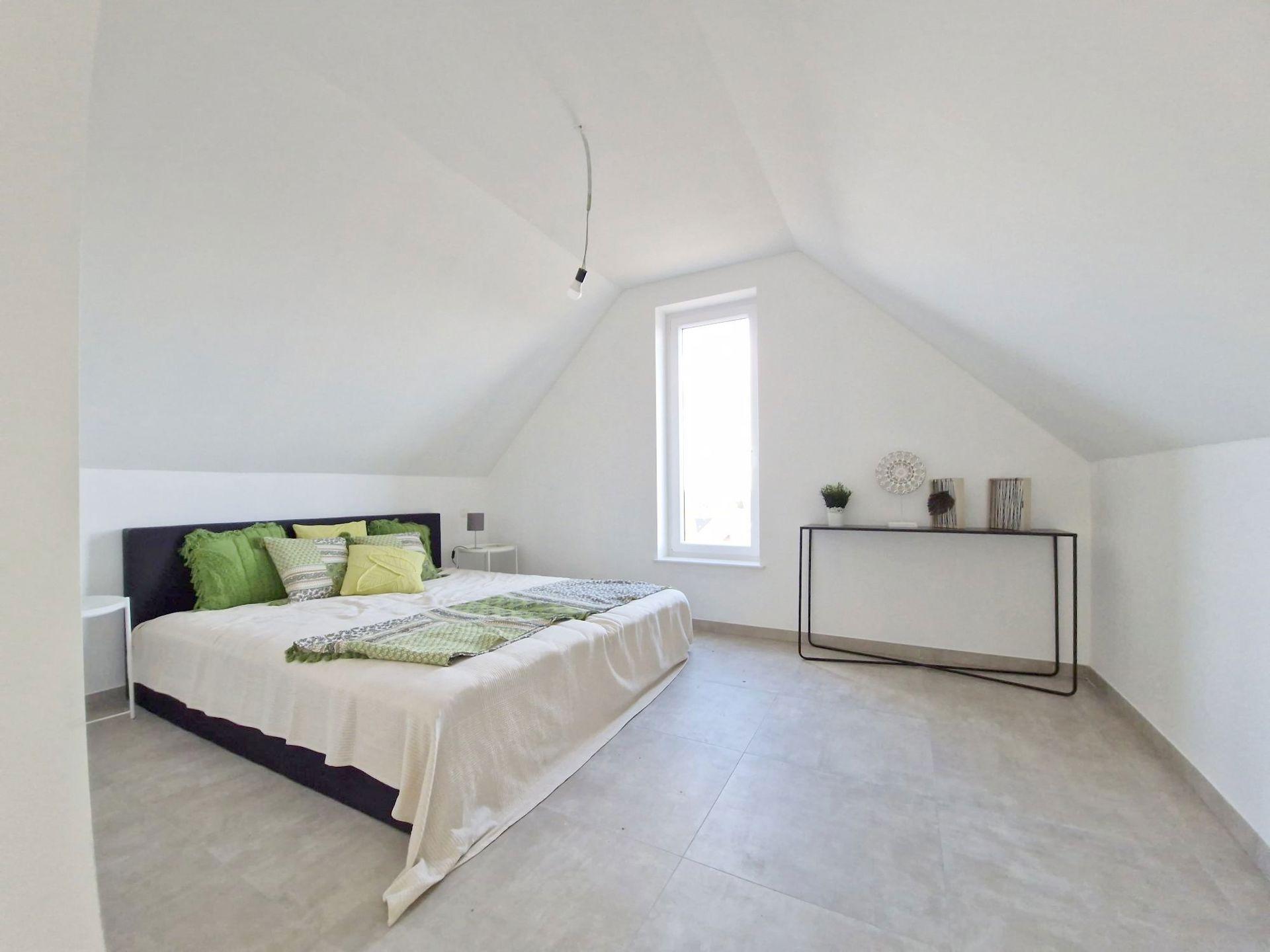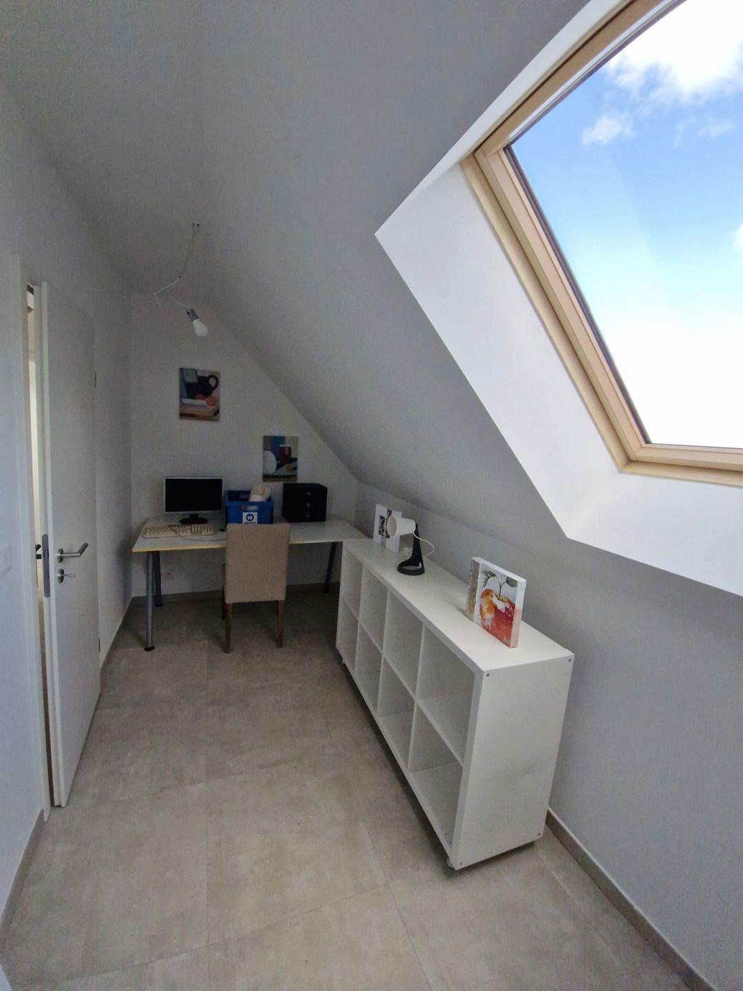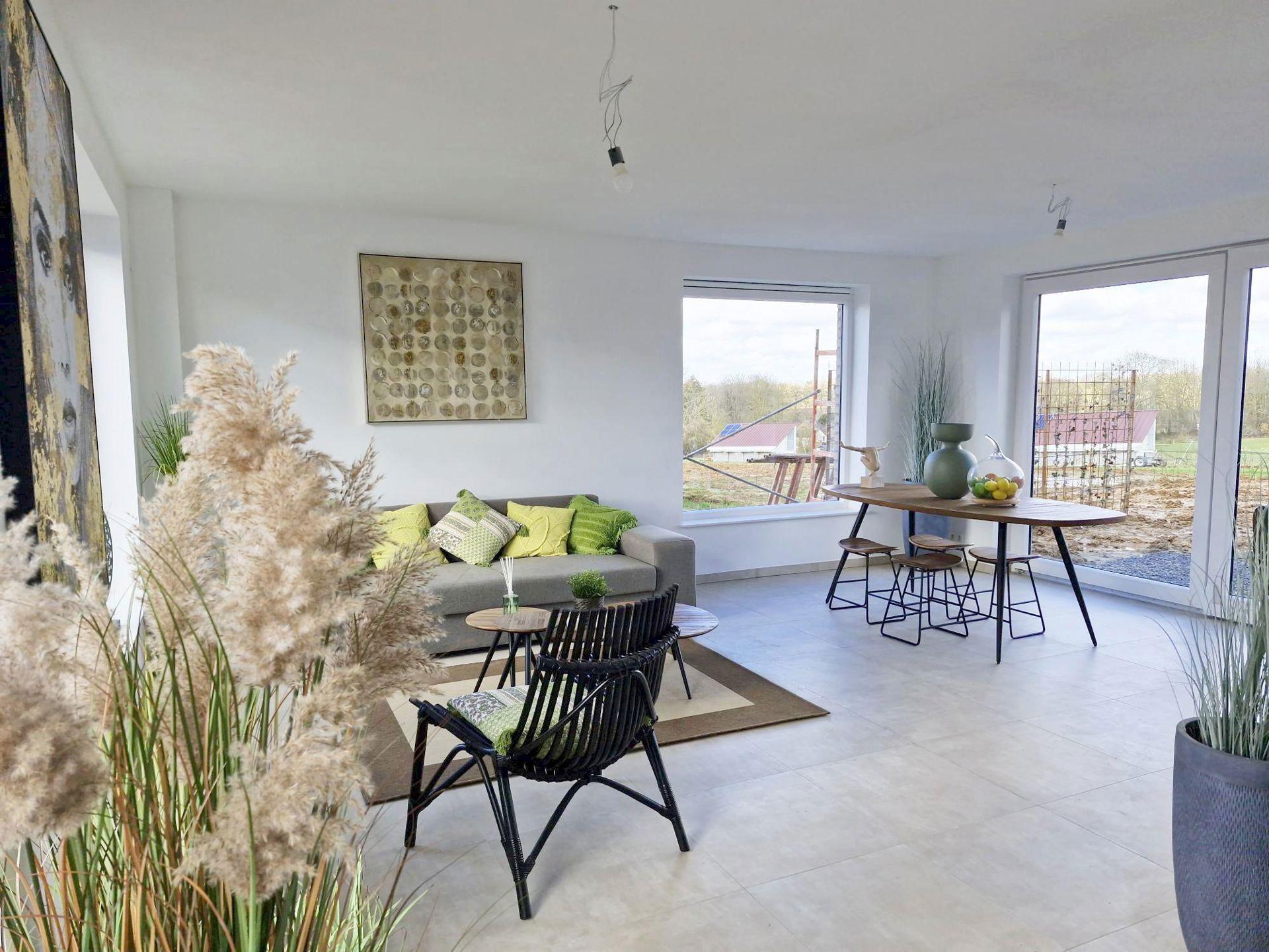 VEDRIN - In a new, quiet neighbourhood close to all amenities, NEW 175 m² house (4bed/1bath/1sdd) with 4 facades, terrace and pretty garden. Spread over 3 levels, the ground floor comprises an entrance hall with toilet, a spacious living room with open-plan kitchen, a utility room and 2 parking spaces. The first floor comprises 3 bedrooms, including a master bedroom with dressing room and shower room, and a bathroom. The 2nd floor could be converted into 1 or 2 additional bedrooms and 1 bathroom. The house features contemporary architecture, high-quality interior finishes and a high level of energy performance (optimum insulation, heat pump with underfloor heating, single-flow ventilation). Provisional EPB "A". The land is sold subject to 12.5% registration duty and the buildings are subject to 21% VAT. Find out more at L&P!
