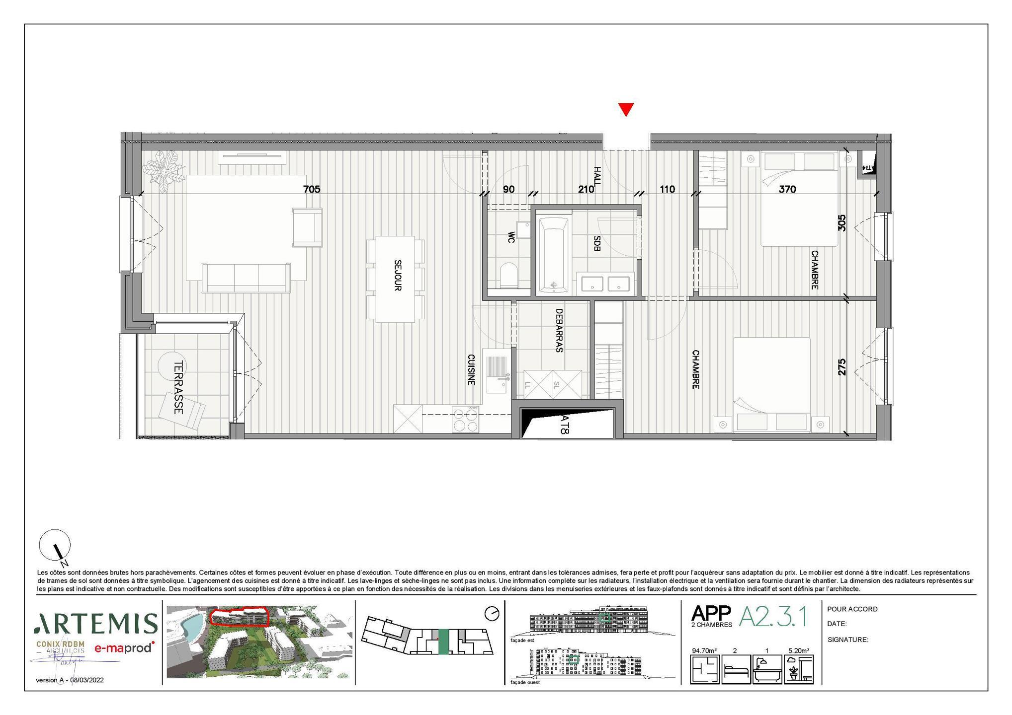 JAMBES – Dans un écrin de verdure, bel appartement contemporain (2CH/1SDB) 94,70 m² situé au 3ème étage de la résidence « ARTEMIS ». Il se compose d’une buanderie, d’un beau séjour de 38 m² avec cuisine ouverte donnant accès à la terrasse de 5,20 m², un hall de nuit, une salle d’eau et de 2 chambres. Vue verdoyante et dégagée. Châssis double vitrage en alu, Excellente isolation acoustique et thermique, ventilation simple flux, chauffage individuel au gaz, ascenseur, vidéophone. Parking et cave en sus. A proximité immédiate du centre-ville, de 2 gares et de 3 axes routiers majeurs. Livraison mars 2024. PEB provisoire "A". A découvrir chez L&P.