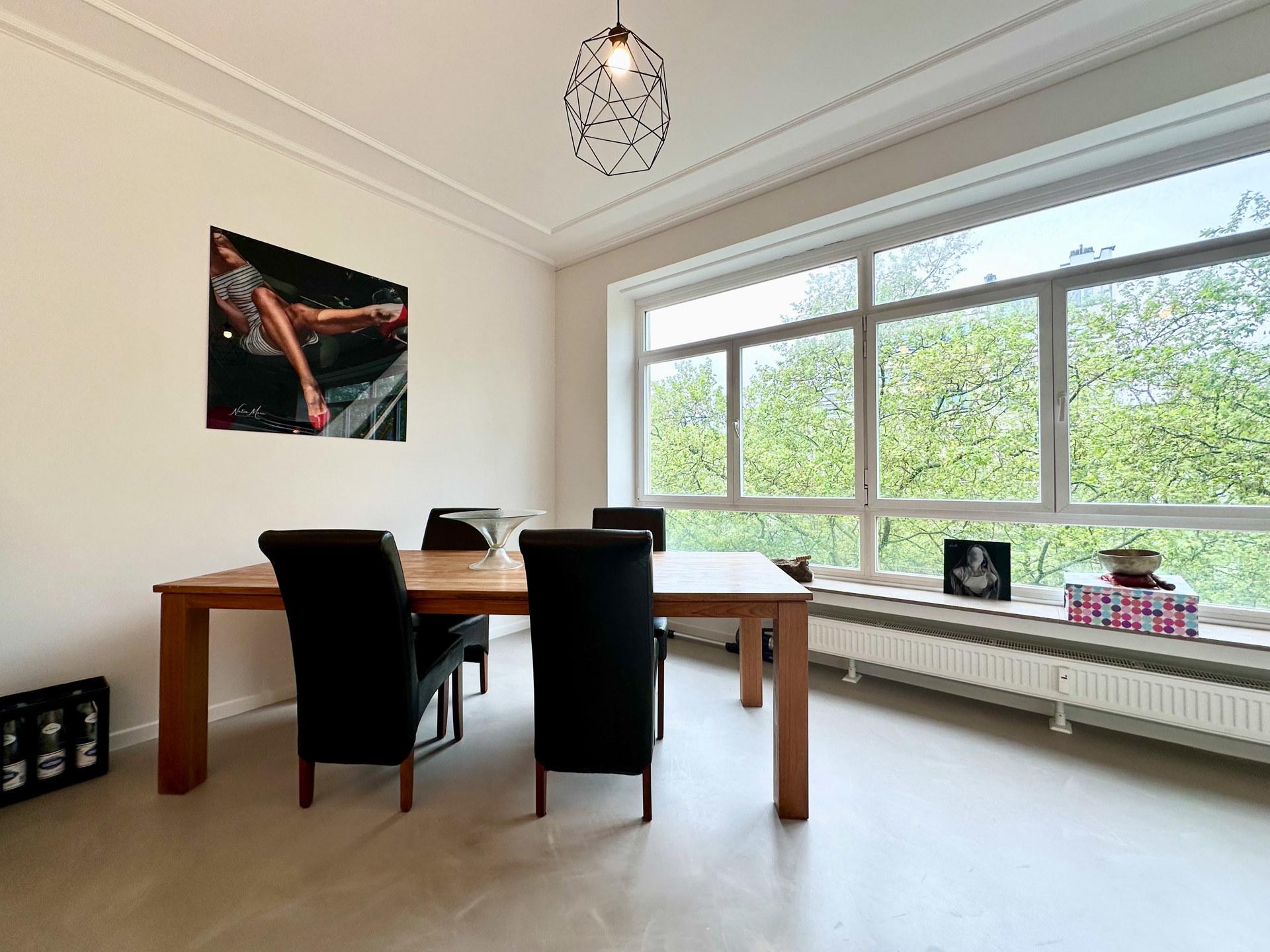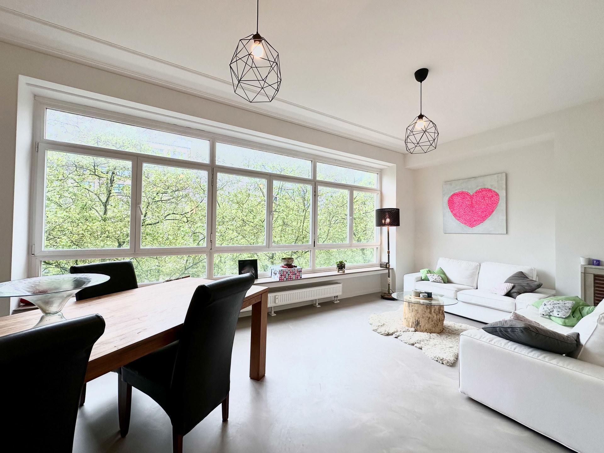 IXELLES - Aan de Louizalaan, tussen Flagey en Place du Châtelain, licht APPARTEMENT volledig gerenoveerd met kwaliteitsmaterialen (1bed/1bad) van ±54m² bewoonbare oppervlakte. Gelegen op de 4de verdieping van een gebouw met lift, het bestaat uit een inkomhal met gastentoilet, grote woonkamer van ± 25m² met inbegrip van de eetkamer, super ingerichte open keuken van ± 10m², slaapkamer van ± 11m² met zijn douchekamer. Kelderruimte. Fietsenberging. Het gebouw heeft een gemeenschappelijke binnenplaats met tuin. Bijkomende kosten: €105/maand (nutsvoorzieningen, koud water). EPC : D-. Meer informatie bij L&P!