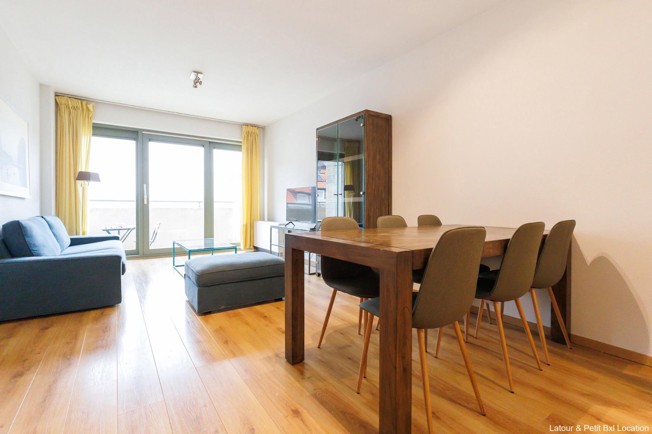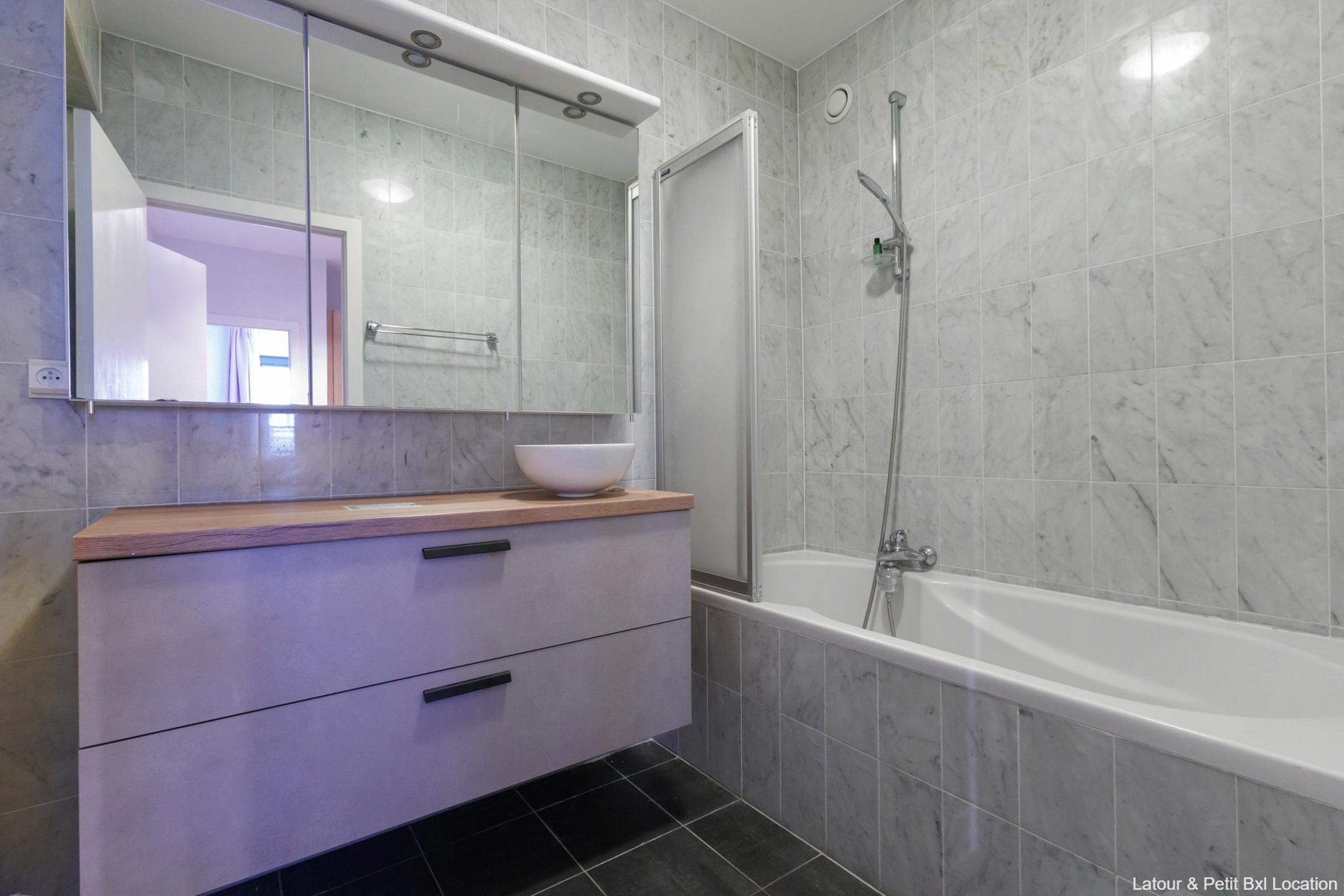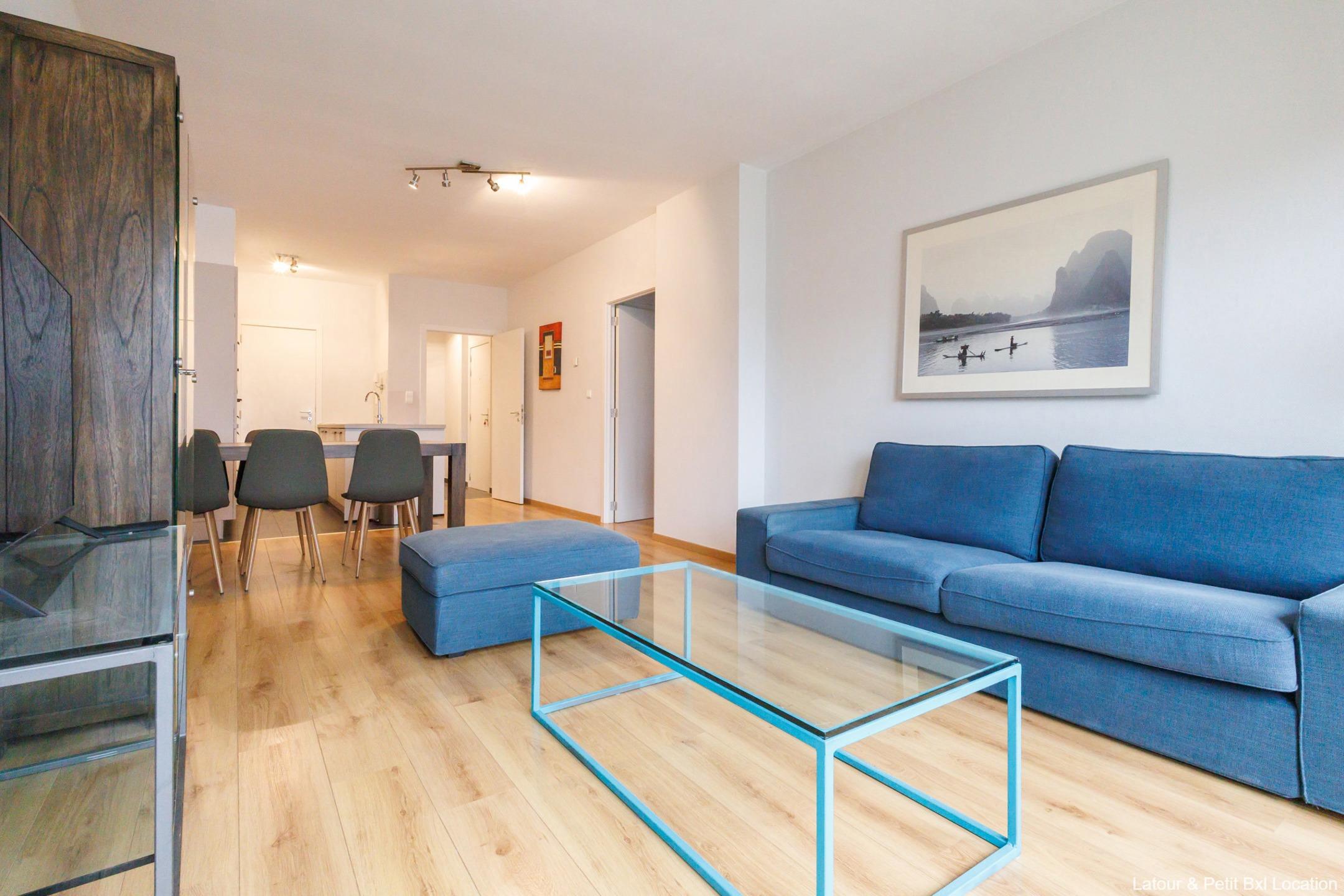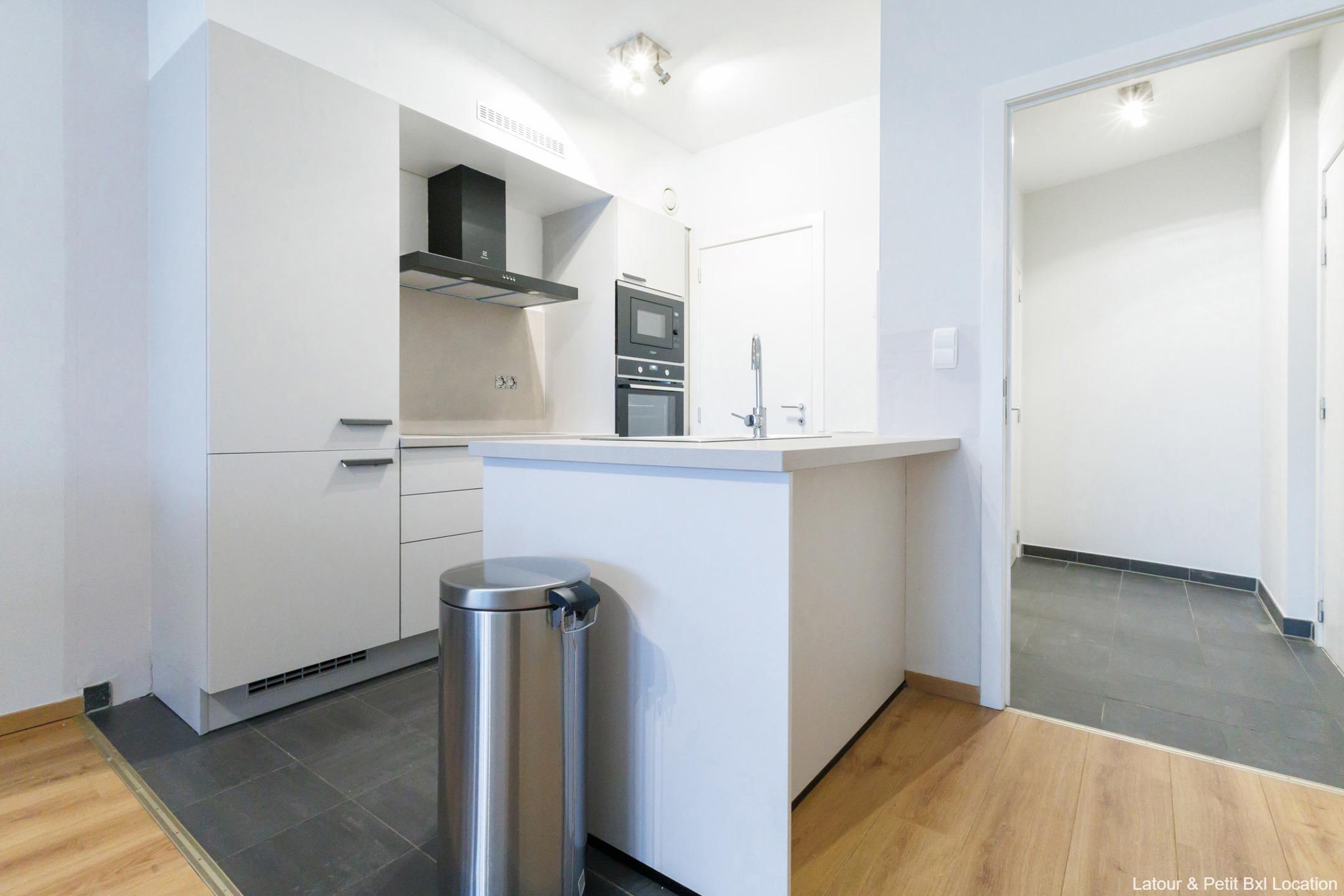 IXELLES - Op een steenworp afstand van het Europees Parlement en dicht bij alle vervoersverbindingen, mooi gemeubileerd APPARTEMENT (1slpk/1badk) gelegen op de 4e verdieping van een gebouw met lift. Het bestaat uit een inkomhal, vestiaire en toilet, woon/eetkamer van ±30 m² met super uitgeruste open keuken (nieuw) die uitgeeft op het balkon op het oosten, een slaapkamer van ±10 m², een dressing of bureau van ±7m², badkamer. Bijkomende kosten: €100 (gemeenschappelijk). EPB: E. Ontdek het bij L&P!
