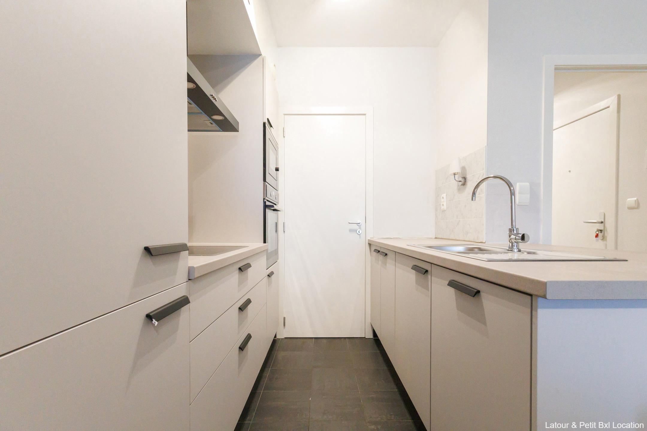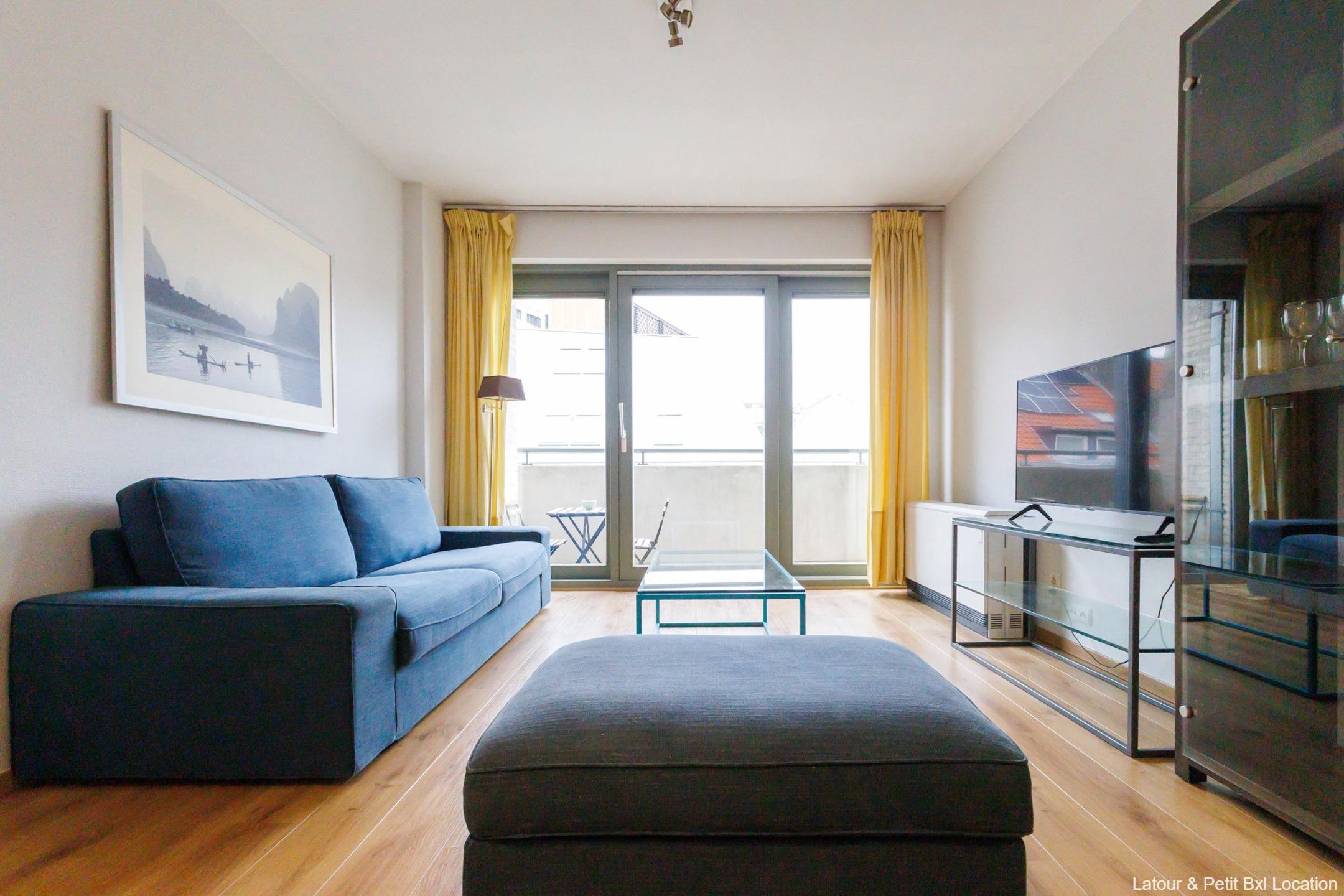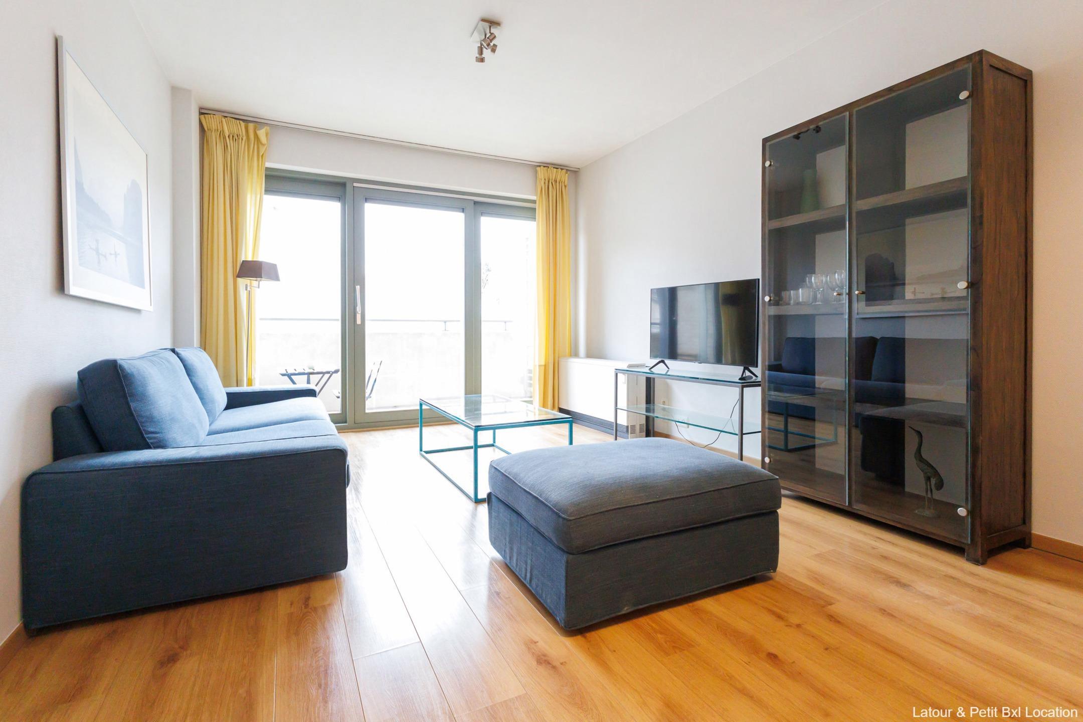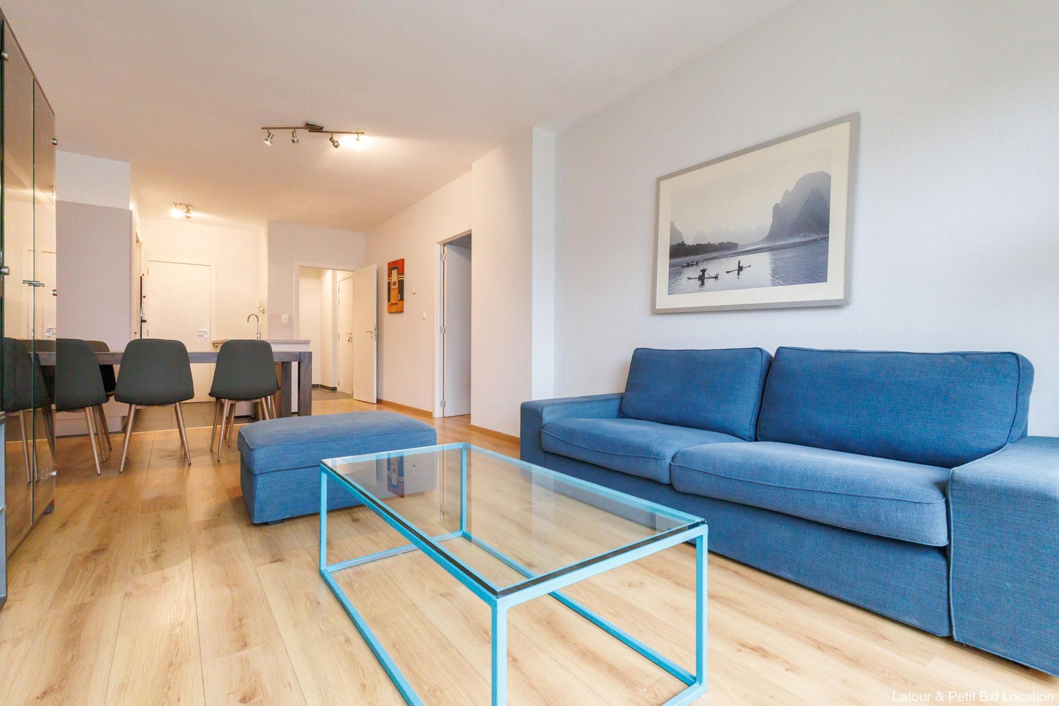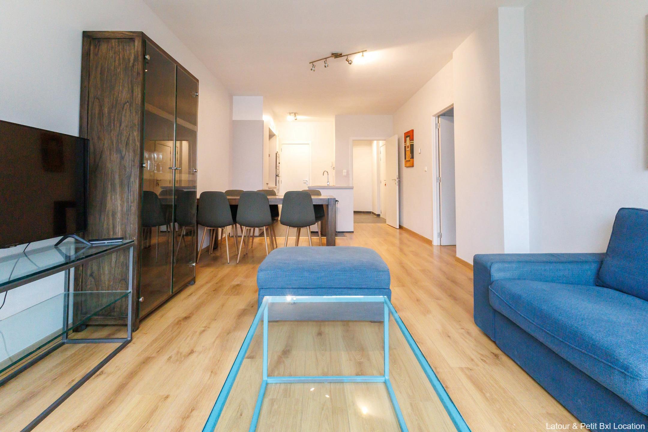 IXELLES - Op een steenworp afstand van het Europees Parlement en dicht bij alle vervoersverbindingen, mooi gemeubileerd APPARTEMENT (1slpk/1badk) gelegen op de 4e verdieping van een gebouw met lift. Het bestaat uit een inkomhal, vestiaire en toilet, woon/eetkamer van ±30 m² met super uitgeruste open keuken (nieuw) die uitgeeft op het balkon op het oosten, een slaapkamer van ±10 m², een dressing of bureau van ±7m², badkamer. Bijkomende kosten: €100 (gemeenschappelijk). EPB: E. Ontdek het bij L&P!