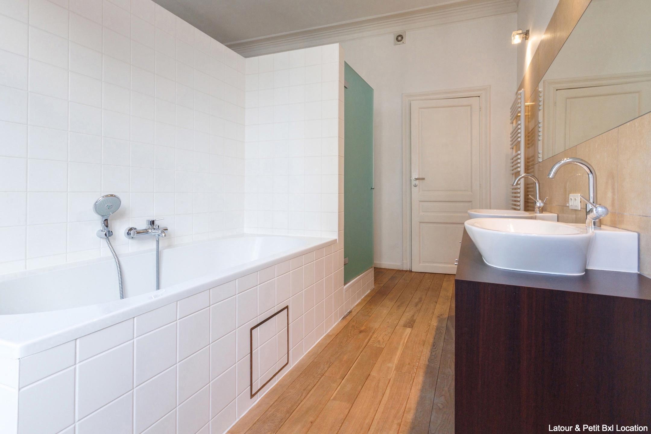 IXELLES, vlakbij de vijvers van Elsene. Dit lichte WOONHUIS (5slpk/4badk) van ±323 m² bewoonbare oppervlakte met tuin en parking. De eerste verdieping bestaat uit 3 aangrenzende kamers van 57 m² - salon, eetkamer en superuitgeruste open keuken met toegang tot de tuin van 43 m² op het zuidoosten, gastentoilet. De eerste verdieping beschikt over een ouderslaapkamer van 15 m² met kleedkamer, badkamer, douche en apart toilet, gevolgd door een slaapkamer van 21 m² en een terras van 12 m². De tweede verdieping bestaat uit twee slaapkamers (24-16 m²), badkamer, bijkeuken en mezzanine toilet. Een ruime kamer van 47 m² met een mezzanine van 12 m² en een doucheruimte maken deze woning compleet. Onafhankelijke studio van 75 m² perfect voor een nanny of souplex gasten, met open ingerichte keuken, woonkamer die uitkomt op een binnenplaats van 10 m², badkamer en bijkeuken. Parkeerplaats inbegrepen. EPB: D+. Exclusief aanbod van L&P!