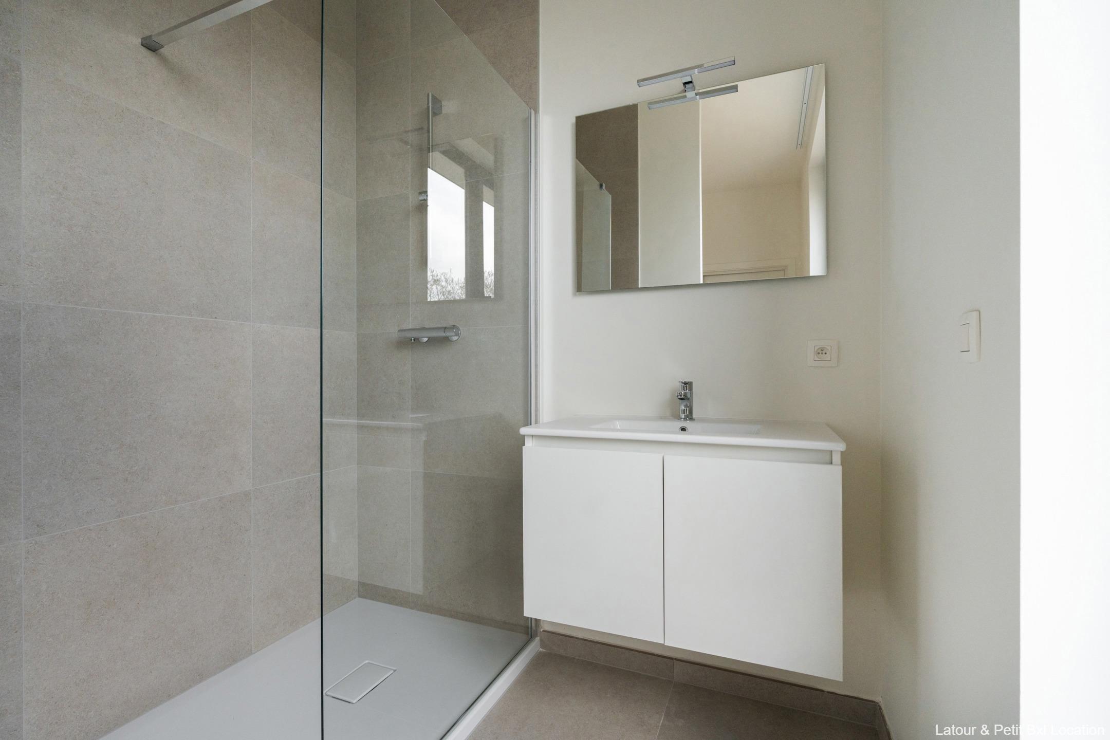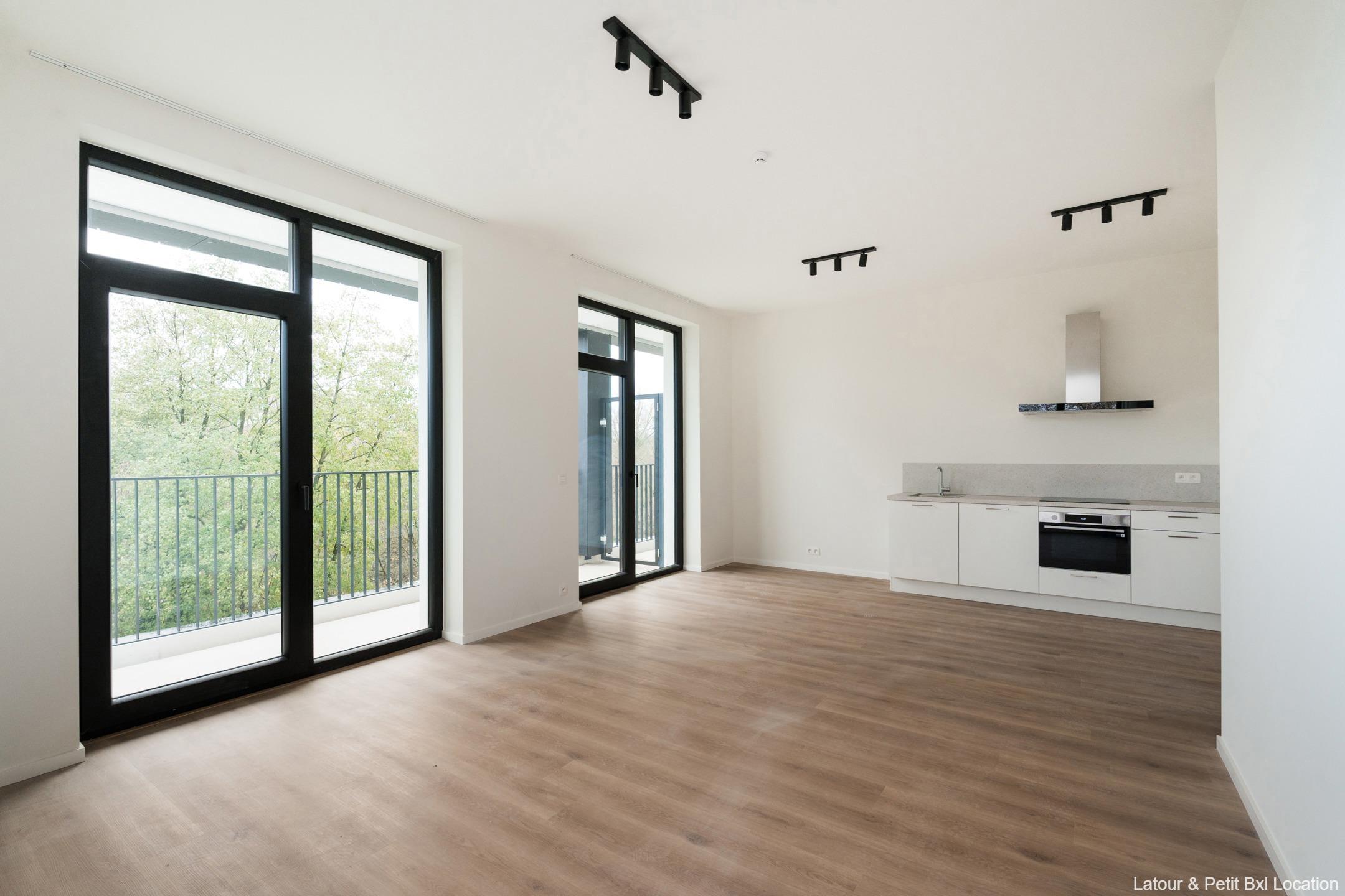 SINT-LAMBRECHTS-WOLUWE – Eerste bewoning – Ideaal gelegen nabij het Woluwe Shopping Center en de grote verkeersassen, in een aangename wijk. Prachtig NIEUW APPARTEMENT (1SLK /1Douchekamer) van ±58 m² met TERRAS. Gelegen op de 3e verdieping van een nieuw gebouw, bestaande uit een inkomhal met toilet, lichtrijke leefruimte van ±28 m² met elegante volledig uitgeruste open keuken die uitgeeft op het oostgericht terras van 12,5 m², en een slaapgedeelte van ±7 m² met aanpalende douchekamer. Aparte wasruimte. Mogelijkheid tot parkeerplaats (+125€/maand). Kelder inbegrepen. Kosten: +75€/maand provisie (afstand van verhaalverzekering, onderhoud van de gemeenschappelijke delen). Gordijnrails en verlichtingsarmaturen inbegrepen. Uitstekende energieprestatie: EPC A- (39,43 kWh/m²/jaar). Te ontdekken bij L&P!