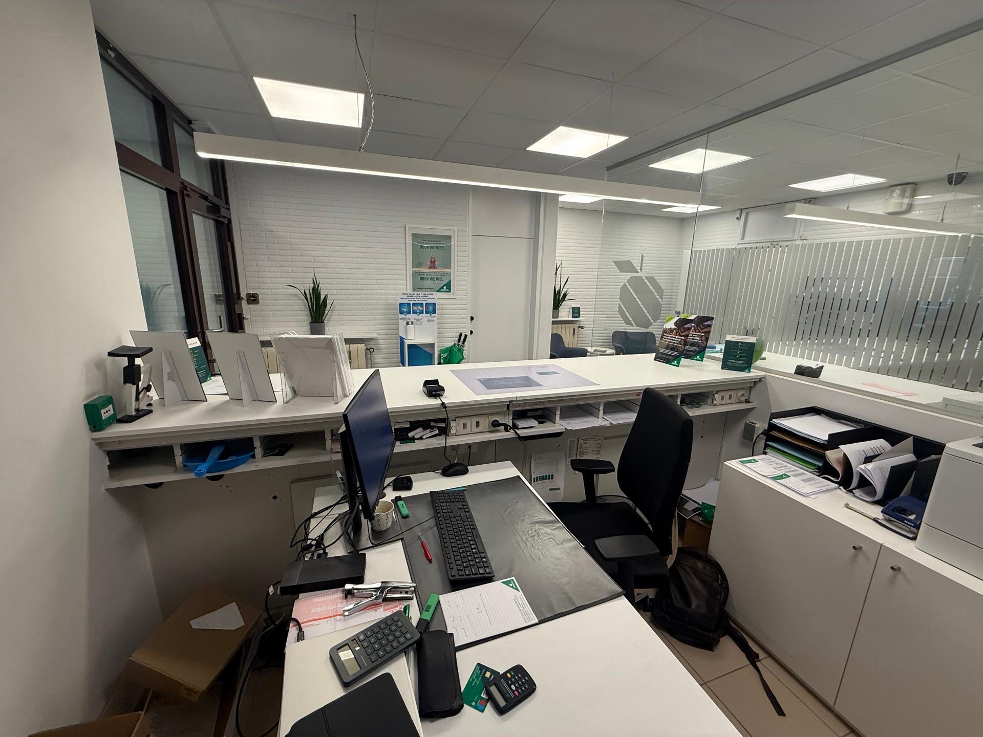 Handelsgelijkvloers van ca. 120 m², voorheen een bank en nog steeds ingericht als bank.