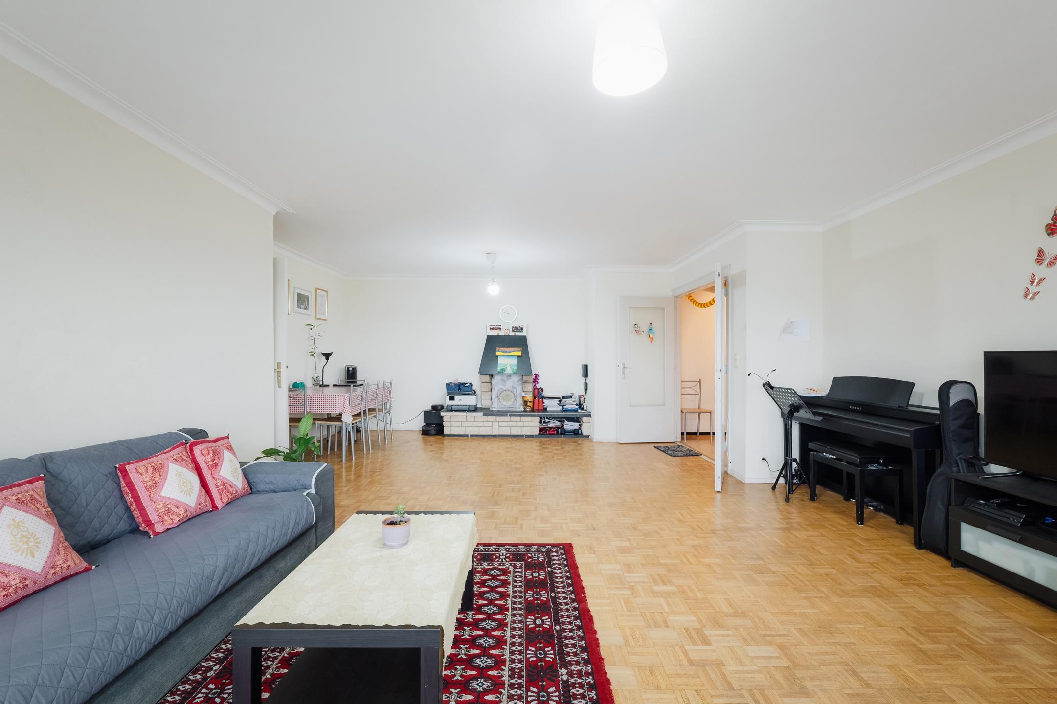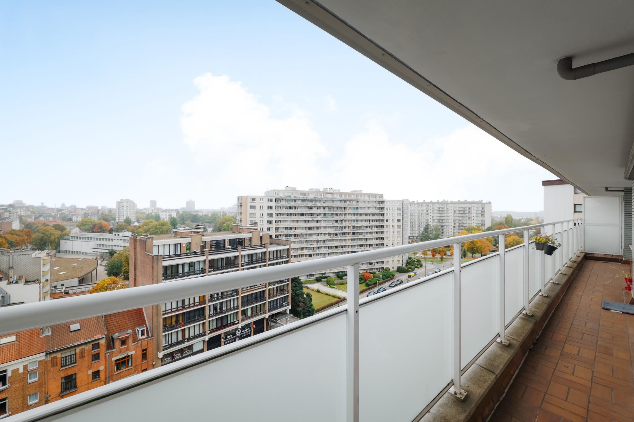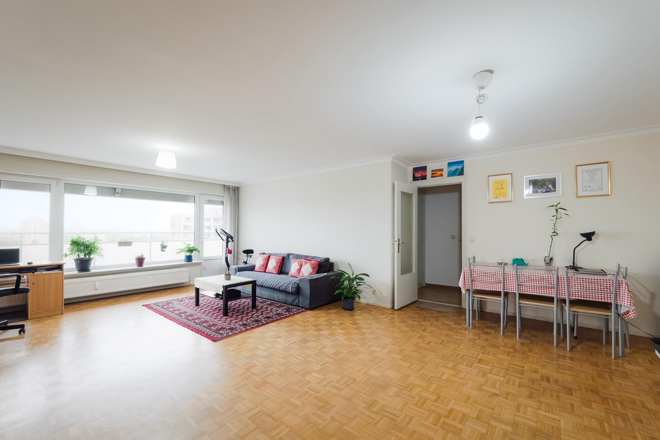 EVERE, aan de Genève straat nabij talrijke voorzieningen. Mooi APPARTEMENT (2 slk/1 badk) van 100 m² met terras en parking. Gelegen op de 10e van 11 verdiepingen in een gebouw van 1970 met lift, samengesteld als volgt: Inkomhal met vestiaire, woonkamer met toegang tot het westgericht terras van 8 m², volledig uitgeruste keuken, nachthal, 2 slaapkamers, badkamer (bad, wastafel), apart toilet, wasplaats. In de kelder: berging, parkeerplaats (+25.000€). Elektriciteit niet conform, provisie lasten: 276€/maand (verwarming, water, gemeenschappelijke delen) en 68€/maand (reservefonds). PEB: B (86 kWh/m²/j). Exclusief te ontdekken bij L&P!