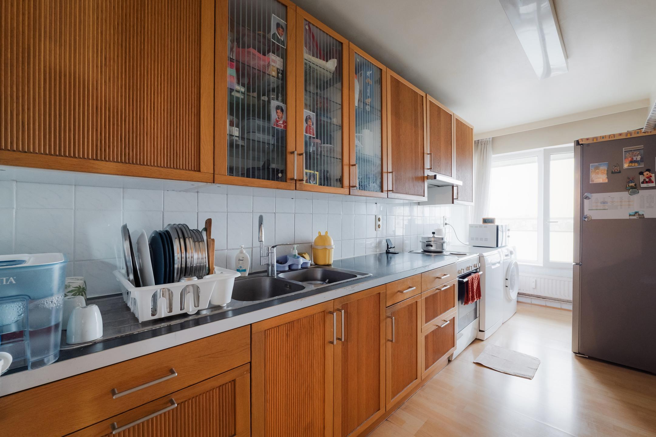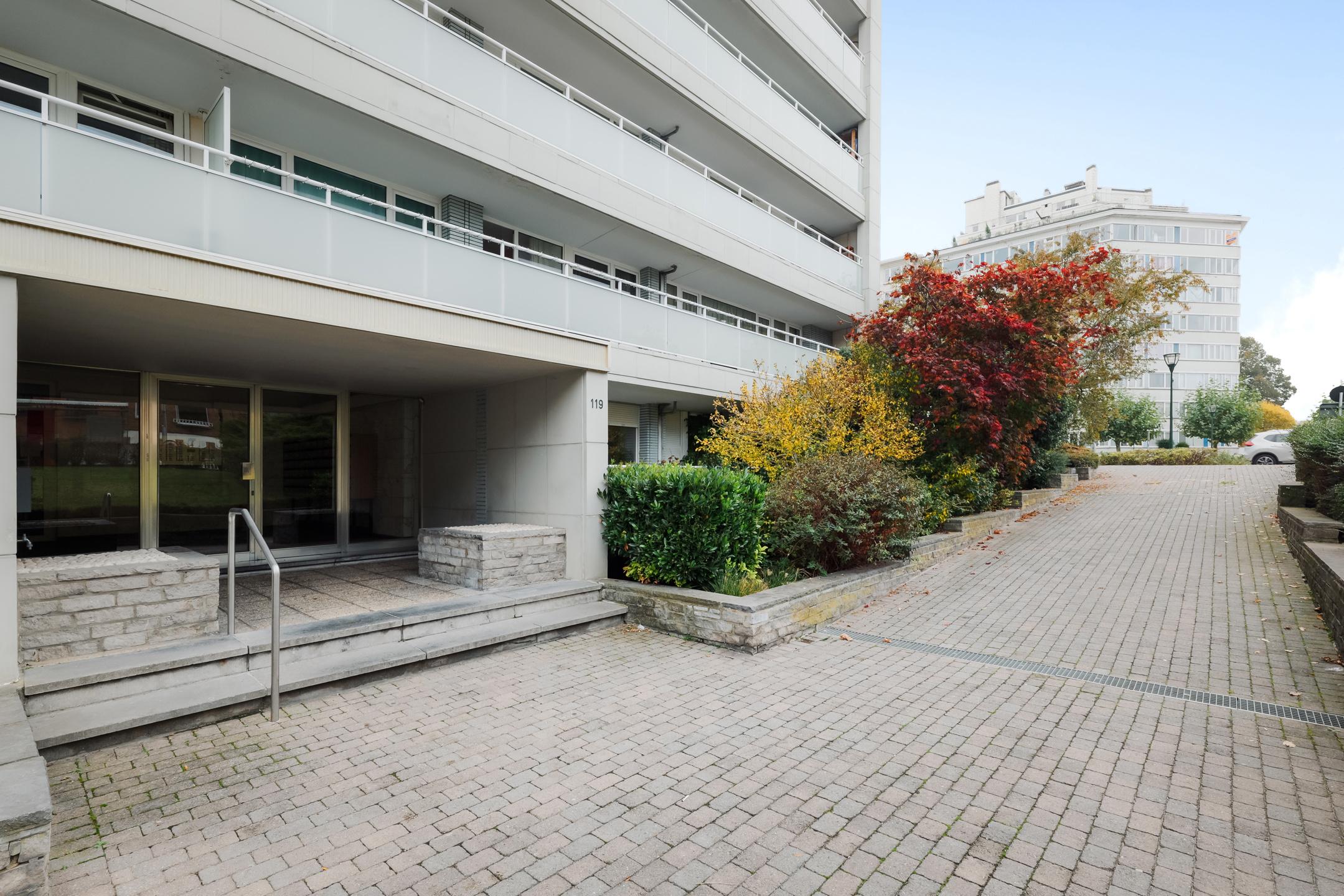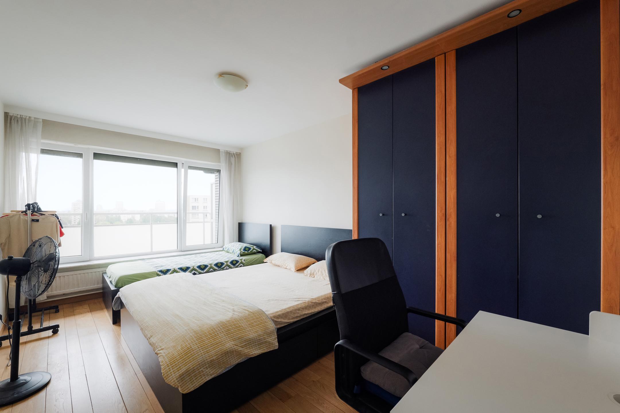 EVERE, aan de Genève straat nabij talrijke voorzieningen. Mooi APPARTEMENT (2 slk/1 badk) van 100 m² met terras en parking. Gelegen op de 10e van 11 verdiepingen in een gebouw van 1970 met lift, samengesteld als volgt: Inkomhal met vestiaire, woonkamer met toegang tot het westgericht terras van 8 m², volledig uitgeruste keuken, nachthal, 2 slaapkamers, badkamer (bad, wastafel), apart toilet, wasplaats. In de kelder: berging, parkeerplaats (+25.000€). Elektriciteit niet conform, provisie lasten: 276€/maand (verwarming, water, gemeenschappelijke delen) en 68€/maand (reservefonds). PEB: B (86 kWh/m²/j). Exclusief te ontdekken bij L&P!