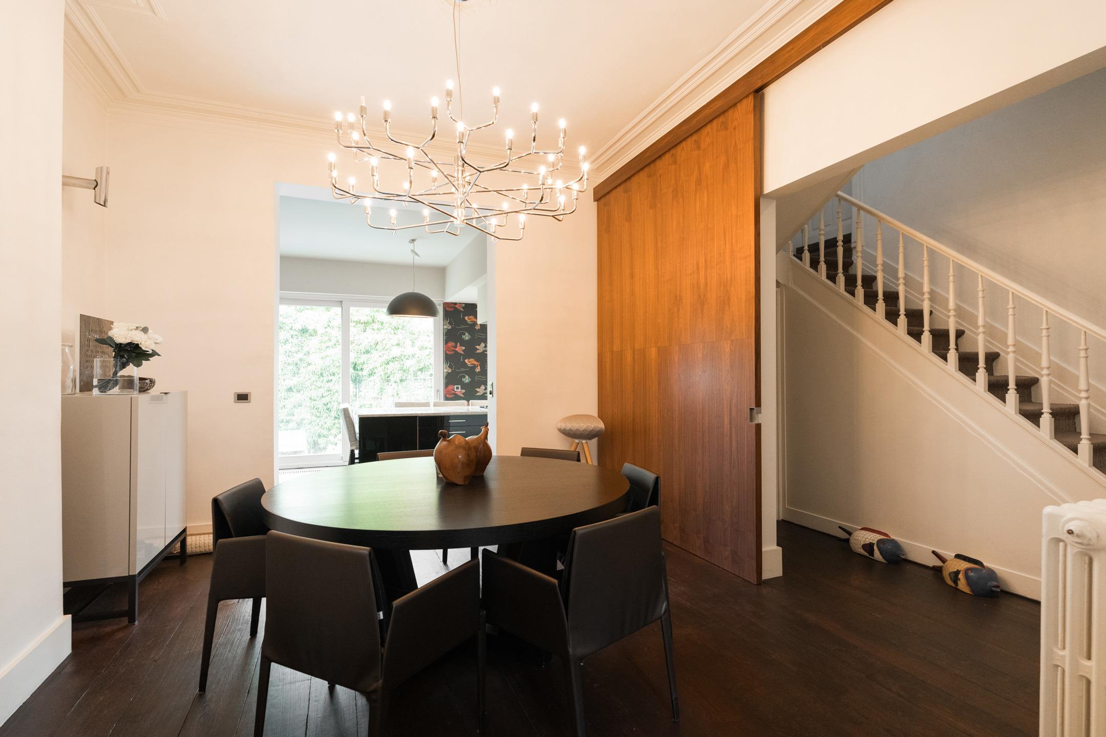 WOLUWE-SAINT-PIERRE, tussen Place Dumon en Avenue de Tervuren dicht bij talrijke voorzieningen. Prachtig WOONHUIS (5 slpk/3bad) van 425m² gebouwd op een perceel van 4 are 73 op het westen. Gebouwd in 1930 en gerenoveerd in 2017 met kwaliteitsmaterialen, het is als volgt samengesteld: Inkomhal met vestiaire, gastentoilet, woonkamer met bibliotheek, eetkamer, superuitgeruste open keuken, toegang tot de tuin, bureau met klein terras, woonkamer met open haard. Op de tussenverdieping, apart toilet. 1ste verdieping: nachthal, hoofdslaapkamer met dressing en eigen badkamer (bad, douche, 2 wastafels). Slaapkamer, doucheruimte (douche, wastafel, wc). Op de tussenverdieping, slaapkamer. 2e verdieping: nachthal, 2 slaapkamers, doucheruimte (douche, wastafel, wc). 3e verdieping: zolder voor opslag. Kelderverdieping: wasruimte/stookruimte, doucheruimte (douche, wc), voorraadkelder, garage met 2 stalletjes, wijnkelder met gepantserde deur, voorraadkelder, voorraadkelder met toegang tot de tuin Elektriciteit volgens de voorschriften. EPB: E (253kWh/m²/jaar). Exclusieve aanbieding van L&P!