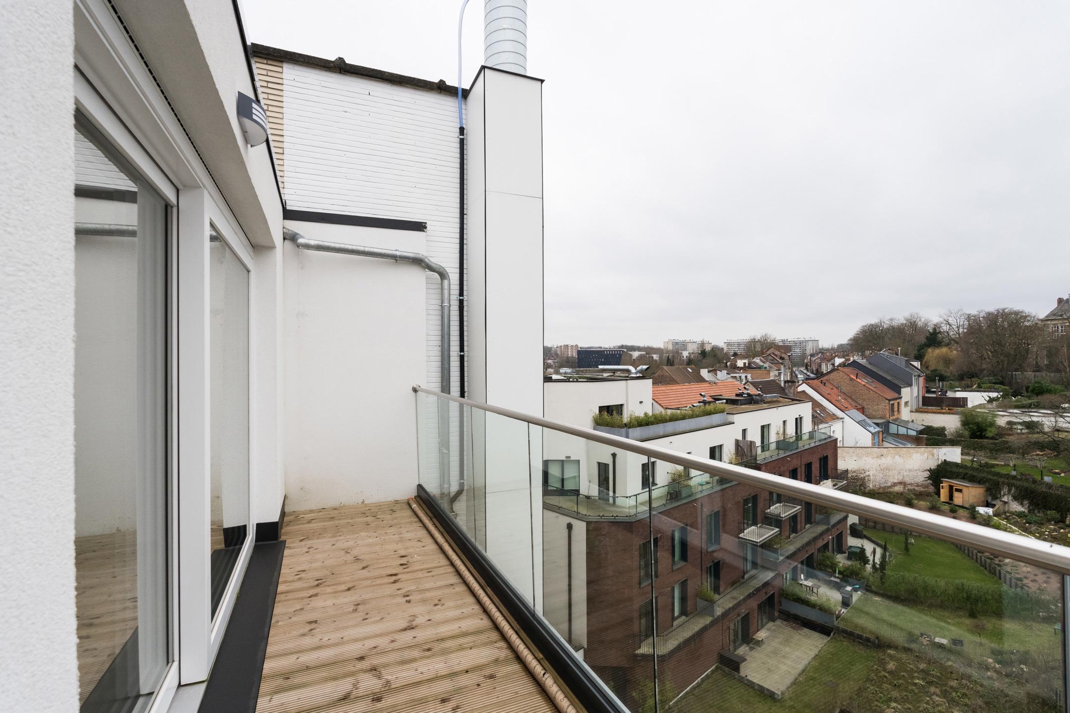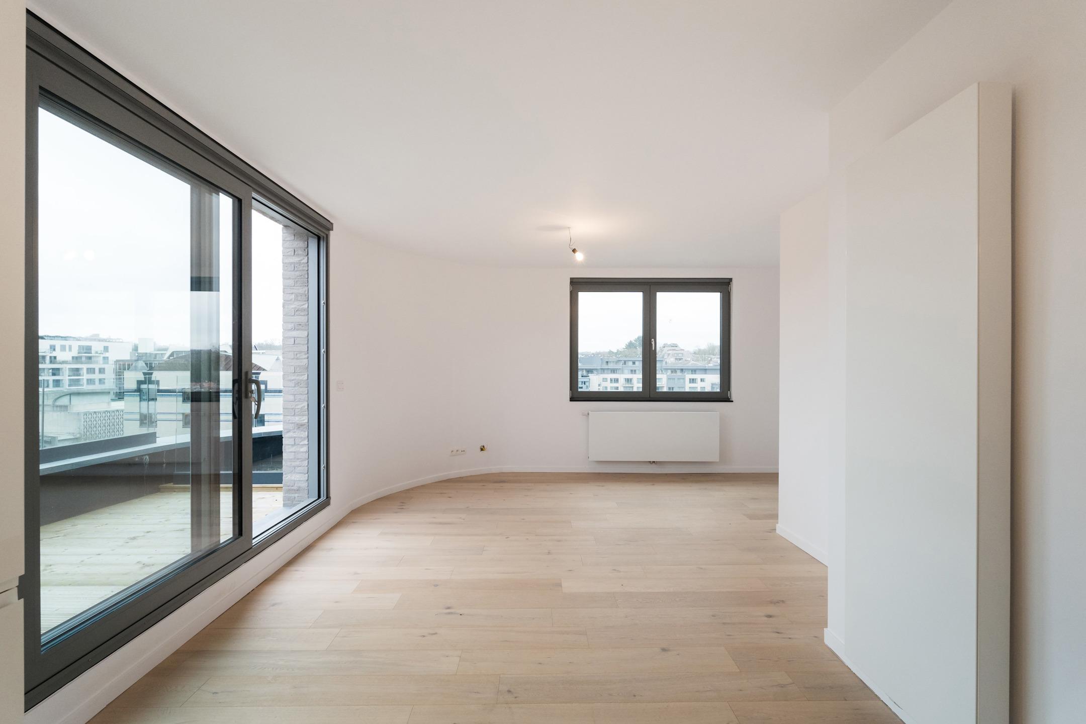 OUDERGEM – op een steenworp van de Waversesteenweg, het Cultureel Centrum van Oudergem en nabij vele voorzieningen (scholen, winkels, restaurants en tal van openbaar vervoermogelijkheden), prachtig NIEUW PENTHOUSE (2slk/1bad) van 91 m² met twee TERRASSEN. Gelegen op de 5e verdieping, bestaat het uit een lichte woonkamer van 30 m² met volledig uitgeruste open keuken die uitkomt op het terras van 10 m² zuid-oosten. De nachthal geeft toegang tot de twee slaapkamers (19 en 13,4 m²) en de badkamer (bad, wastafel, WC). De master slaapkamer heeft direct toegang tot het noord-oost-georiënteerde terras van 6,5 m². Zorgvuldig uitgevoerd, biedt deze kleine mede-eigendom van 5 verdiepingen het voordeel van een stedelijke locatie en een hoog niveau van afwerking en isolatie (triple beglazing, individuele ketel, zonnepanelen). EPC: A. Gemeenschappelijke fietsenberging. Kelder inbegrepen. Verkoop onder het BTW-regime (21%). Te ontdekken bij L&P!