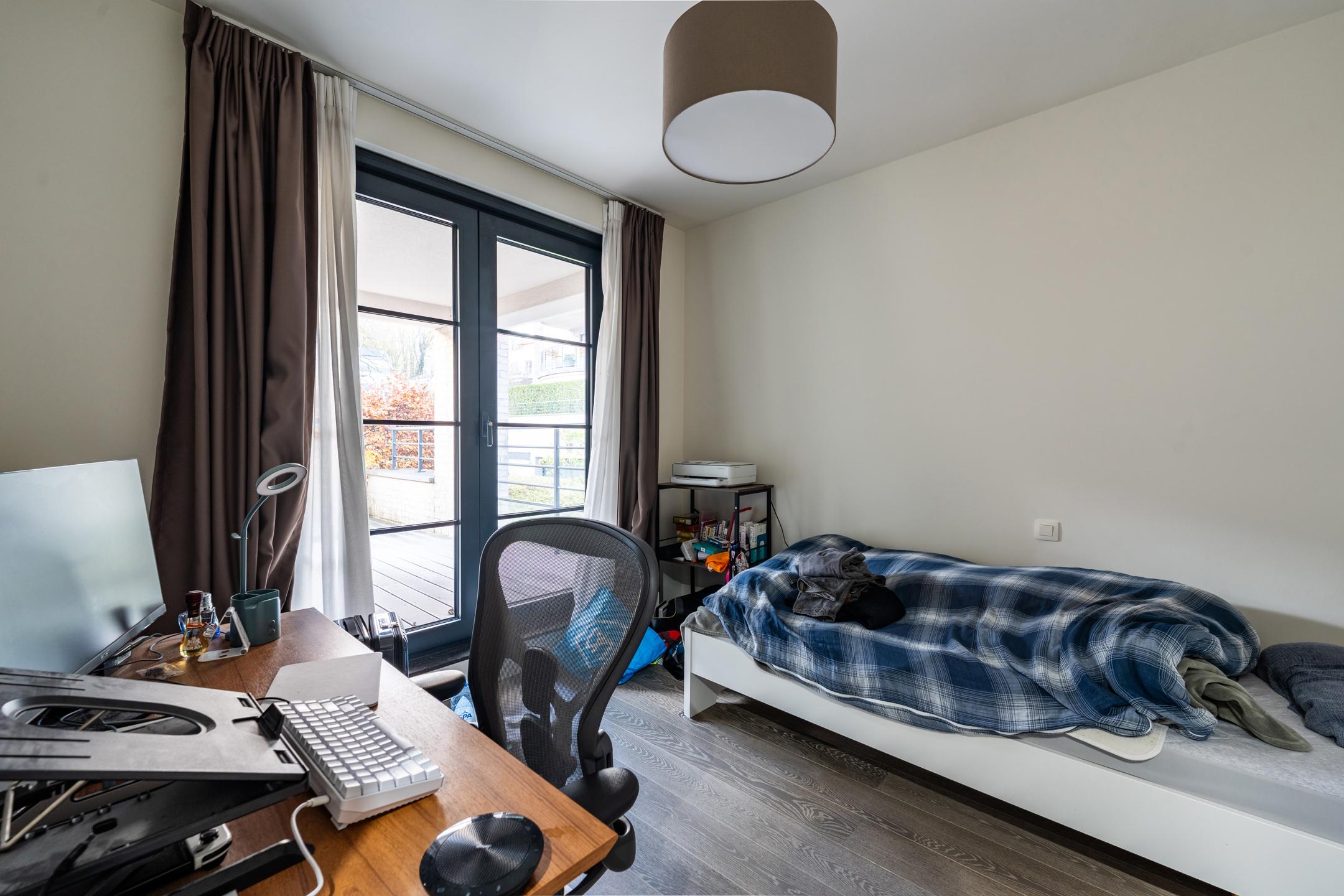 In de directe omgeving van de Mellaertvijvers, in een luxe residentie gebouwd in 2013, prachtig appartement met 2 slaapkamers/1 badkamer van ± 123 m² met 2 terrassen op het westen en een tuintje voor exclusief gebruik. Het appartement is als volgt ingedeeld: inkomhal met ingebouwde vestiaire en gastentoilet, lichte woonkamer van ± 42,50 m² met toegang tot het eerste terras van 13,47 m², volledig uitgeruste keuken, 2 slaapkamers (16 en 9,20 m²), waarvan één met ingebouwde kleerkast en toegang tot het tweede terras van 13,84 m² en het tuintje, 1 badkamer, technische ruimte, aparte wasruimte. Ook: EPC C+ (101 kWh/m²/jaar), elektriciteit conform, individuele gasboiler, “SieMatic”-keuken, talrijke op maat gemaakte opbergruimtes van het merk “Camber”, overal HR-dubbele beglazing, videofonie, massief parket, lift, beveiligde toegang, conciërge, gepantserde deur, momenteel verhuurd voor € 2.177,62/maand (inclusief parkeerplaats - huurovereenkomst van 3 jaar ingegaan op 13/03/2024), privékelder nr. 21 en een parkeerplaats nr. 28 tegen verplichte meerprijs (+ € 30.000). Aandeel: 361/10.000 + 7 + 13. Prachtig appartement dat alle nodige comfort biedt met hoogwaardige materialen en uitrusting! Niet te missen.