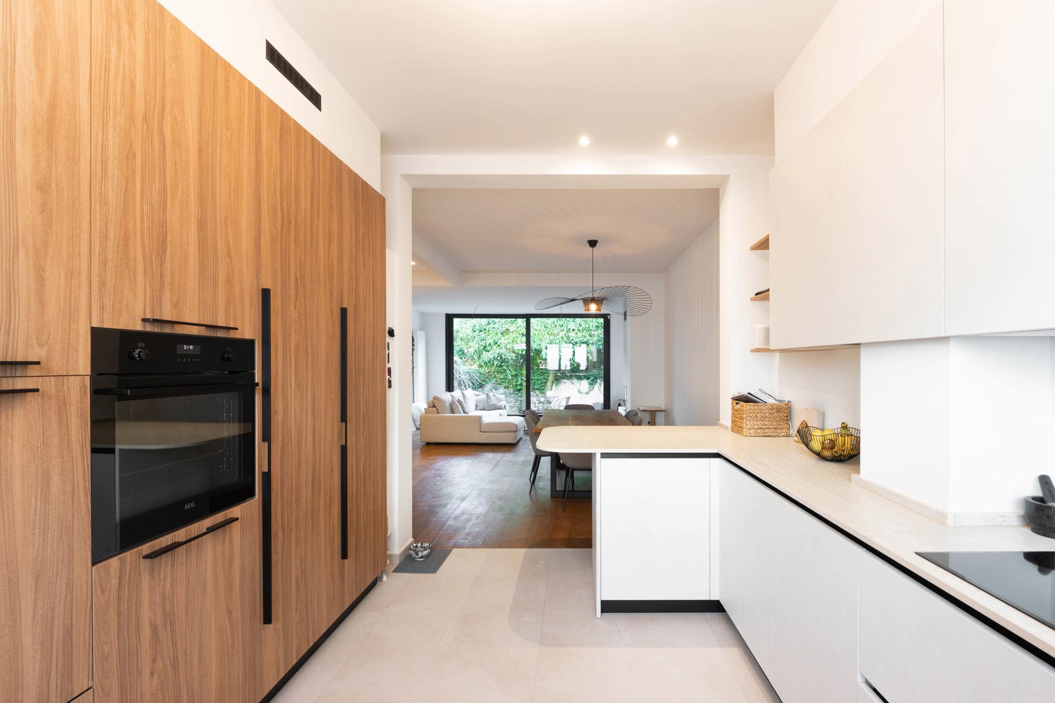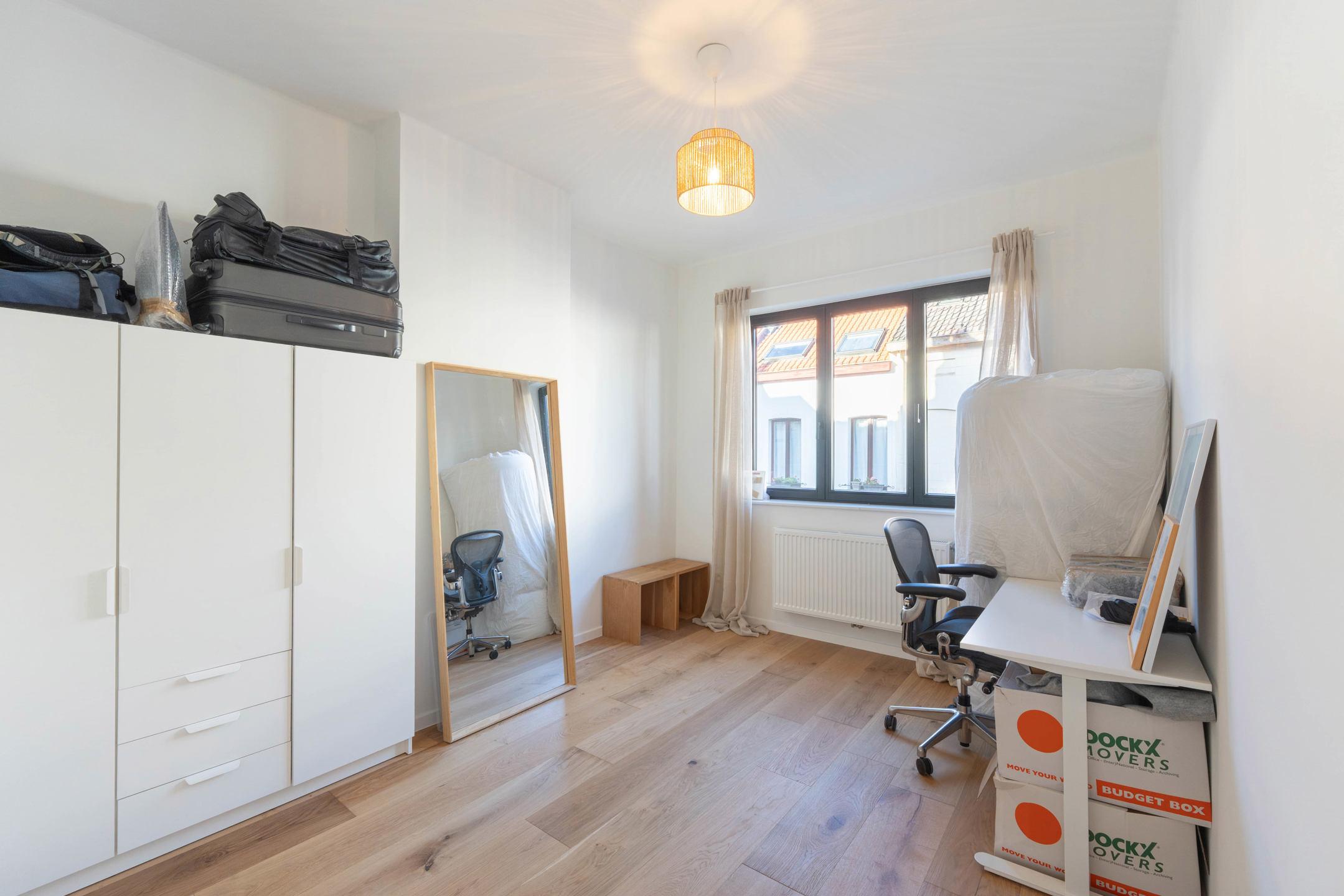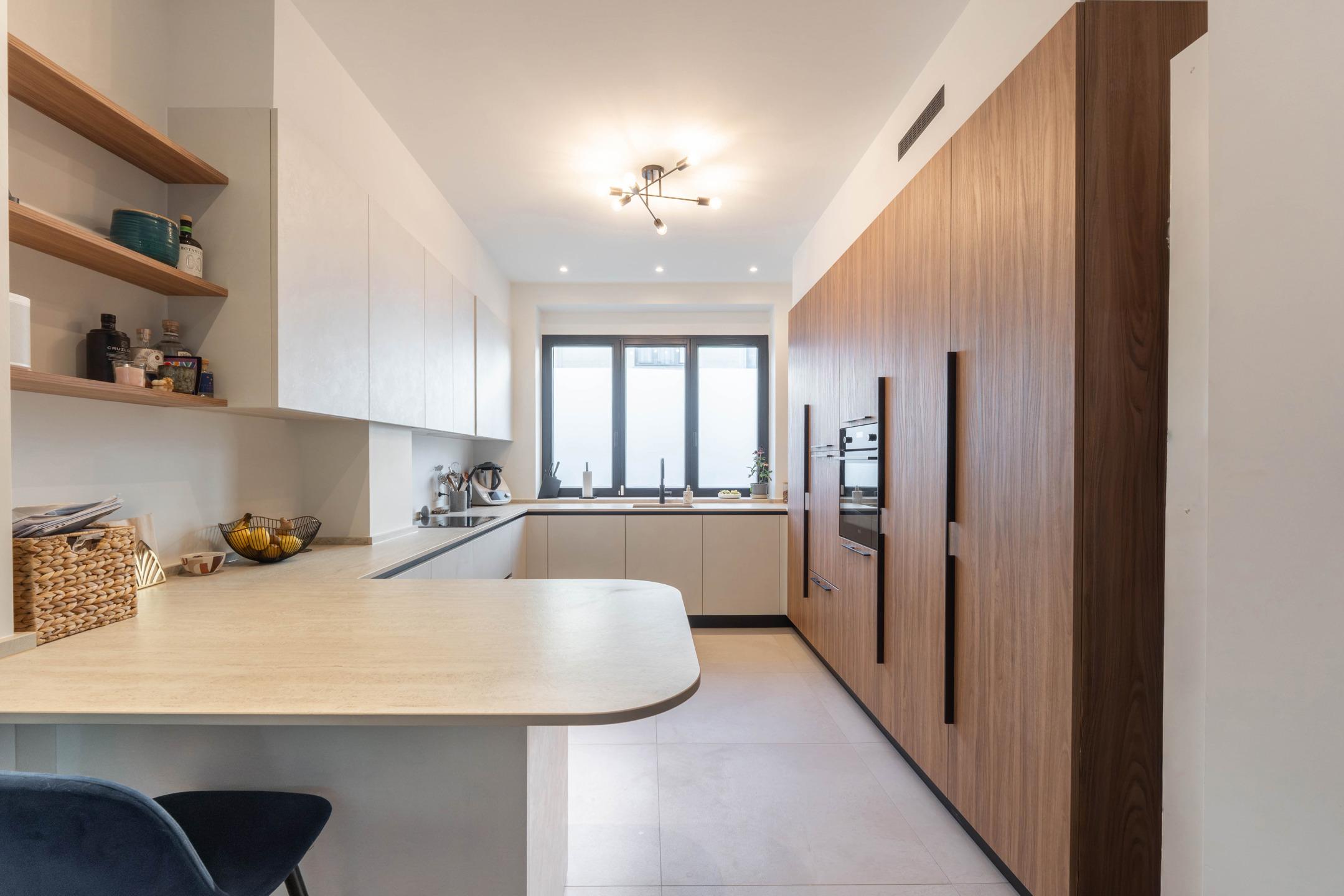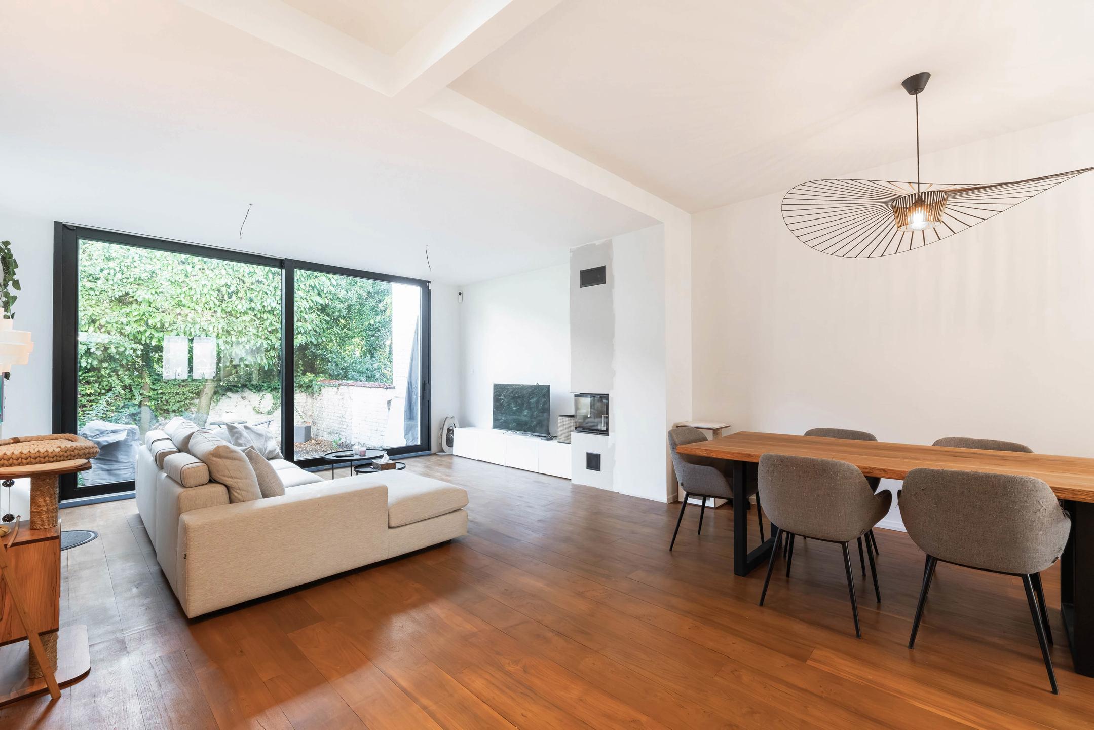 UKKEL, wijk Churchill, op een steenworp afstand van het Brugmannpark, dicht bij alle voorzieningen, aangenaam en licht HUIS (3slpkm/2bdkm) van ±154 m² bruto (128 m² EPC) op een terrein van 115 m² en met een gevelbreedte van 5,5 m, met GARAGE op enkele meters afstand (nr. 41 van de straat) . Het huis werd volledig gerenoveerd in 2025 en is als volgt ingedeeld: op de begane grond, inkomhal met apart toilet, gezellige woonkamer van ±41m² met open haard die toegang geeft tot de mooi aangelegde achtertuin op het zuidoosten en een superuitgeruste open keuken. Op de 1e verdieping: nachthal, ouderslaapkamer van ±18,5 m² met aangrenzende doucheruimte (inloopdouche en dubbele wastafel) en toegang tot het platte dak van ±18,5 m², slaapkamer nr. 2 van ±13,2 m² en een apart toilet. Op de 2e verdieping: slaapkamer nr. 3/kantoor van ± 20 m² met schuin dak en open badkamer. In de kelder: opslagkelder, wasruimte en stookruimte. Een afgesloten garage is optioneel (+40.000 €) op enkele meters afstand. EPC: D+. Gasketel met condensatie uit 2025. Houten kozijnen met dubbele beglazing. Zonnepanelen, alarmsysteem en videofoon bij de ingang. Een juweeltje, exclusief te ontdekken bij L&P!