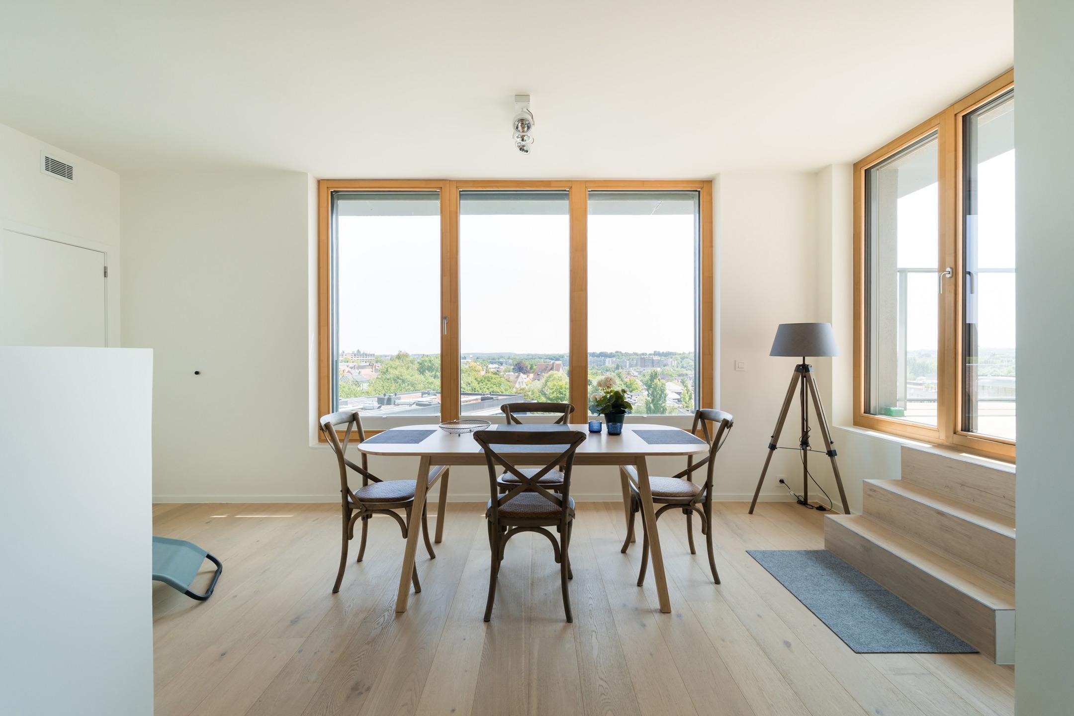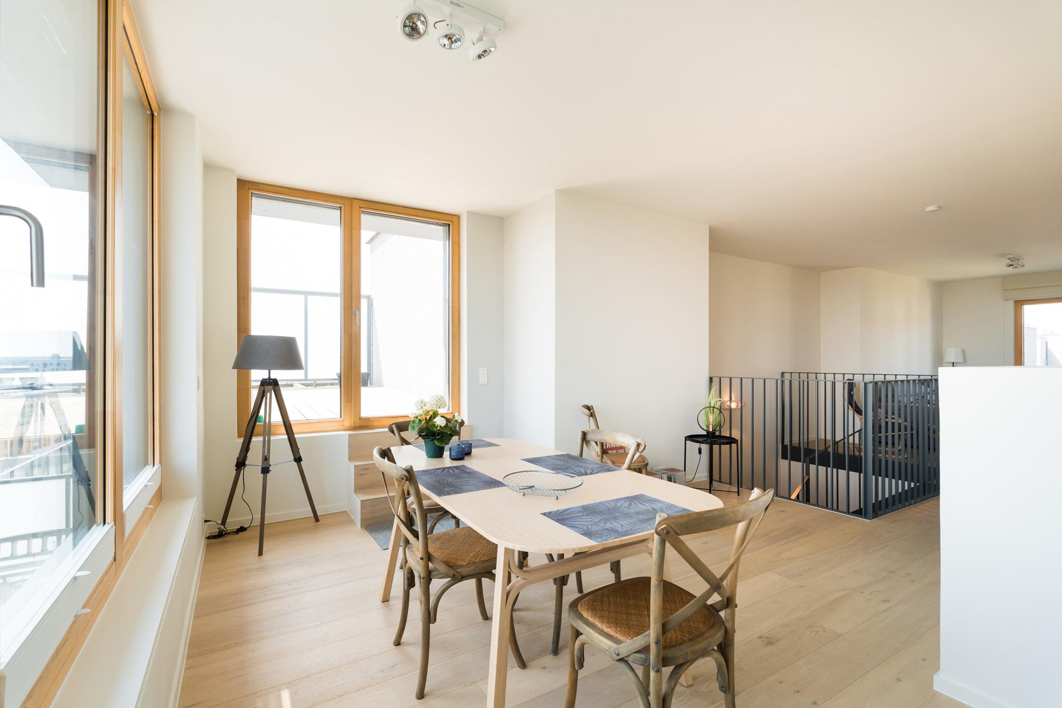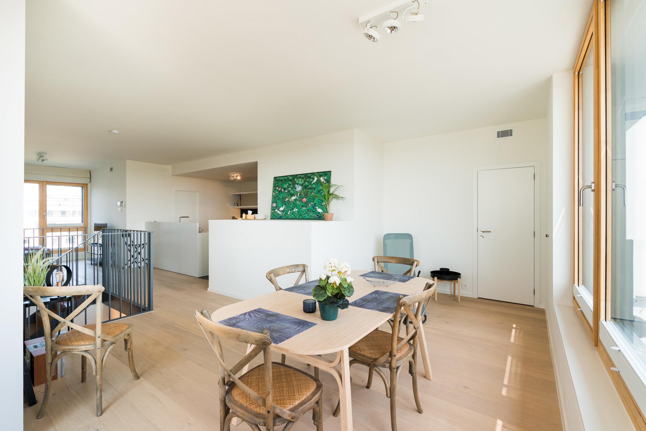 SINT-LAMBRECHTS-WOLUWE, gelegen op een steenworp van alle voorzieningen, prachtig PENTHOUSE (2bed/1badkamer/GDP “B+”!!) van +-135m² bruto, zo goed als nieuw, met 2 prachtige TERRACES (13m²en 30m²) met ononderbroken uitzicht over de stad. Gelegen op de 7e en 8e verdieping van een gebouw uit 2021, is dit “coup de coeur” appartement als volgt samengesteld: op de begane grond: inkomhal met vestiaire en apart toilet, nachthal met toegang tot het prachtige terras van 30m² (ZO), slaapkamer 1 (14,5m²), slaapkamer 2 (10m²) met toegang tot het achterterras, badkamer (dubbele wastafel, Italiaanse douche en bad). Eerste verdieping: lichte woon/eetkamer met prachtig uitzicht en toegang tot het tweede terras van 13m² (SE), super ingerichte keuken (met Miele apparatuur), bijkeuken/opslagruimte, wasruimte en apart toilet met wastafel. Kelder: 2 PARKEERPLAATSEN + 4 FIETS PLAATSEN (+50.000 euros) ! EPC “B+”: 58 kwh/m²/jaar. Elektriciteit conform. Exclusief te ontdekken bij Latour et petit!