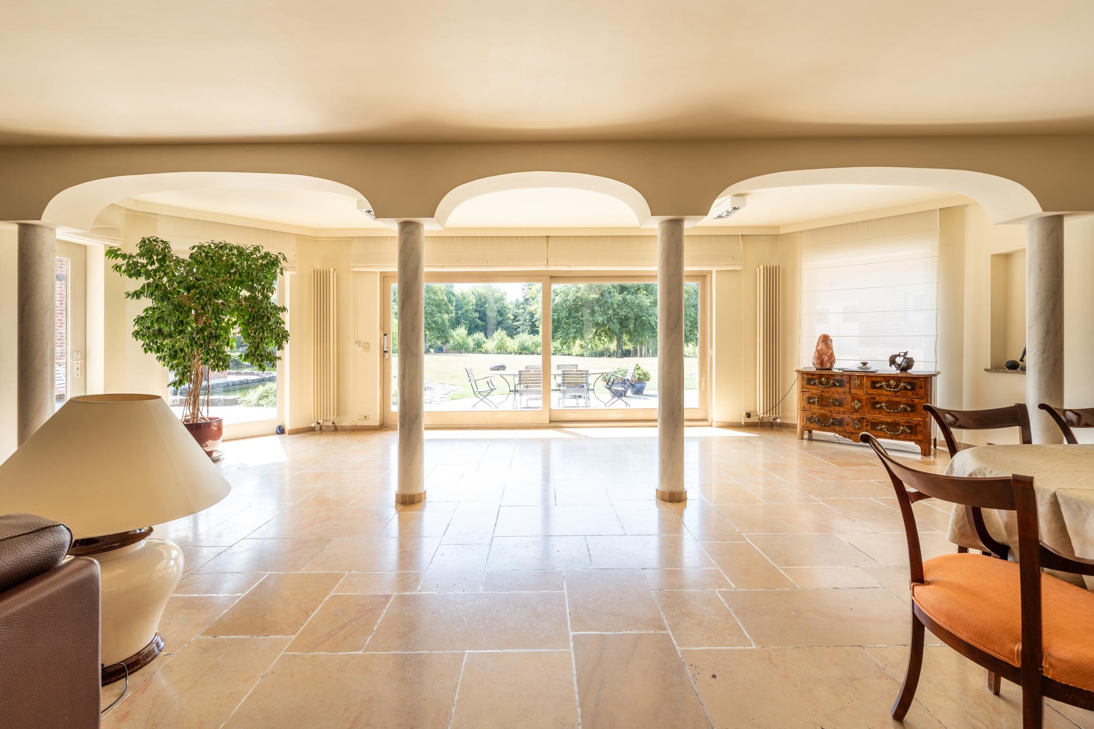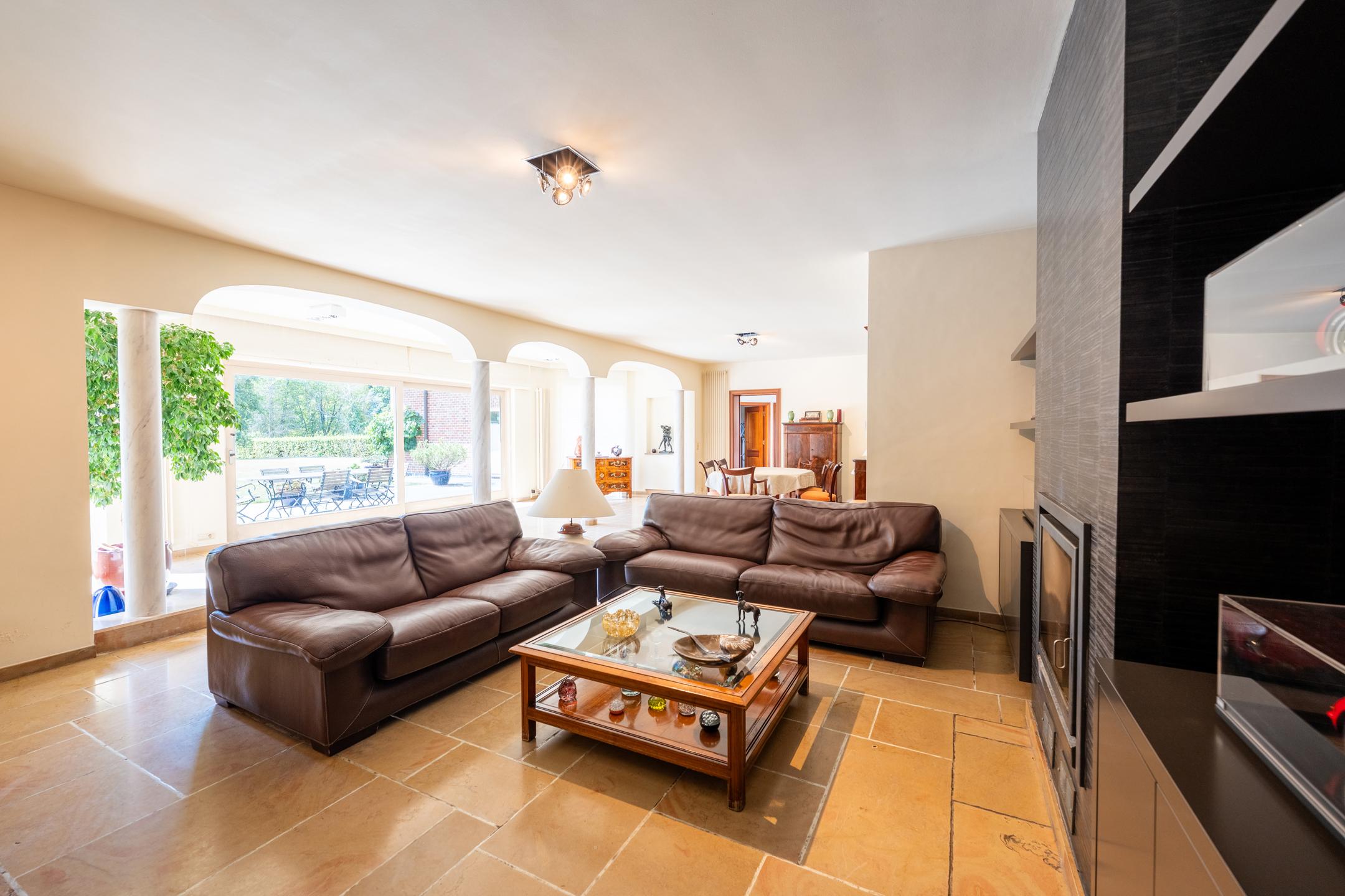Hoeilaart, grenzend aan La Hulpe, prachtige eigendom verscholen in het groen en met talrijke mogelijkheden, onder andere voor paardenliefhebbers. Gelegen op een perceel van 1 hectare 32, ontwikkelt de villa ongeveer 700 m² bewoonbare oppervlakte en overtuigt door haar volumes, lichtinval en unieke kader. Zij beschikt over drie afzonderlijke ingangen, wat de installatie van een vrij beroep vergemakkelijkt. Het gelijkvloers omvat een ruime inkomhal met grote vestiaire, prachtige ontvangstruimtes met een salon voorzien van een cassettehaard en een tv-salon, een grote keuken met bijkeuken, alsook een binnenzwembad uitgerust met ontvochtiger, douchekamer, toilet en sauna. Twee dubbele garages vervolledigen dit niveau. Op de verdieping bevinden zich twee mooie suites met badkamer, evenals twee volledige appartementen met aparte toegang die kunnen worden omgevormd tot vijf royale slaapkamers en vier badkamers. De kelder biedt een wijnkelder, meerdere bergruimtes en de stookruimte. De buitenzijde onthult een schitterende koivijver met natuurlijke filtering, een groot terras en een prachtige vlakke tuin met fruitbomen en een bosgedeelte. Een aparte zijtoegang laat toe om een paardenactiviteit te ontwikkelen. Technisch: EPC C 242 kWh/m².jr – 202210310002712941, gascondensatieketel en boiler van Weishaupt (2011), waterfiltersysteem, alarm en bewakingscamera’s. Exclusief te ontdekken bij Latour & Petit!