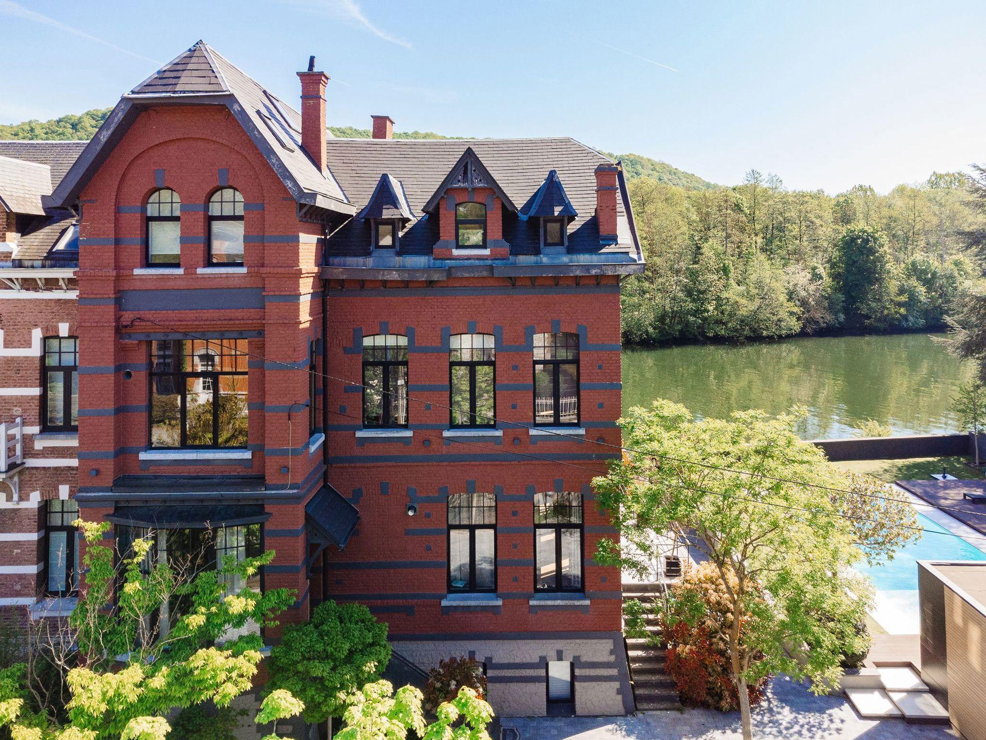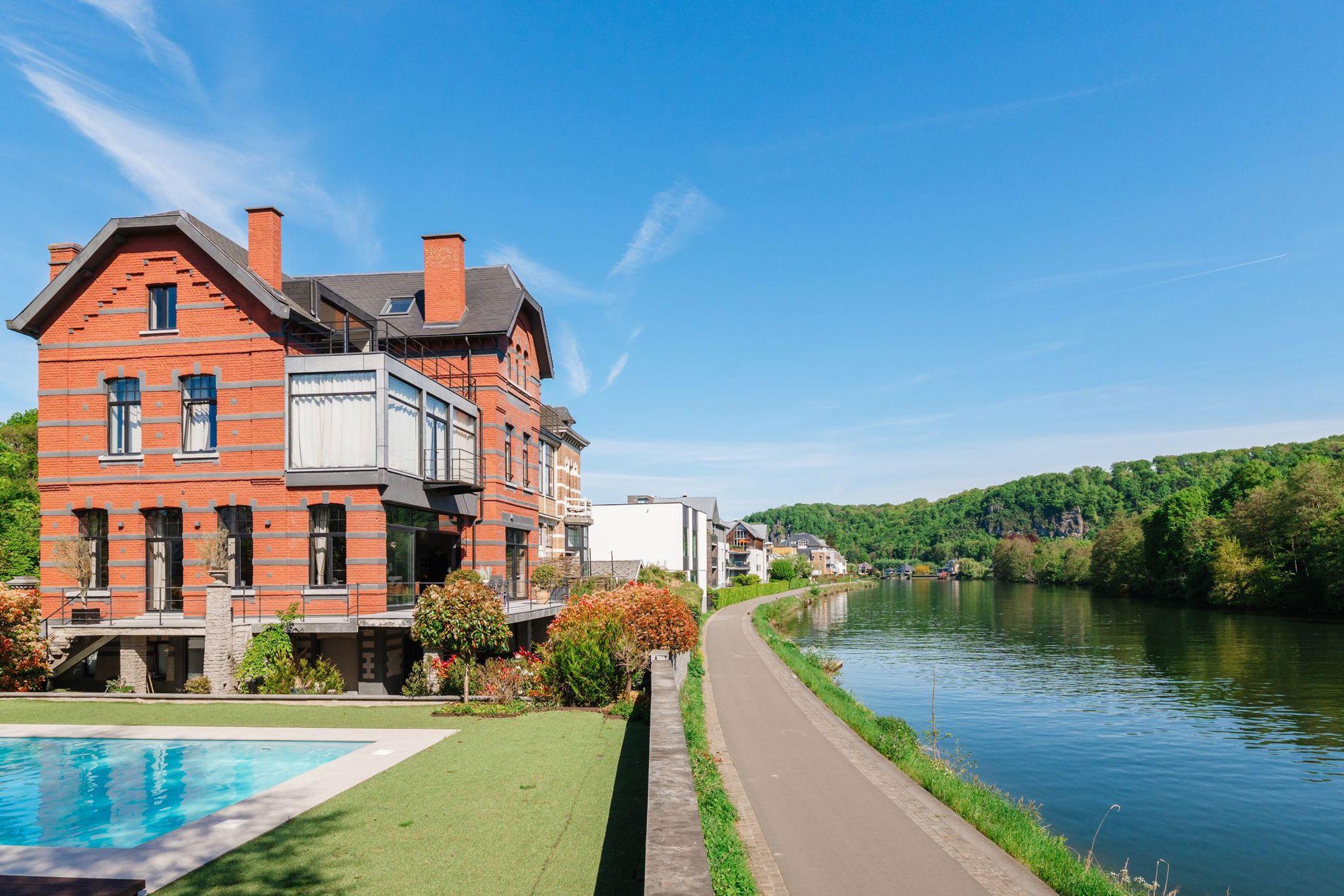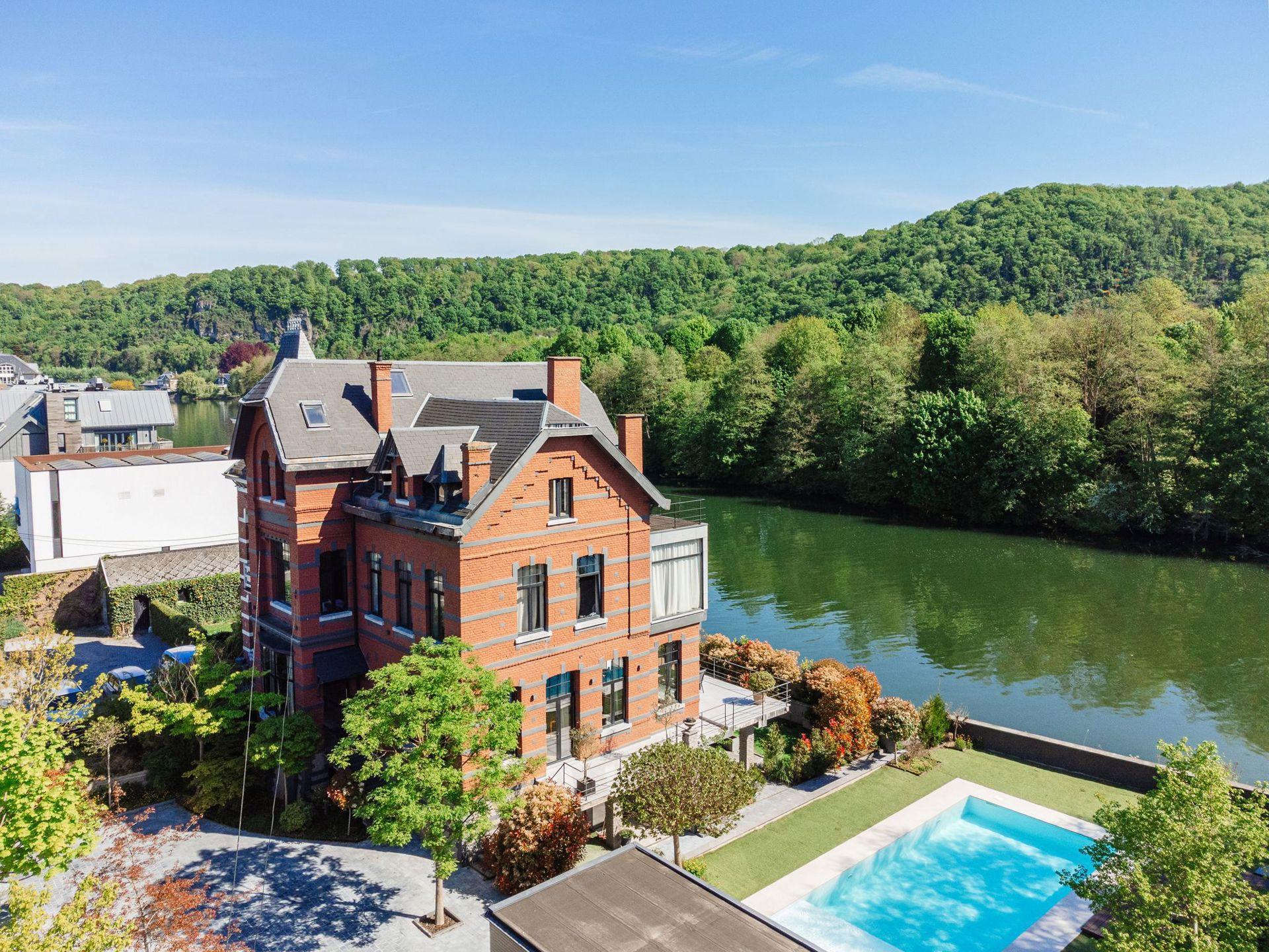 WÉPION, aan de oevers van de Maas op een rustige locatie, prachtige MOSANE VILLA (5bed/3bath) gebouwd op 10,59 hectare grond. Op de begane grond leidt een ruime hal met apart toilet naar een prachtige woonkamer met gasgestookte insert, aangevuld met een prachtig uitgeruste keuken. Dankzij de grote ramen geniet het hele huis van ononderbroken uitzicht over de Maas en toegang tot het terras en de tuin.