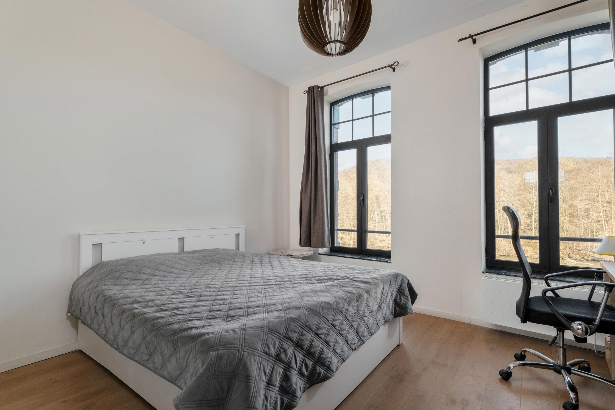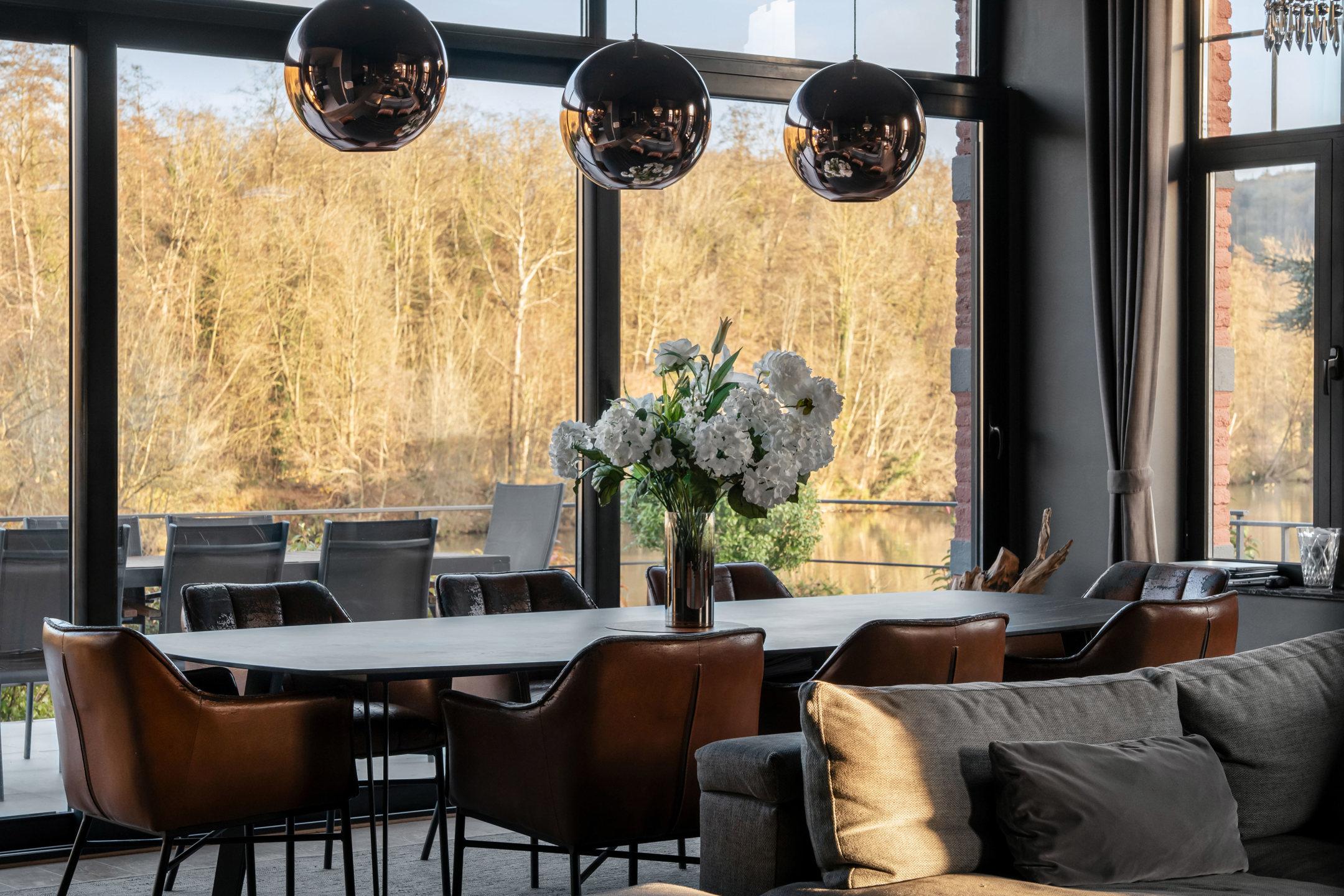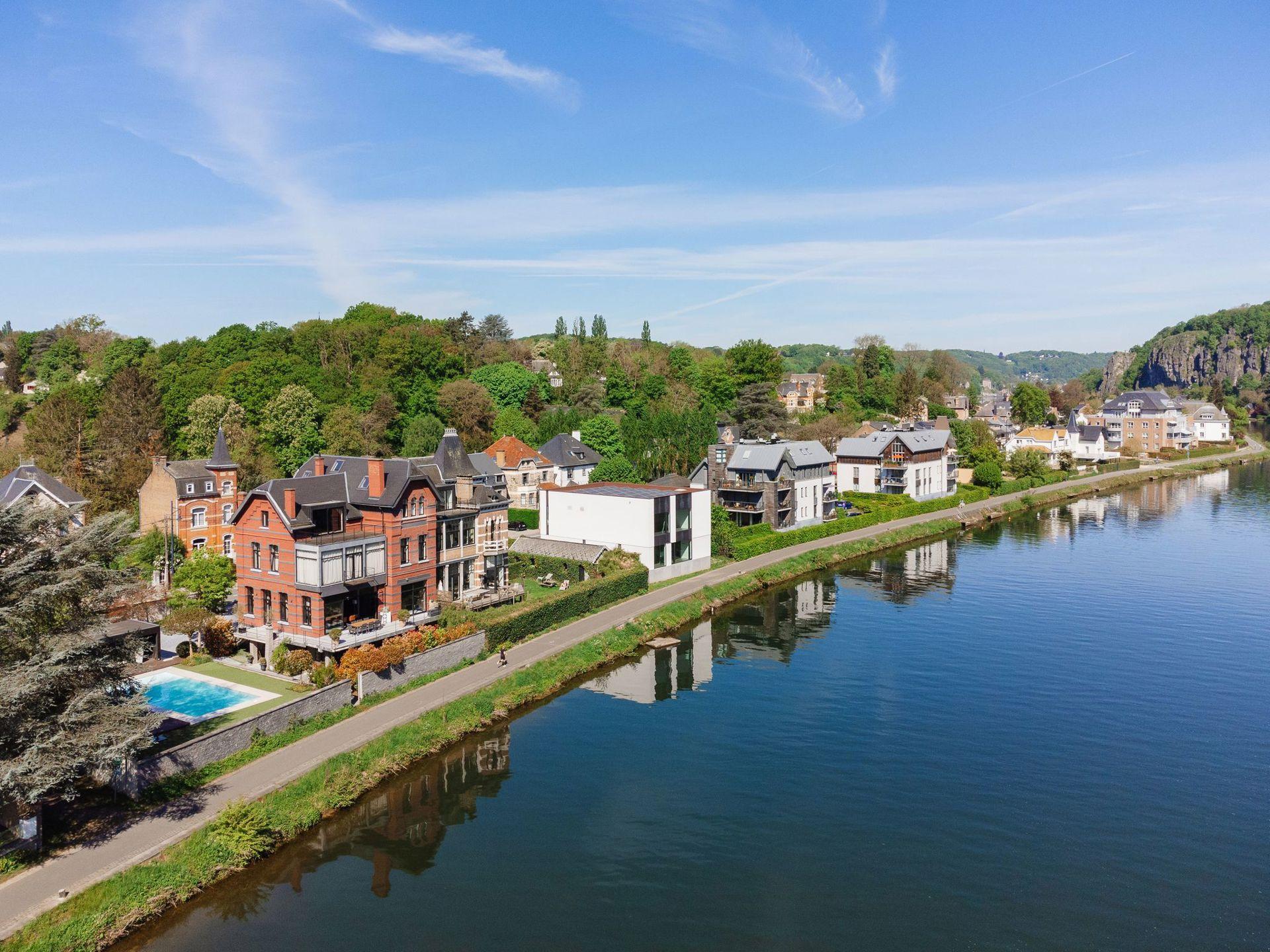 WÉPION, aan de oevers van de Maas op een rustige locatie, prachtige MOSANE VILLA (5bed/3bath) gebouwd op 10,59 hectare grond. Op de begane grond leidt een ruime hal met apart toilet naar een prachtige woonkamer met gasgestookte insert, aangevuld met een prachtig uitgeruste keuken. Dankzij de grote ramen geniet het hele huis van ononderbroken uitzicht over de Maas en toegang tot het terras en de tuin.