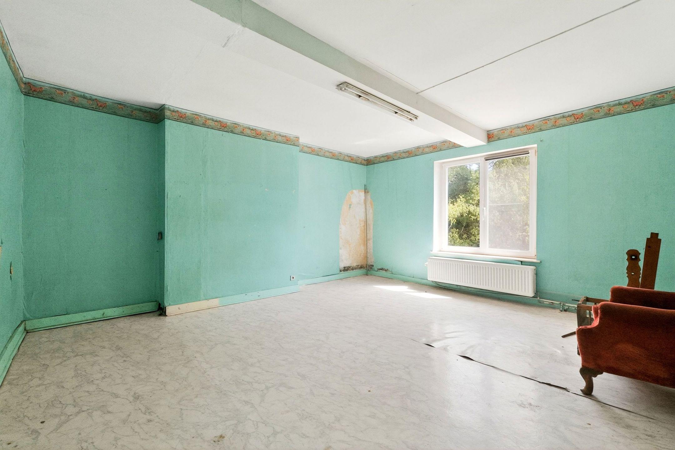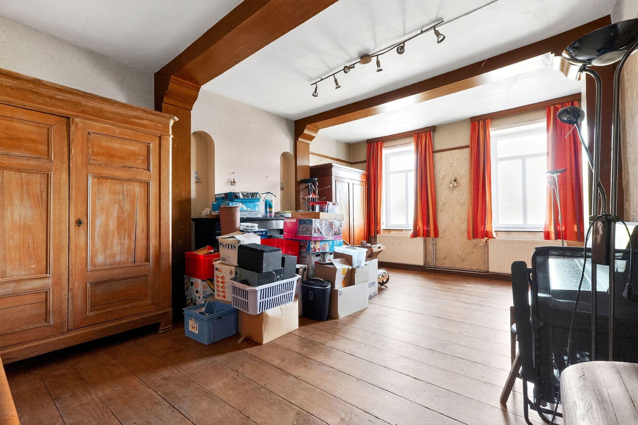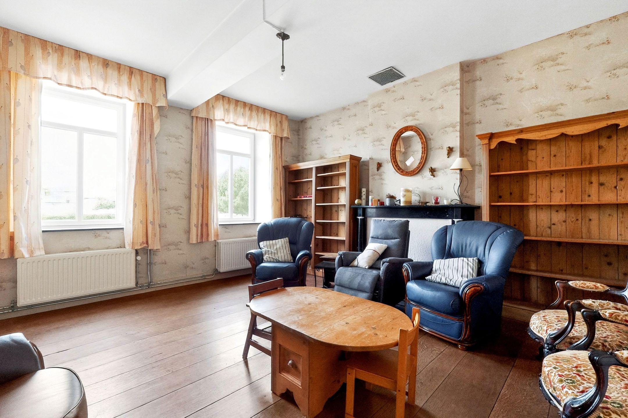 SOMBREFFE, in een groene omgeving, mooie te renoveren VRIJSTAANDE WONING (8 slaapkamers + 2 badkamers), gebouwd op een terrein van 26,70 are. Deze imposante woning bestaat op de begane grond uit een ruime hal die aan de ene kant uitkomt op een ingerichte keuken en een woonkamer. Aan de andere kant geeft het toegang tot een eetkamer en een tweede salon of kantoorruimte.
