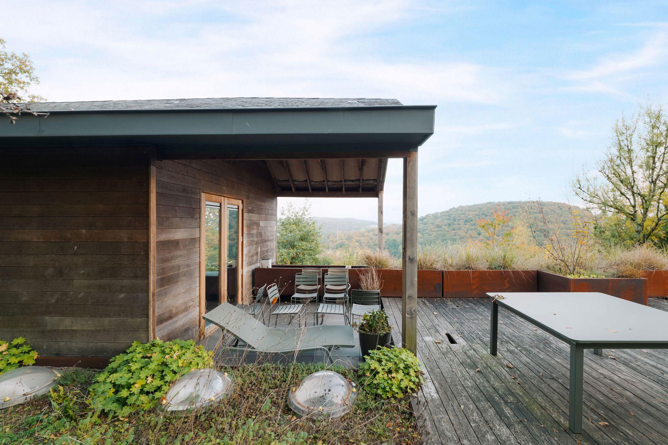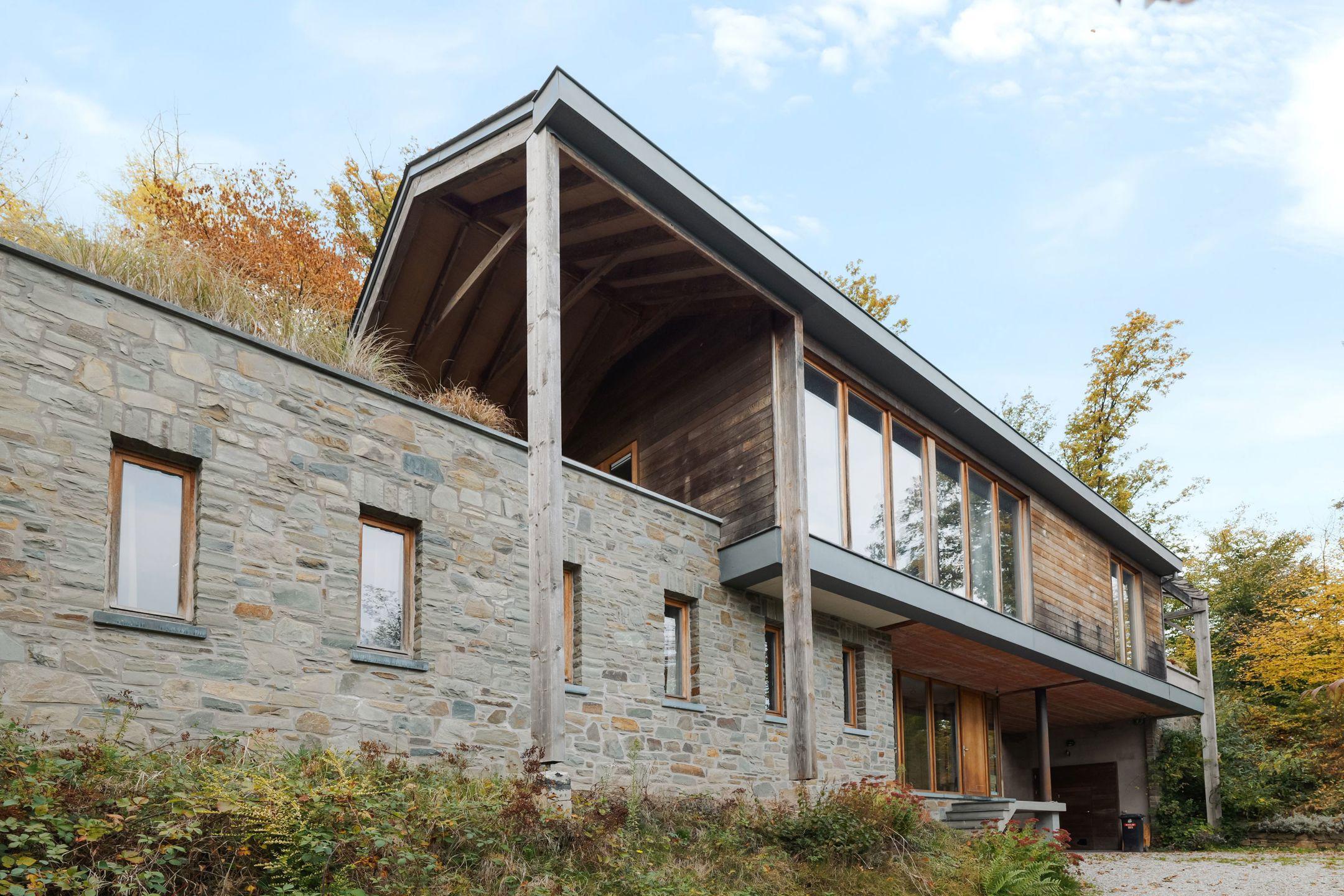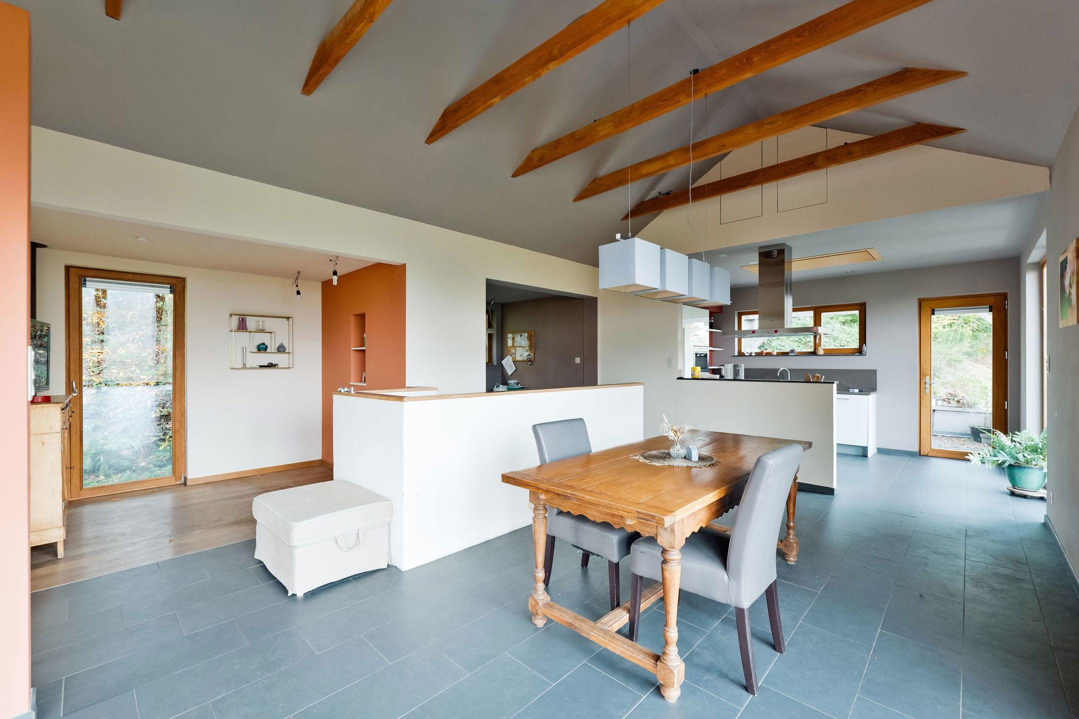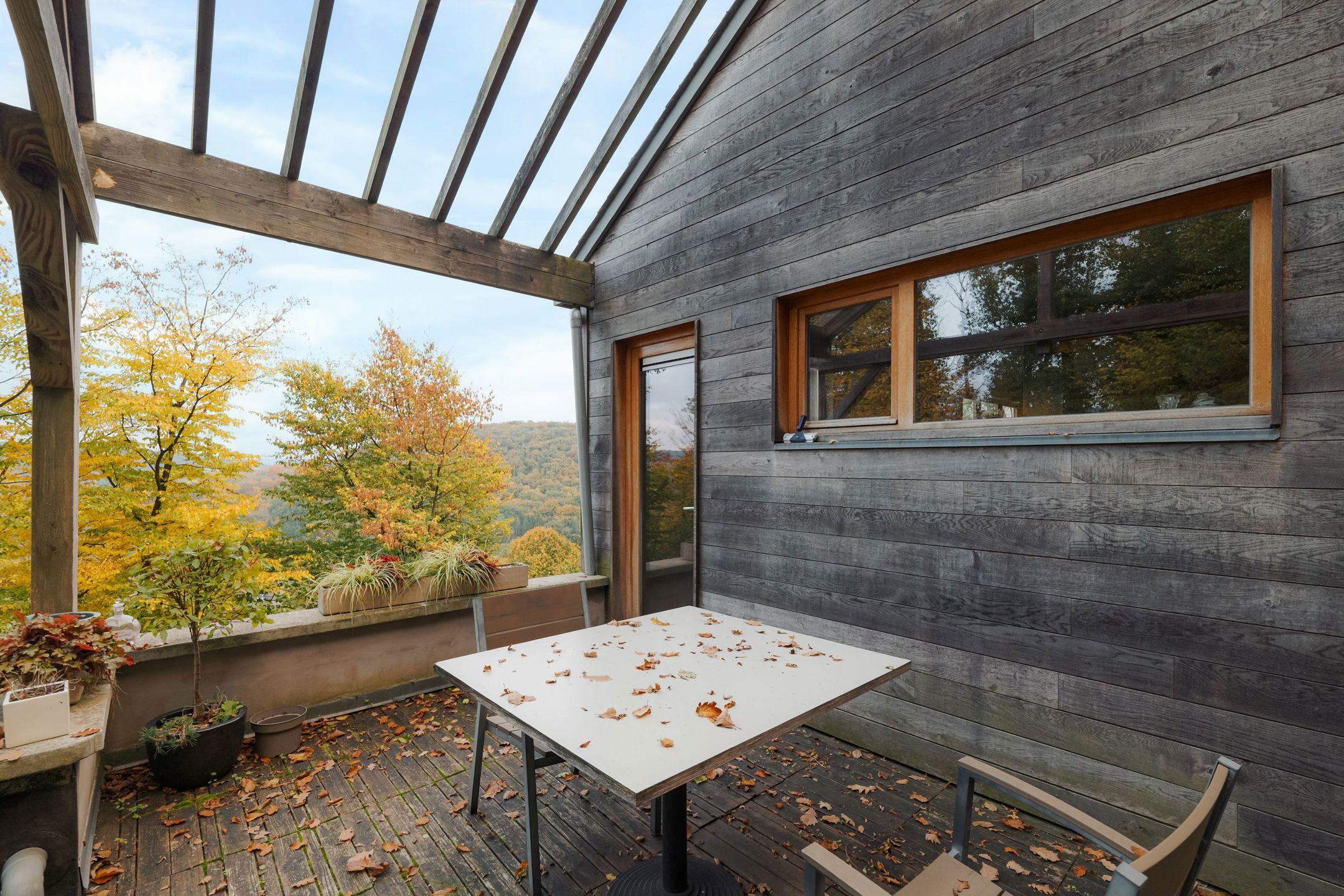 ARBRE, in een rustige straat, prachtig HUIS (3 slaapkamers/1 badkamer) + 1 aangrenzend APPARTEMENT (1 slaapkamer/1 bureau/1 badkamer) gebouwd op een terrein van 24,39 are. Dit huis onderscheidt zich door zijn prachtige inkomhal met een trap die naar de leefruimtes op de verdieping leidt. U vindt er een open woonkamer met keuken, eetkamer, salon en een bureau- en leeshoek. Twee terrassen, op het zuiden en het noorden, bieden een prachtig uitzicht. Terug op de begane grond geeft de inkomhal toegang tot een apart toilet, een wasruimte met douche en een toegang naar buiten. Hier vindt u ook de nachthal met veel kasten en dakramen. Drie mooie slaapkamers met uitzicht op de vallei en een badkamer maken deze verdieping compleet. Het huis heeft ook een carport en een schuur, terwijl de garage zich onderaan de oprit bevindt. De toegang tot het appartement is aan de andere kant van het huis, wat volledige privacy garandeert. Het appartement bestaat uit een inkomhal, een apart toilet, een woonkamer met open keuken, een nachthal, een badkamer, een kantoor en een slaapkamer. Het geheel van deze woning past harmonieus in de natuur, waardoor u ten volle kunt genieten van de rustige omgeving. Houtskeletbouw, goede isolatie, centrale verwarming op hout, regenwatertank, zonnepanelen, niet-conforme elektriciteit, EPC D-330kWh/m².jaar-20250928003259. Te ontdekken bij L&P op 081/303 404!