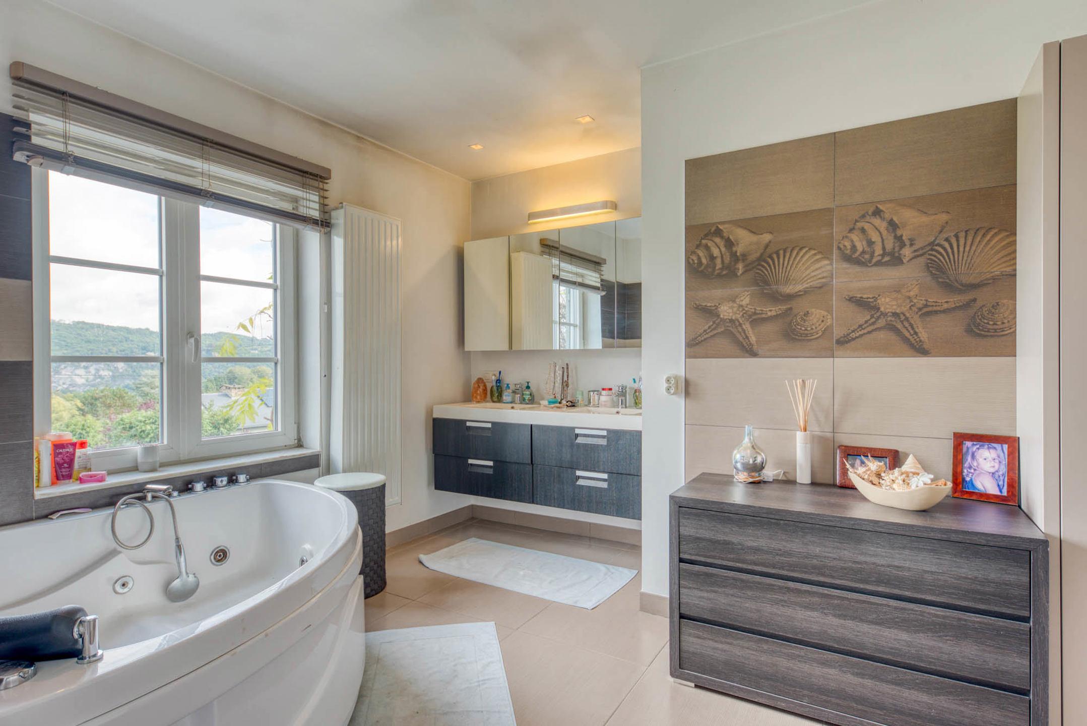 PROFONDEVILLE, charmant huis met 4 gevels (4 slaapkamers + bureau + 4 badkamers) op een uitstekende locatie op 40,03 hectare grond. Dit aantrekkelijke, ruime huis heeft 3 verdiepingen. De begane grond bestaat uit een hal, een toilet, een grote werkkamer met doucheruimte, een slaapkamer, een badkamer, een prachtige inbouwkeuken, een bijkeuken, een zitkamer, een eetkamer en een grote serre. Op de eerste verdieping leidt de nachthal naar 3 grote slaapkamers en twee badkamers. De kelder van het huis bestaat momenteel uit een grote garage, een wasruimte, een ingerichte keuken, een toilet, een kelder en een ruimte van 71 m² die gebruikt zou kunnen worden voor een vrij beroep of omgebouwd zou kunnen worden tot slaapkamers en een extra badkamer om de mogelijkheid te bieden van een volledig onafhankelijke woning van het type kangoeroewoning. De buitenkant bestaat uit een schitterend terras en een prachtige, goed onderhouden tuin op het zuiden. Dit prachtige huis is in uitstekende staat en is gebouwd met kwaliteitsmaterialen. Dicht bij alle voorzieningen. PVC DV raamkozijnen. Elektrische installatie conform de voorschriften. Stookketel op stookolie Saint-Roch (2009). PEB D - 302 kWh/m².an - 159818 kWh/jaar - N°20221002000837. Bieden vanaf €550.000 onder voorbehoud van aanvaarding door de eigenaar. Bel Latour & Petit op 081/303.404 voor meer informatie!