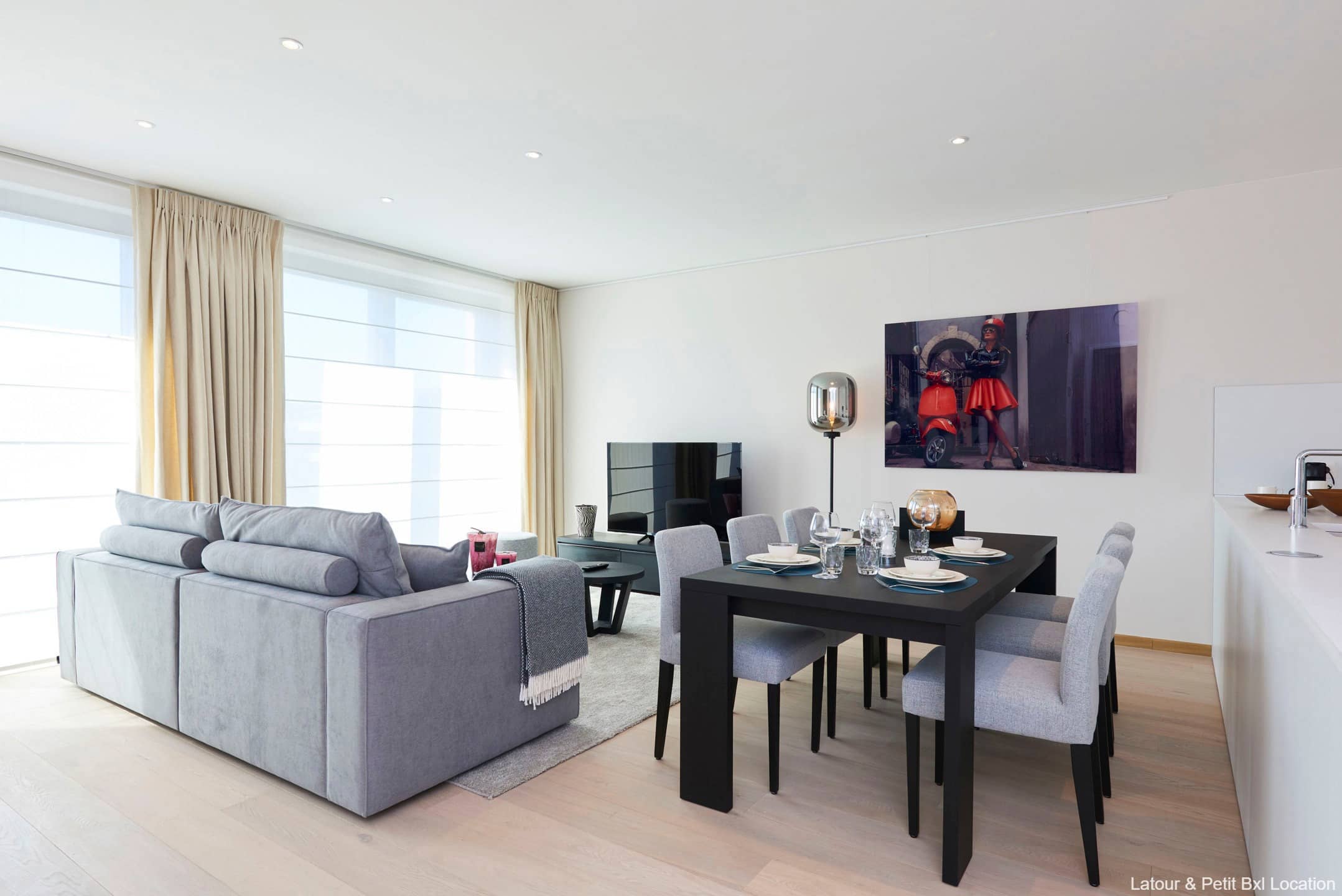 IXELLES, Résidence Cond'Or au coeur du quartier Louise/Stéphanie. Magnifique APPARTEMENT (2ch/1sdb/1sdd) meublé de ±121 m² avec terrasse. Celui-ci se compose d'un hall d'entrée, toilettes et vestiaire, lumineux living avec une agréable terrasse de ±11 m², cuisine ouverte hyper-équipée, chambre principale avec placards et sa salle de bains avec douche en suite, chambre de ±10 m², salle de douche. Une cave et un emplacement de parking complètent ce bien. Provision de charges : 290 €/mois (communs). PEB : B-. A découvrir chez L&P !