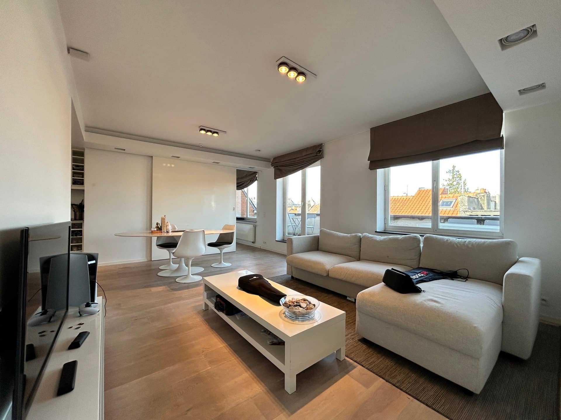 IXELLES, à deux pas de Fernand Cocq, entre Louise et Saint-Boniface, ce charmant APPARTEMENT (2ch/1sdb/1sdd) meublé de ±74m² est situé au 4ème étage d'un immeuble avec ascenseur. Il se compose d'un séjour avec cuisine ouverte super équipée de ±30m² avec accès à la terrasse de ±23m², une chambre de ±14 m² avec placard encastrés et salle de douche séparée, deuxième chambre de ±10m² avec salle de douche privative et toilettes invitées. Une cave complète ce bien. Provision de charges : 105€/mois (frais communs et eau froide). Possibilité d'avoir internet inclus dans les charges pour 45€/mois supplémentaire. PEB: D+. A découvrir en exclusivité chez Latour & Petit!