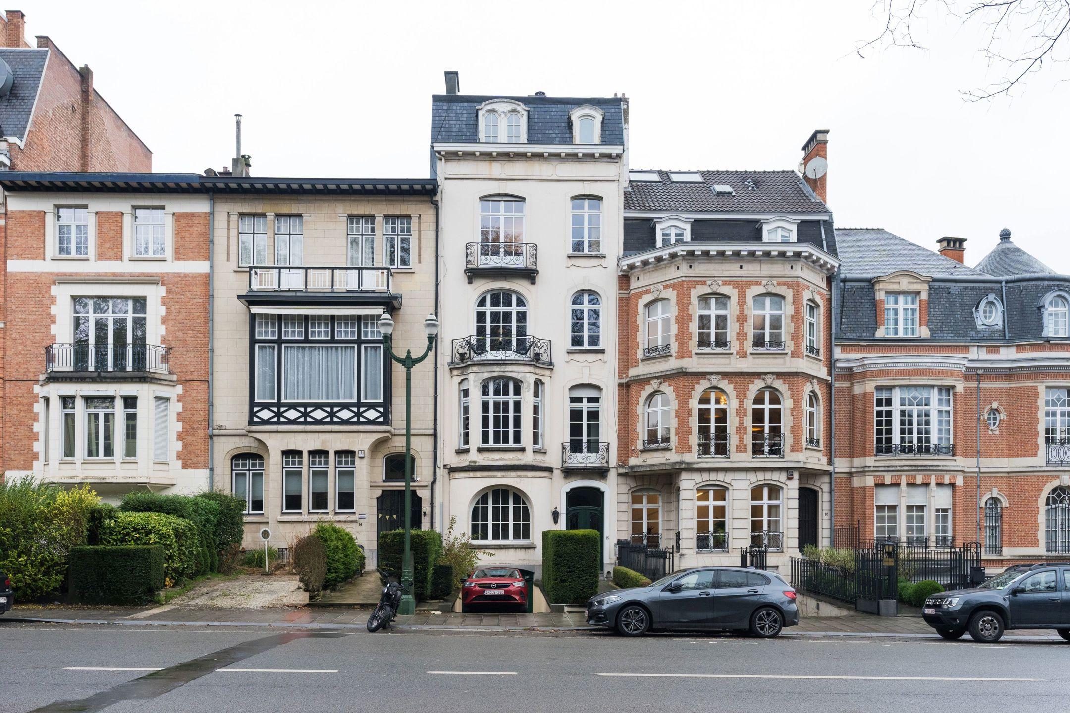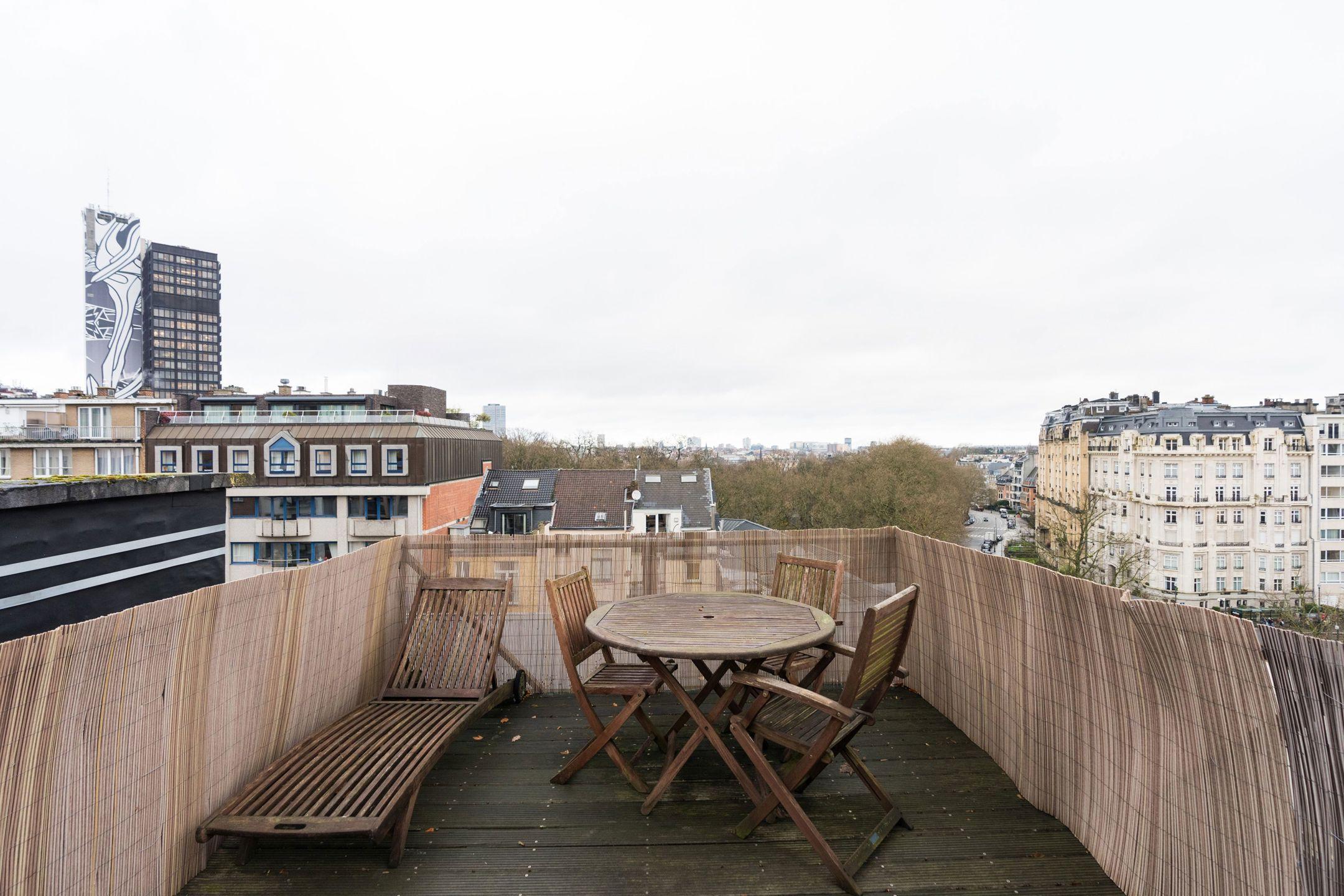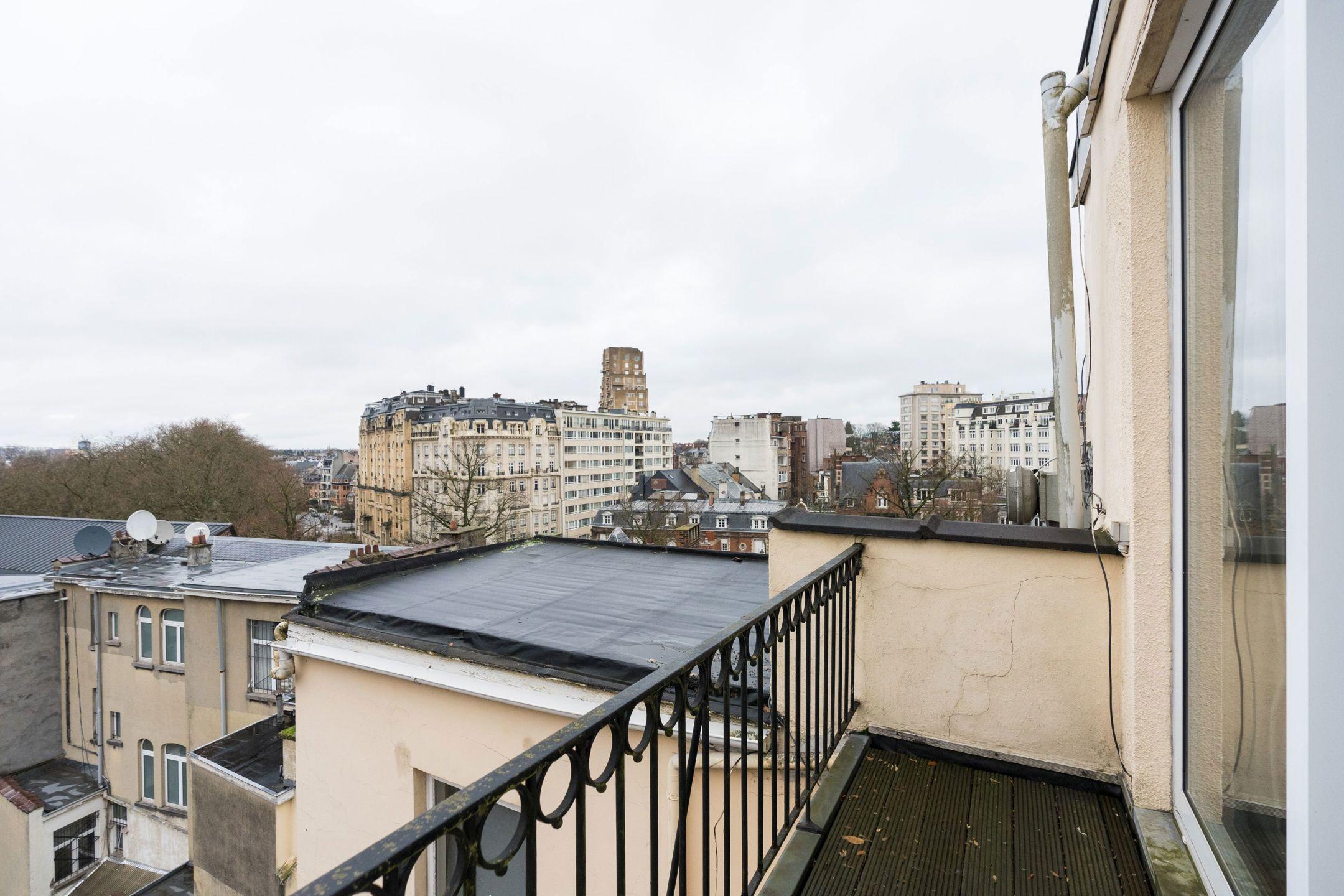 BRUXELLES (Quartier Louise), en bordure du Bois de la Cambre, au 4ème et dernier étage d'un superbe immeuble style Beaux-Arts de l'architecte Pierre De Groef, magnifique APPARTEMENT DUPLEX PENTHOUSE avec ascenseur (1ch/2sdb)de +- 105m² habitables avec TERRASSE de +_ 15m². Il est composé comme suit : hall d'entrée avec vestiaire et toilette invités, une cuisine séparée équipée, un spacieux séjour donnant accès à une terrasse, une chambre avec sa salle de bains adjacente, un escalier vers le deuxième niveau, un bureau (actuellement utilisé comme chambre) donnant sur une superbe terrasse offrant une jolie vue sur la ville et le bois de la Cambre, une salle de douche avec emplacement buanderie, un débarras et placards de rangement. Cave à l'entresol et local vélo au sous-sol. PEB G. RU 165/2024. Un bien rare à découvrir en exclusivité chez Latour et Petit!