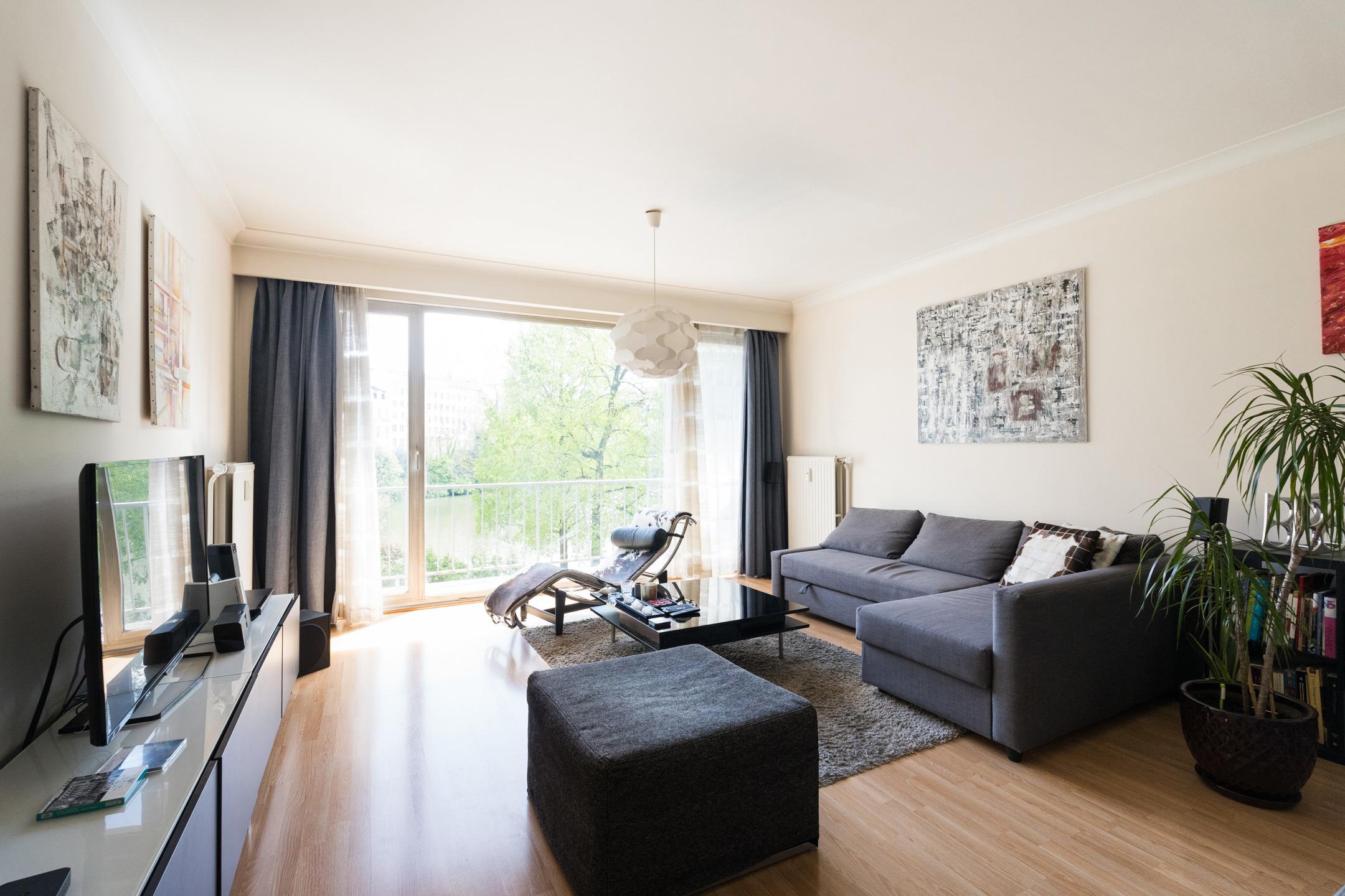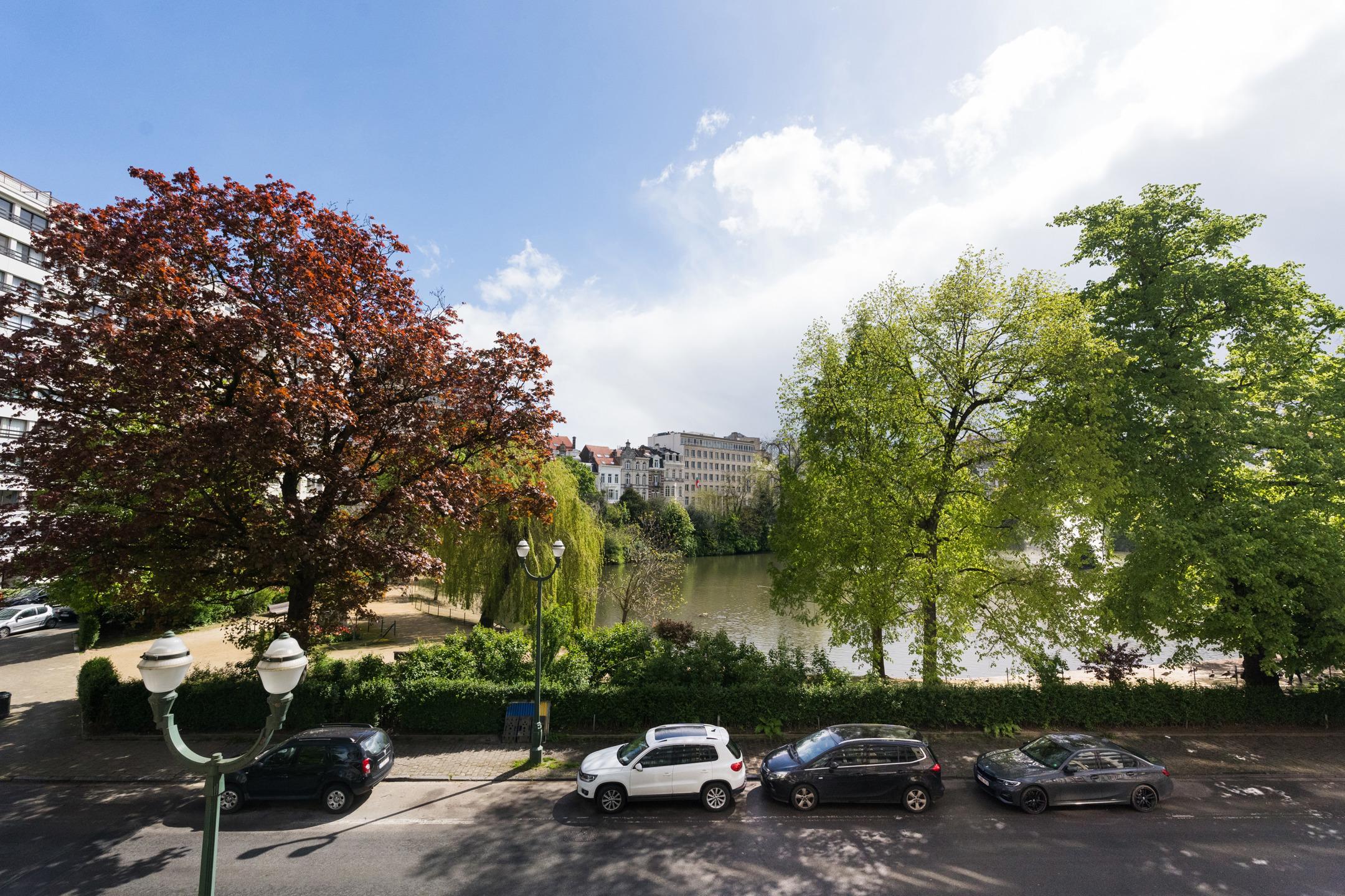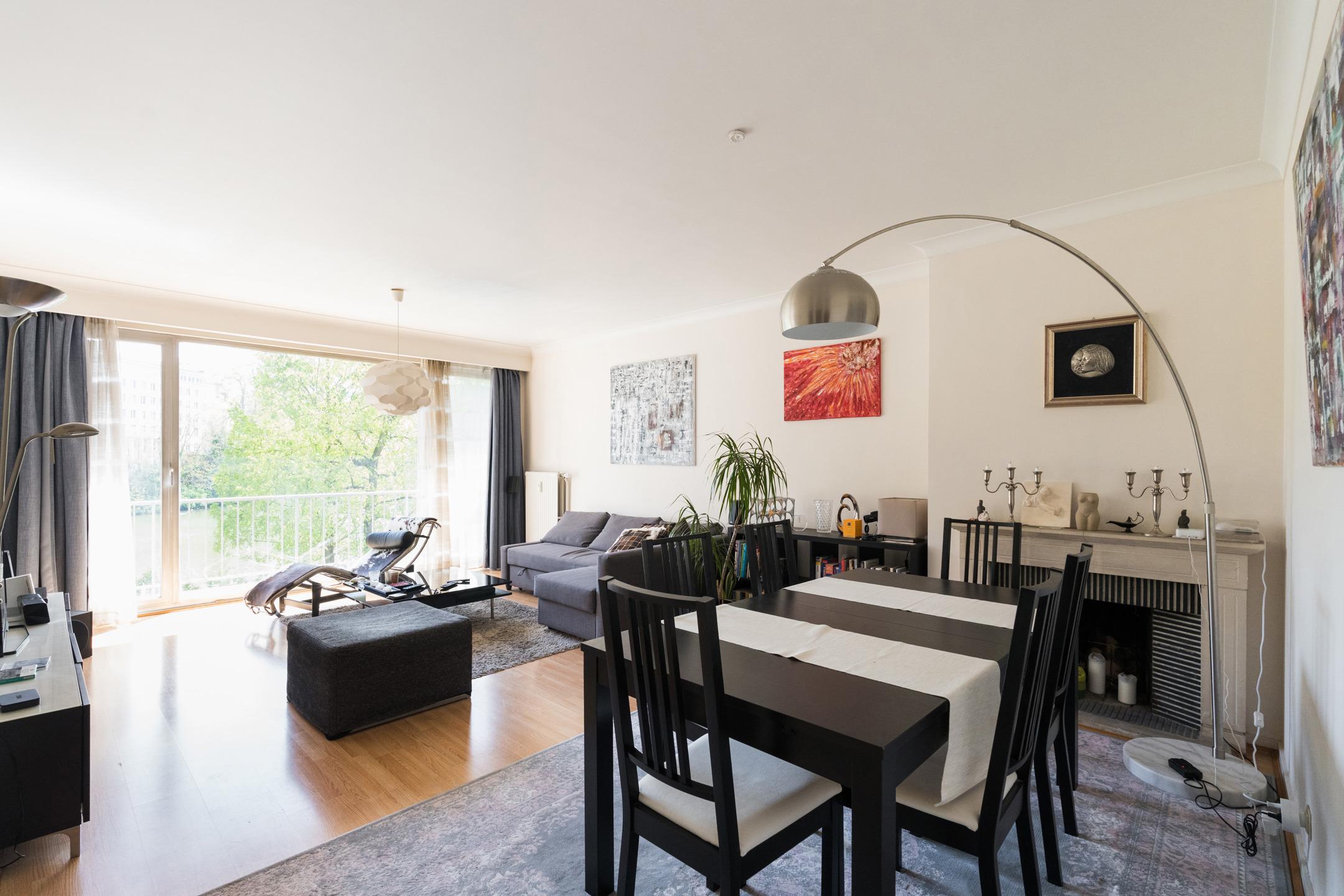**SOUS OPTION**BRUXELLES, idéalement situé en bordure de l'étang du Quartier des Squares, agréable APPARTEMENT (2ch/1sdb) de 85m² avec terrasse et garage. L'appartement se situé au 2ème étage sur 7 d'une vue verdoyante, il se compose comme suit: hall d'entrée avec espace vestiaire, living de 30m² comprenant salon et salle à manger avec accès à une terrasse orientée Est. Cuisine équipée avec espace buanderie. Hall de nuit avec placards intégrés, salle de bain (douche, wc, double lavabo et bidet), 2 chambres (15m² et 11m²) En sous-sol: un parking (40.000€) et une cave. Electricité non-conforme. PEB C (132k((Wh/m²/an)