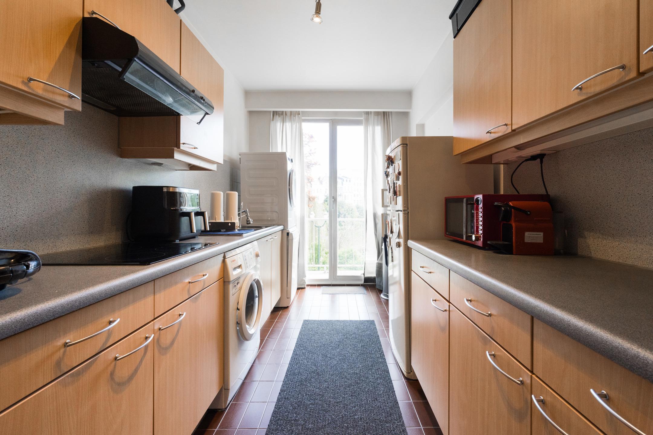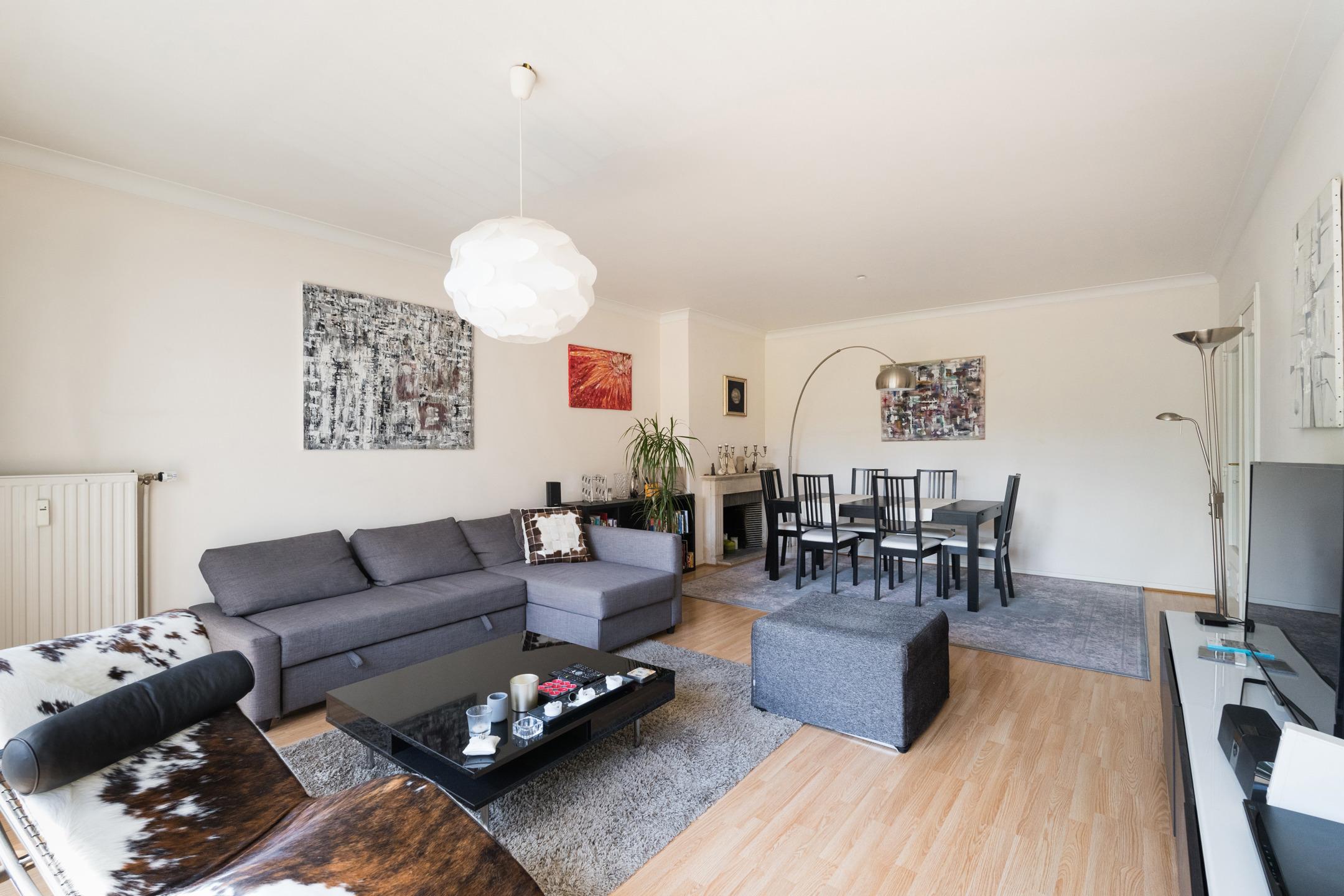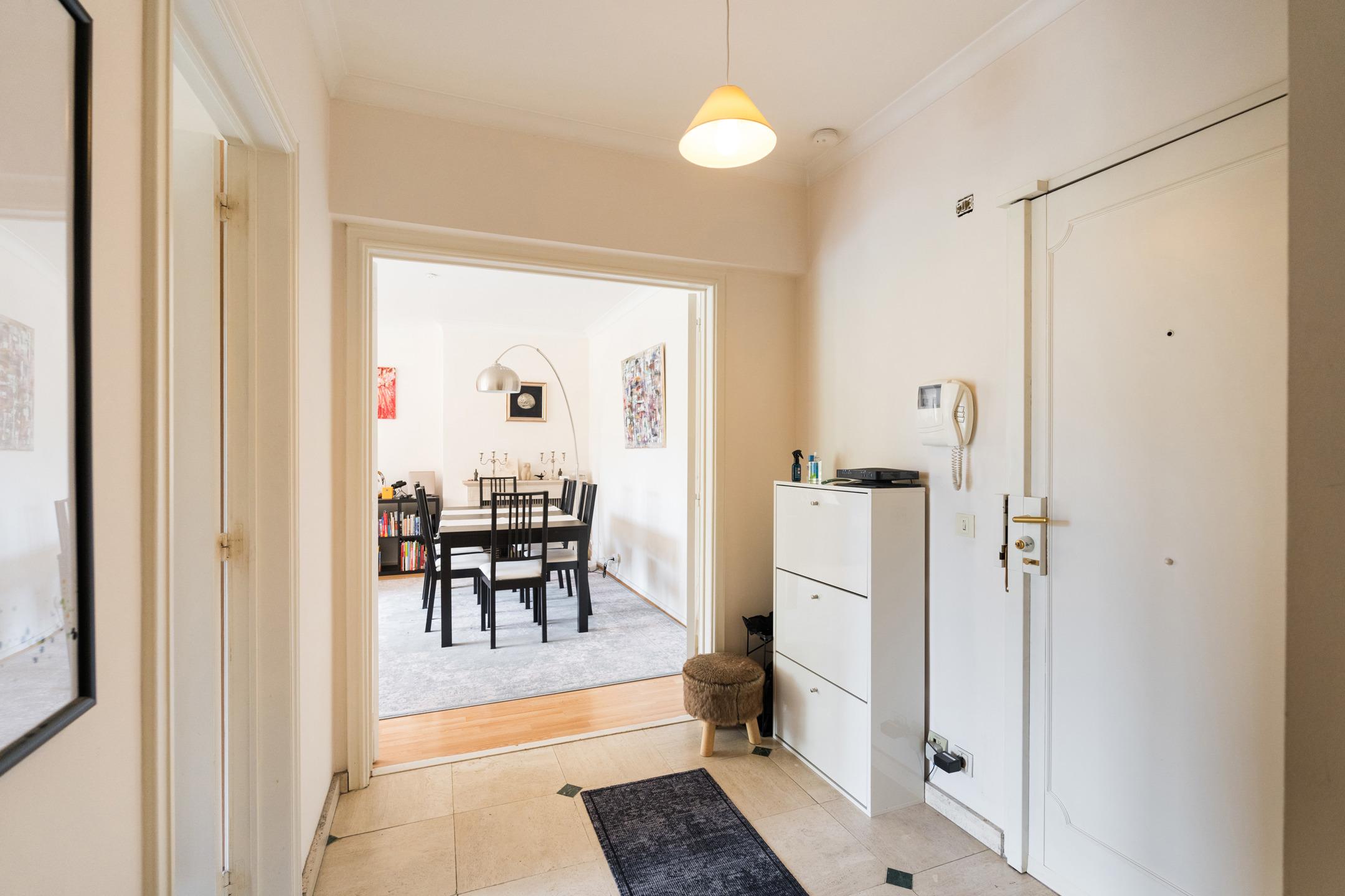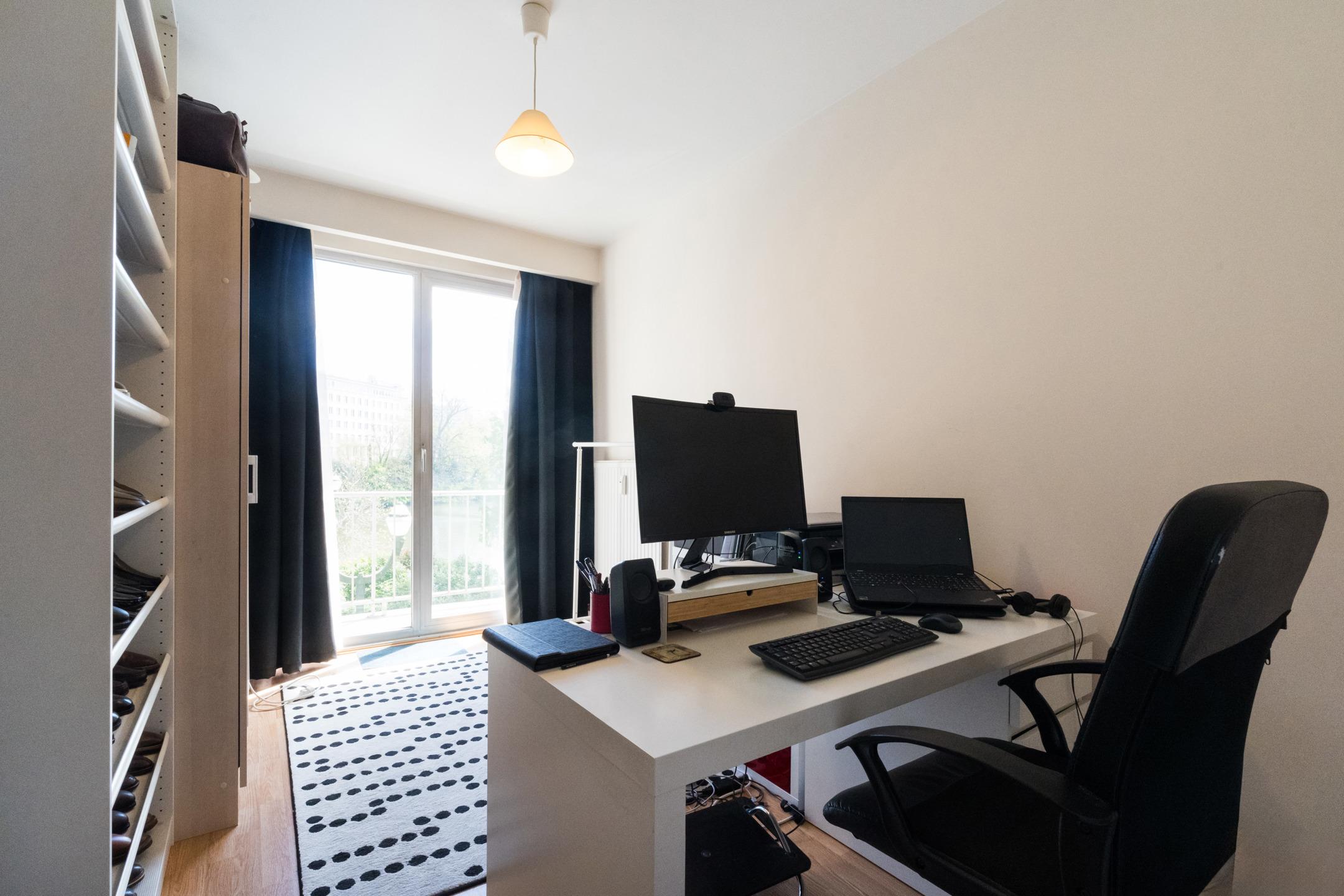**SOUS OPTION**BRUXELLES, idéalement situé en bordure de l'étang du Quartier des Squares, agréable APPARTEMENT (2ch/1sdb) de 85m² avec terrasse et garage. L'appartement se situé au 2ème étage sur 7 d'une vue verdoyante, il se compose comme suit: hall d'entrée avec espace vestiaire, living de 30m² comprenant salon et salle à manger avec accès à une terrasse orientée Est. Cuisine équipée avec espace buanderie. Hall de nuit avec placards intégrés, salle de bain (douche, wc, double lavabo et bidet), 2 chambres (15m² et 11m²) En sous-sol: un parking (40.000€) et une cave. Electricité non-conforme. PEB C (132k((Wh/m²/an)