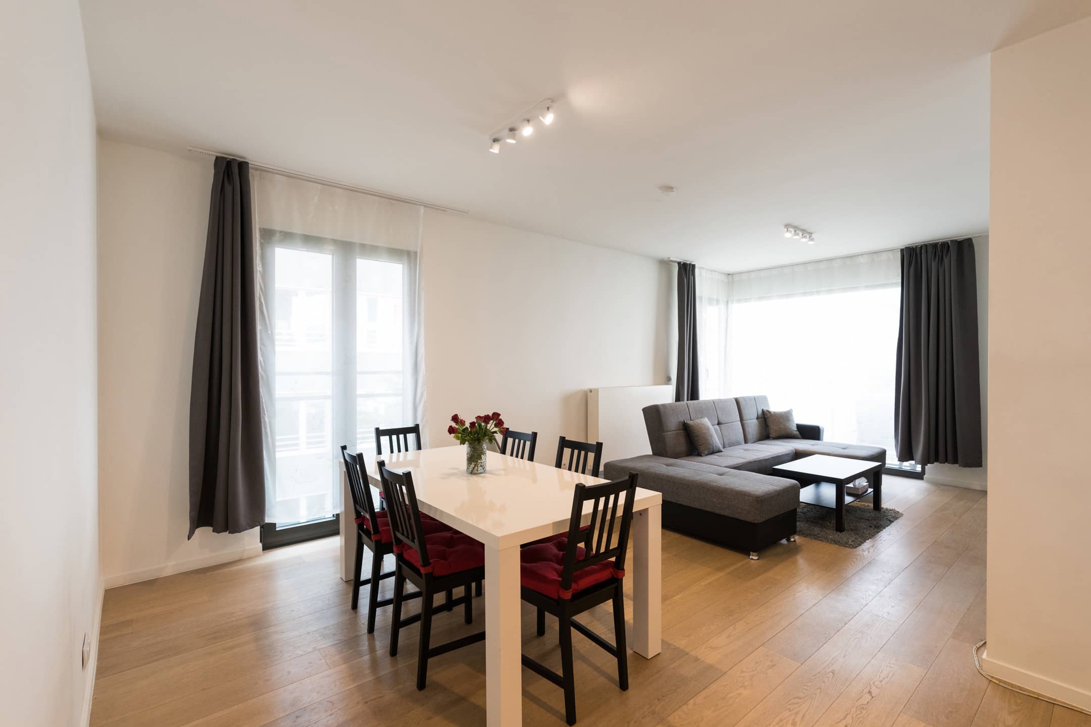 BRUXELLES, UP-SITE, situé à deux pas de Tour & Taxis : Bel APPARTEMENT (3ch/1sdb/1sdd) de ±115m² (selon PEB) avec une GRANDE TERRASSE de ± 27m² et la possibilité d'acquérir un EMPLACEMENT DE PARKING en option (à 25.000€). Première occupation en 2016, Il se compose comme suit : hall d’entrée avec un wc invités avec lave-mains, vestiaire intégré, un séjour de ±37m² avec cuisine ouverte super équipée, un accès à la terrasse de ±27m² (Orientée Sud-Ouest), un hall de nuit desservant une suite parentale avec chambre de ±14,5m² et une salle de bains (baignoire et douche), 2 chambres à couchers de ± 9m², une salle de douche indépendante (avec un emplacement machine à laver), une toilette séparée. PEB: B - Actuellement loué à 1875,86€/Mois charges comprises jusqu'au 30/09/2025 (Bail de courte durée) Chauffage collectif au gaz - Electricité conforme - Châssis double vitrage - VMC - Ascenseur - Syndic - Cave - Local vélo - Conciergerie. A proximité immédiate des transports en communs. Bail à respecter. A découvrir en exclusivité chez Latour & Petit !