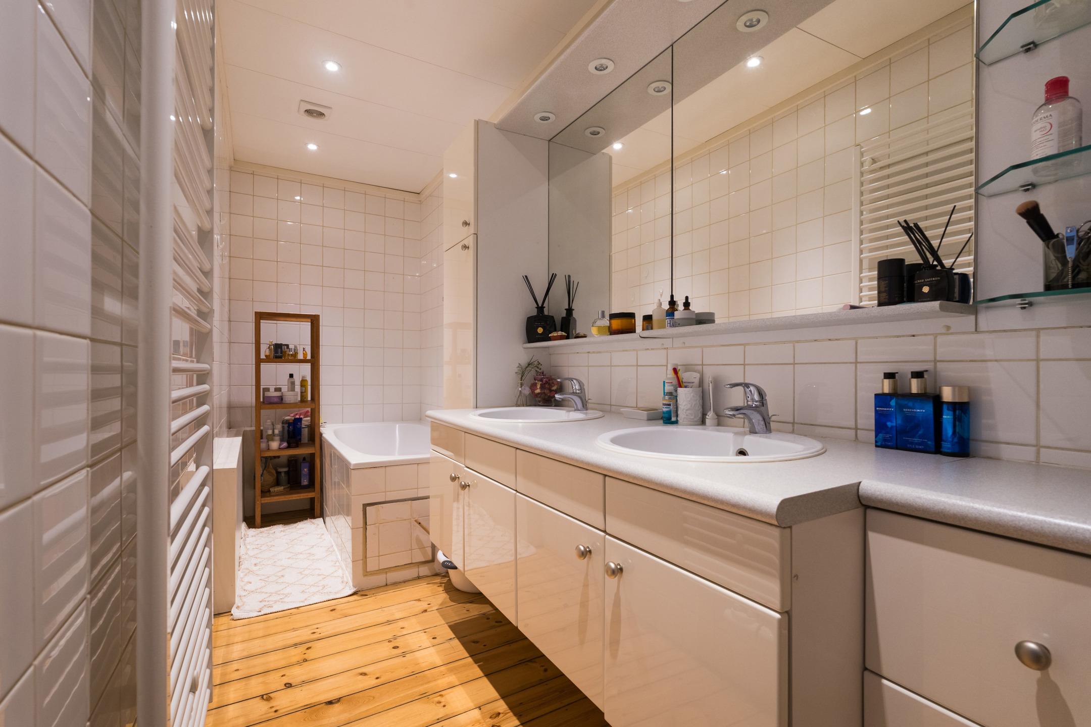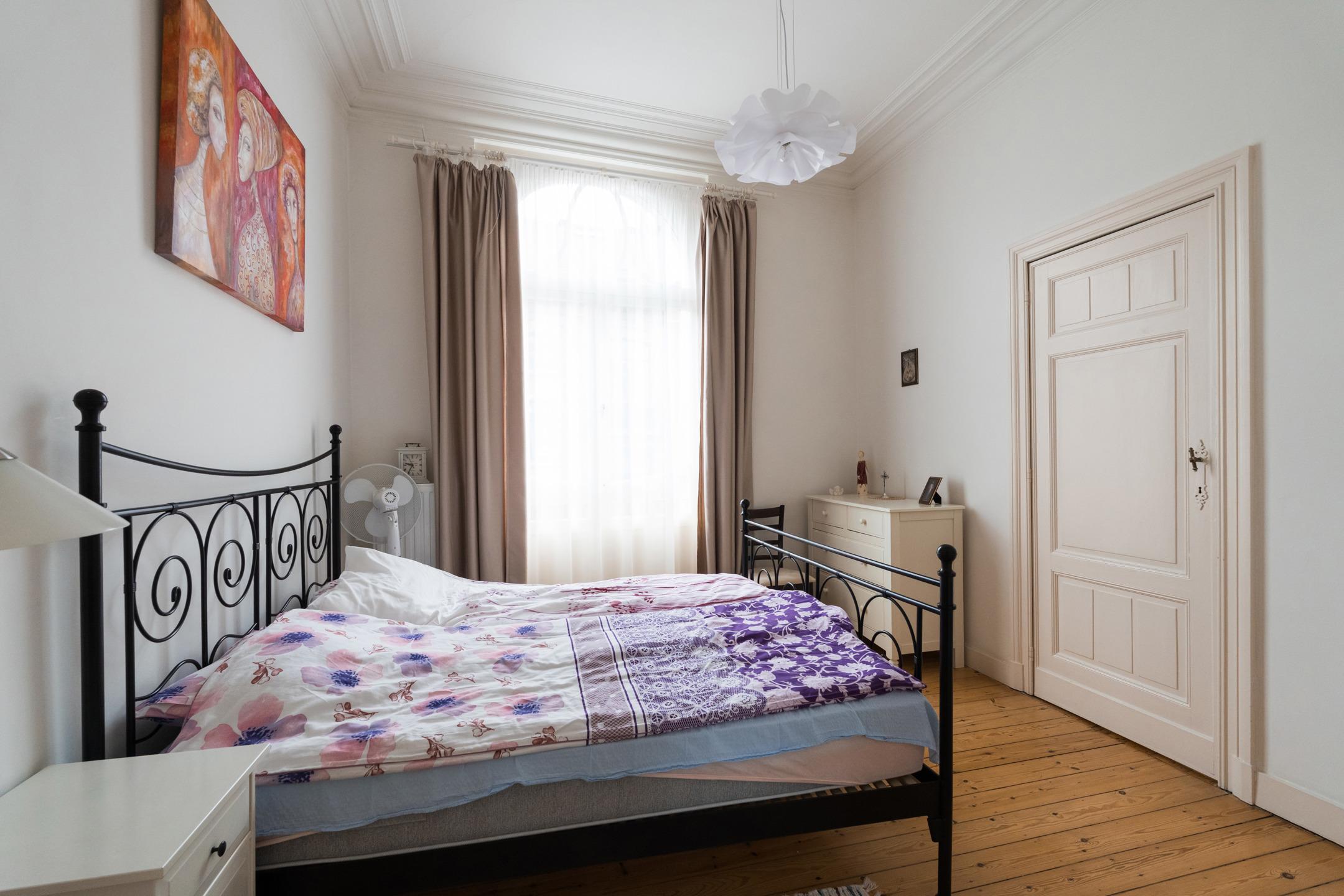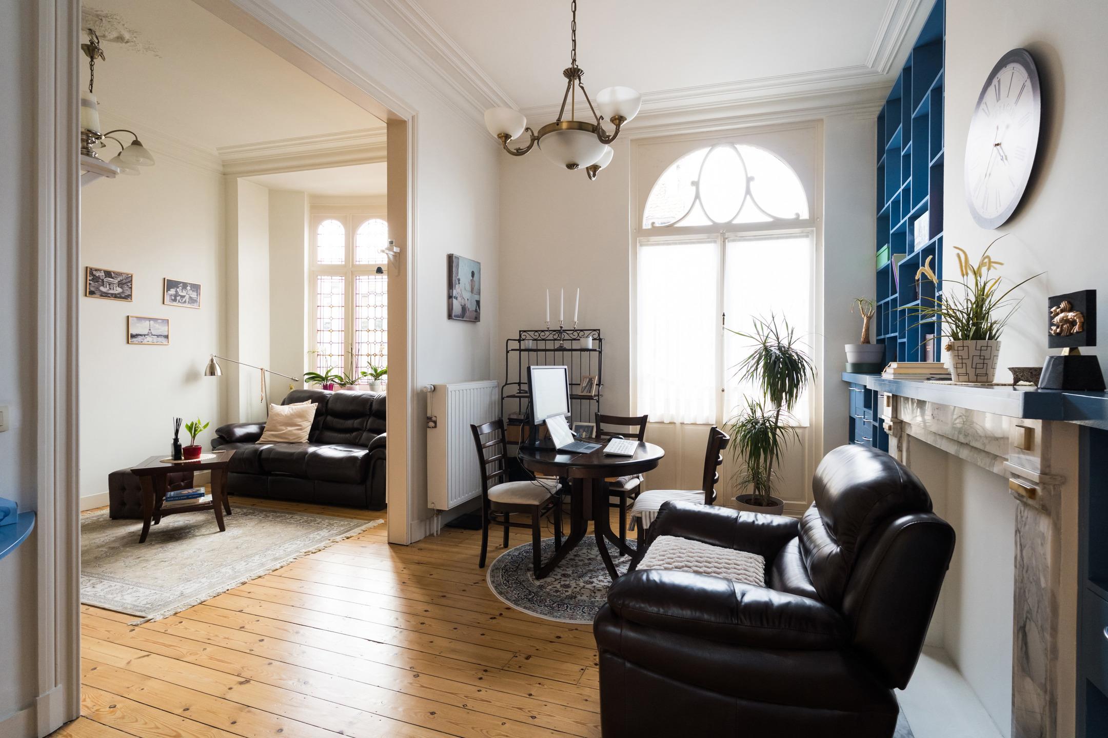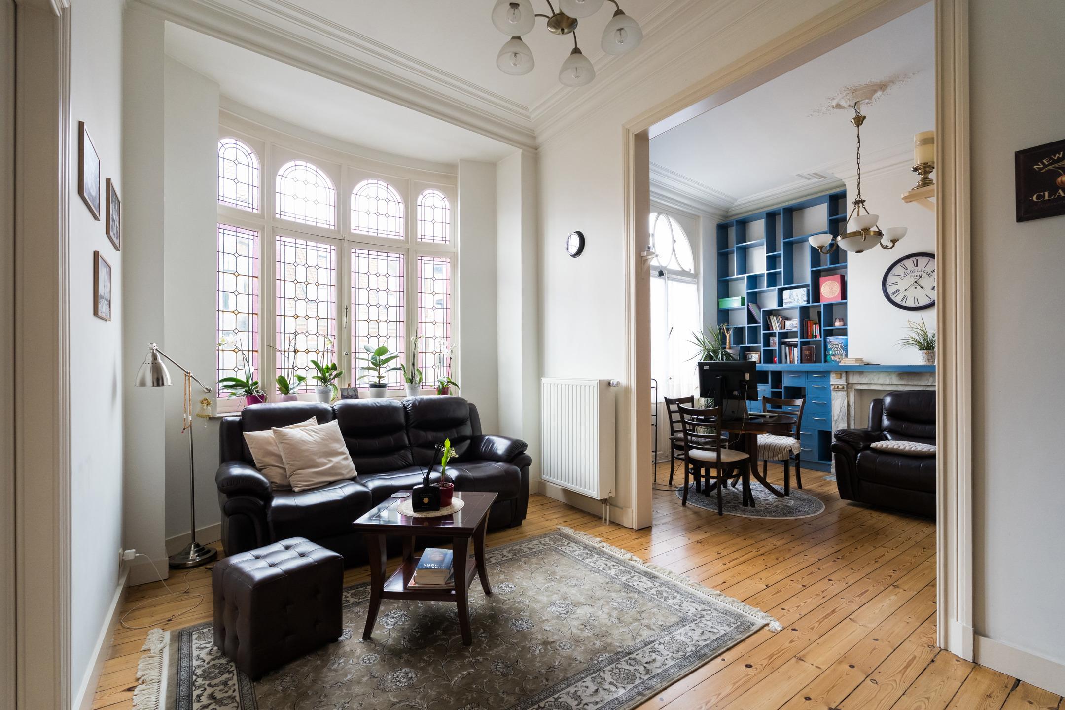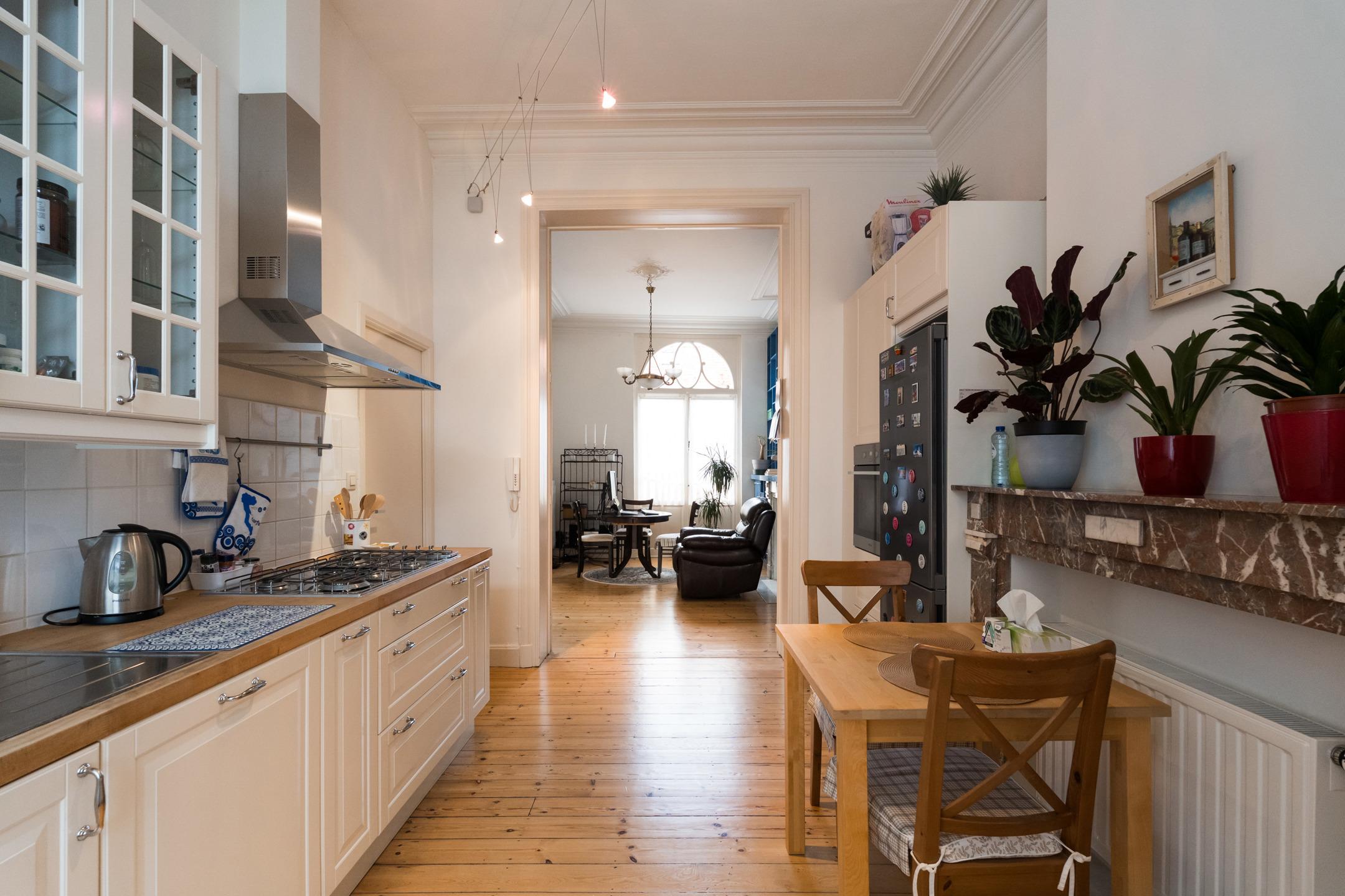 SOUS OPTION, sous réserve de signature du compromis. Inscrivez-vous sur www.latouretpetit.be pour recevoir nos biens en avant-première. Schaerbeek, entre le parc Josaphat et le quartier Plasky, à proximité de nombreuses facilités, appartement (1ch/1sdb/1bur) de ± 96 m² habitables + terrasse arrière de ± 19 m² orientée Sud-est. Il se compose comme suit : séjour et salle à manger de ± 31 m², cuisine équipée de ± 15 m² avec accès à la terrasse, chambre de ± 13 m², salle de bains avec douche dans le bain, dressing, buanderie, toilette séparée, bureau de ± 18 m² avec salle d'eau à l'entresol, cave privative de ± 9 m² en sous-sol. Egalement : PEB E (266 kWh/m²/an), châssis en bois simple vitrage d'époque, belle hauteur sous plafond et beaucoup de charme, RU sur demande, quotité 16/100, pas d'ascenseur, pas de syndic, peu de charges communes, actuellement loué 1.000 €/mois (loué depuis 2014 par la même locataire). Idéal comme investissement ou pour occupation personnelle. A visiter sans attendre !