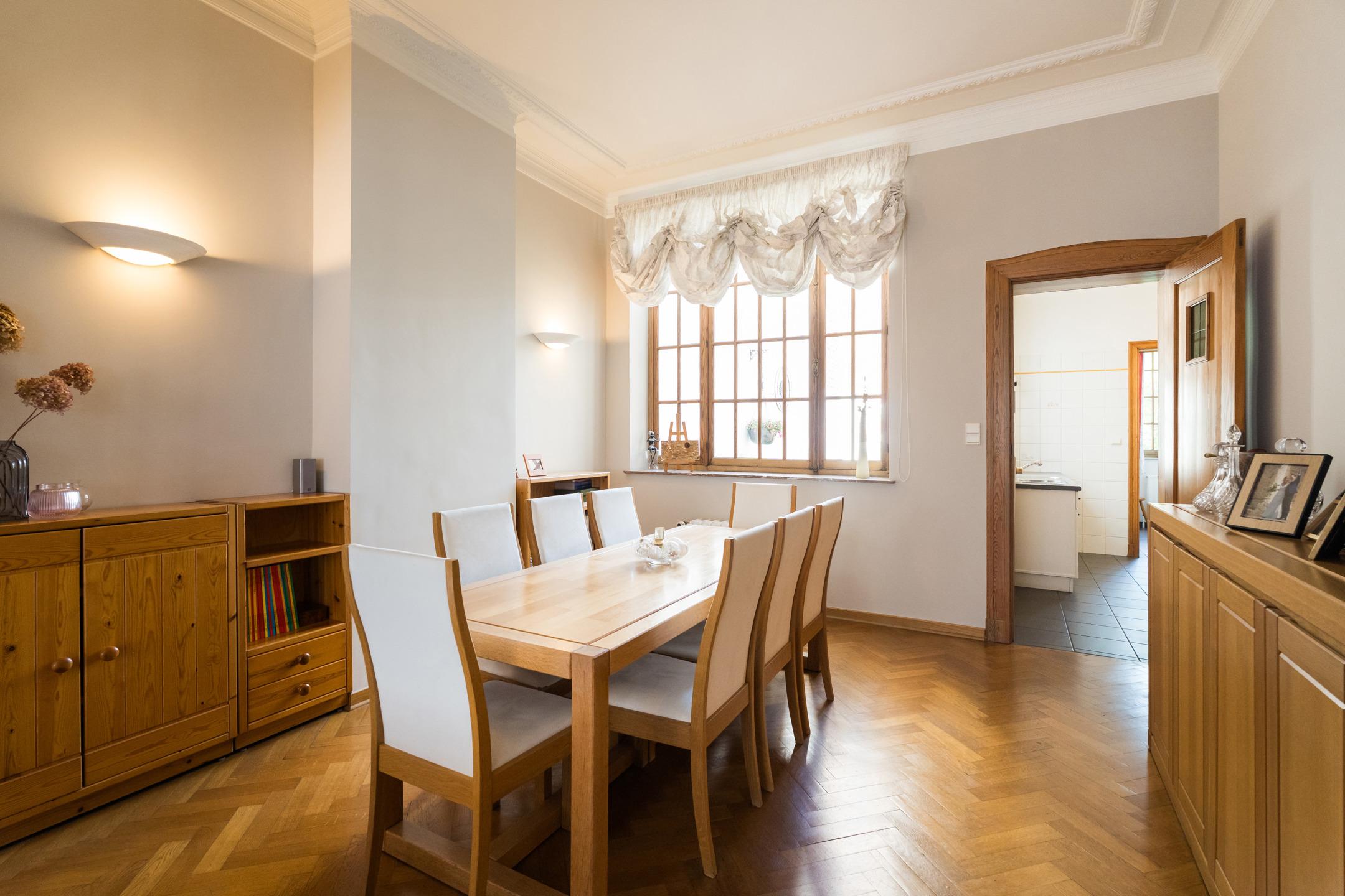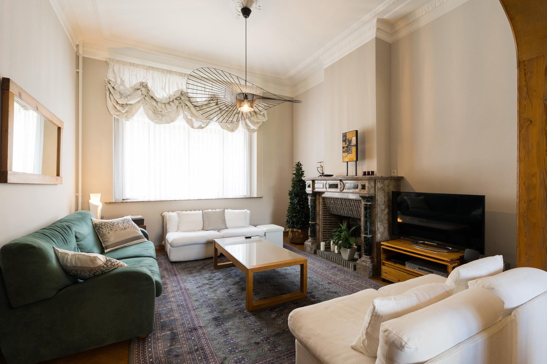 SCHAERBEEK, à deux pas du parc Josaphat et de la place Meiser, maison (4 ch/bur/2 sdb) de 327 m² construits, sise sur un terrain de +/- 2 ares 45 orienté nord-est. Elle se compose au RDC : d’un magnifique hall d’entrée de 20 m², un beau séjour de 33,5 m² avec de jolies moulures, parquet d'origine une belle hauteur sous plafond, une cuisine super-équipée de 13 m² et un coin déjeuner de 7 m² avec débarras et accès au jardin. Au 1er étage, un grand dégagement d’escalier dessert une toilette invités avec lave-mains, 3 chambres de 17,5 m² – 17 m² – 17 m² et une salle de bains de 7 m² (baignoire, douche, WC, double lavabo). Au 2e étage, une grande chambre de 26 m² avec lavabo, une salle de douche, un débarras et un grenier de 15 m² aménagé en bureau donnant accès au grenier de rangement aménageable de 22 m². Au sous-sol, une ancienne cave à charbon, une cave de rangement, une cave à vin, un local technique et une buanderie/chaufferie. Construction de 1923. PEB F (335 kWh/m²/an). L'électricité sera remise aux normes par la propriétaire. Chaudière au gaz à condensation BUDERUS de 2012 (corps de chauffe et brûleur remplacés en 2024 et 2025). RU disponibles. À découvrir sans plus attendre chez L&P !