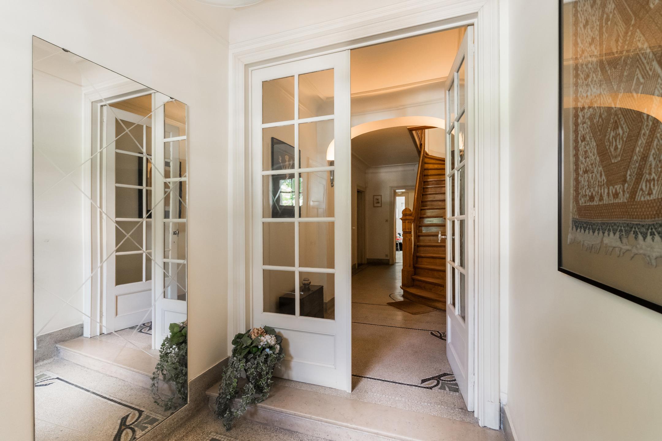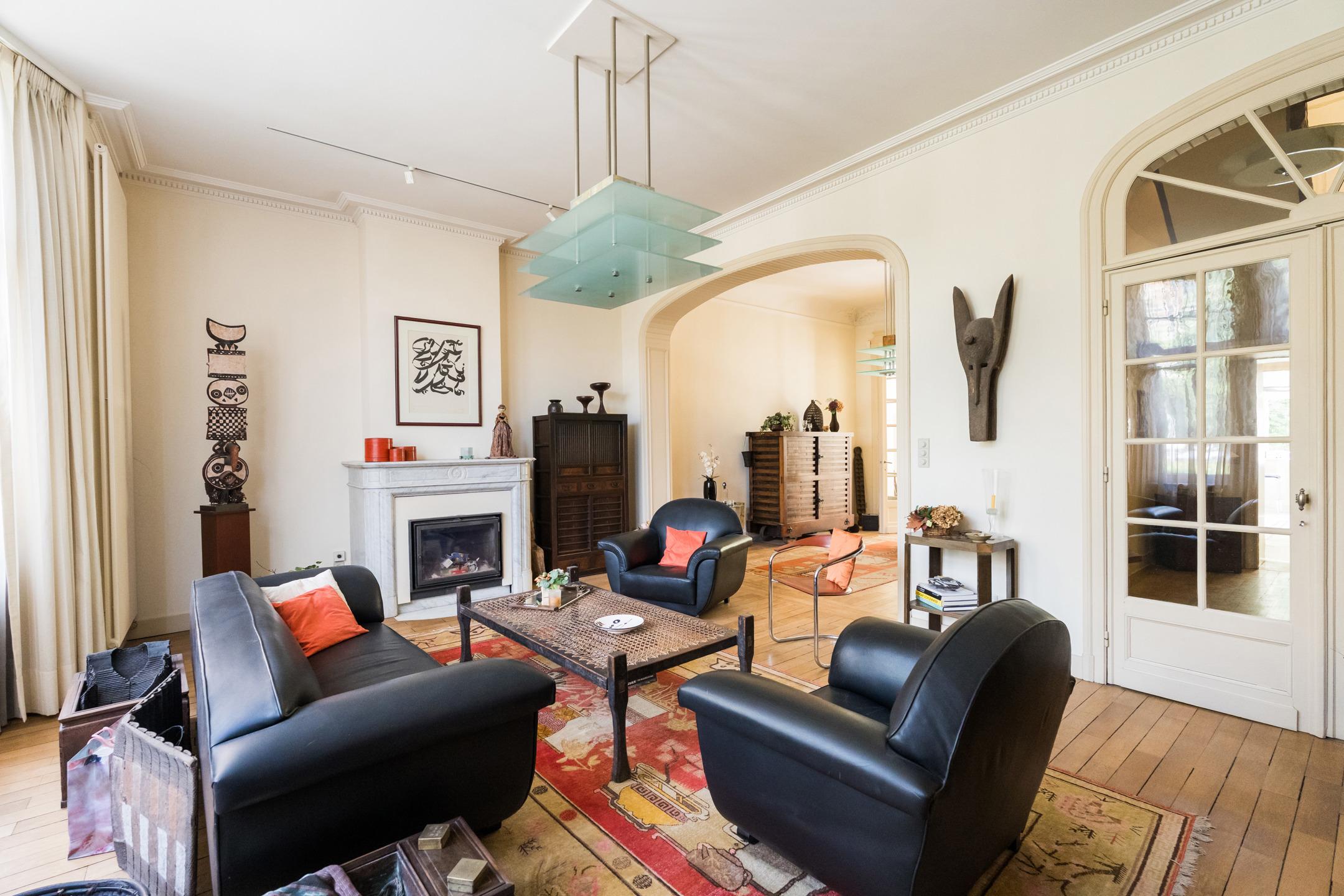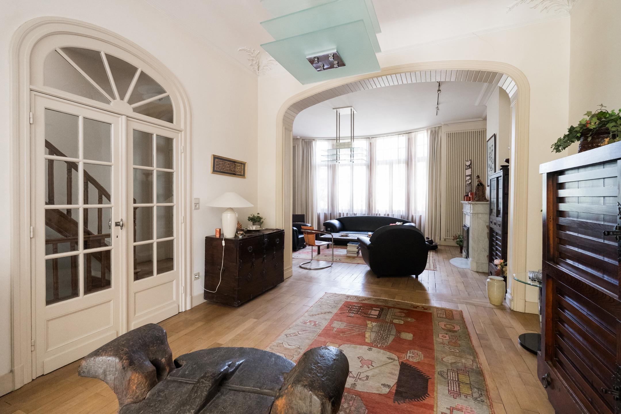 -------SOUS-OPTION--------ETTERBEEK, idéalement située, à proximité immédiate du Cinquantenaire et des transports, Splendide MAISON DE MAÎTRE (4-5ch/bur/2sdb) totalisant +/- 403m² construits, sise sur un terrain de +/-2ares orienté SO. Celle-ci se compose comme suit : au rez-de-chaussée (105m²): hall d’entrée avec espace vestiaire et WC, caves de rangement, grand garage 1 voiture avec porte électrique, grand bureau (pouvant être aménagé en espace séparé pour une au pair/aide à domicile/étudiant etc. ) avec accès à la terrasse et au jardin, buanderie avec accès extérieur. Au 1er étage (98m²): dégagement d'escalier, toilette séparée, splendide salon avec cheminée fonctionnelle et bow window, salle à manger/pièce du milieu, seconde salle à manger avec accès à la très belle terrasse arrière et grande cuisine. Au 2ème étage (95m²): dégagement d'escalier, chambre 1 avec bow window (27m²), chambre 2 avec cheminée décorative et accès au balcon (28m²), salle de bains attenante (baignoire, double lavabo, toilette). Au 3ème étage (65m²): chambre 3 (15m²), salle de douche (lavabo, douche et wc), chambre 4 (14,5m²), chambre 5 (10m²). Au sous-sol: cave (21m²). Maison classée à l'inventaire du patrimoine. PEB : "E" : 224 kwh/m²/an. A découvrir en exclusivité chez Latour & Petit!