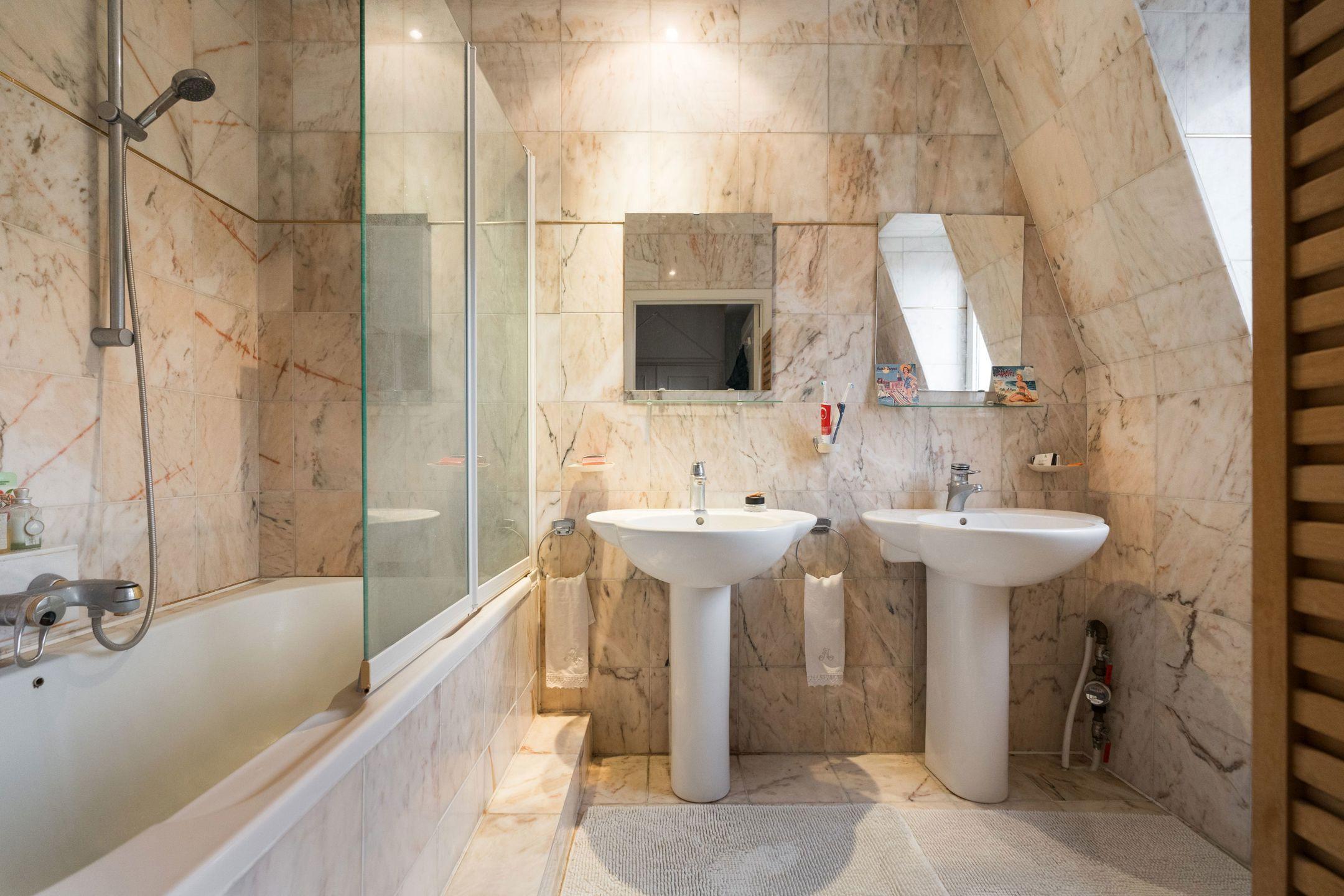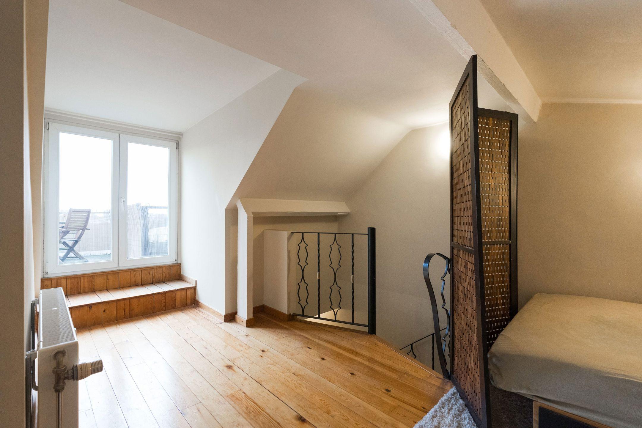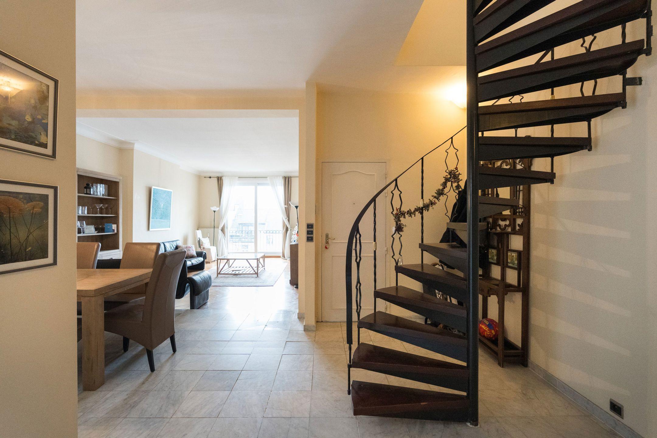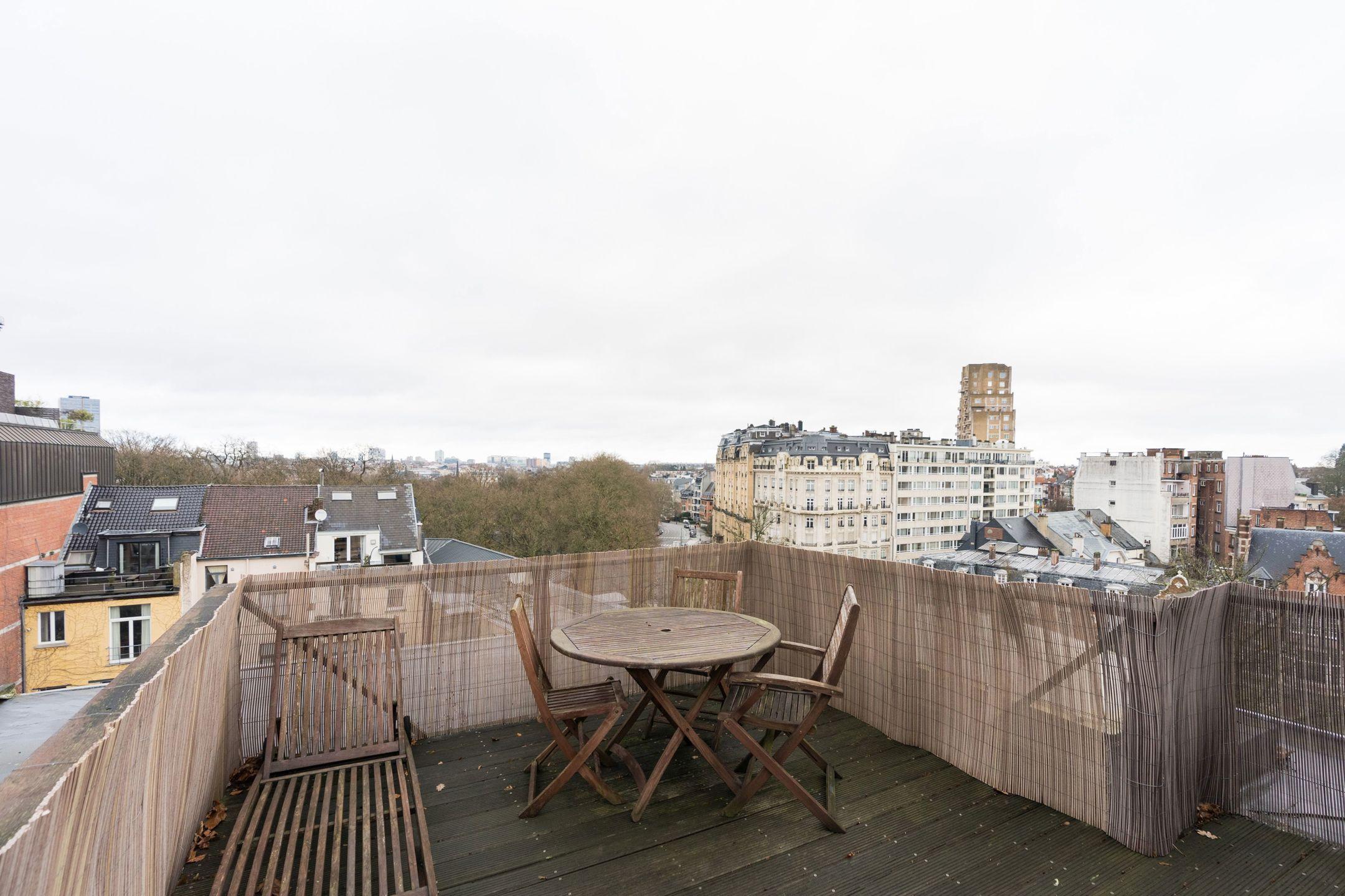 BRUXELLES (Quartier Louise), en bordure du Bois de la Cambre, au 4ème et dernier étage d'un superbe immeuble style Beaux-Arts de l'architecte Pierre De Groef, magnifique APPARTEMENT DUPLEX PENTHOUSE avec ascenseur (2ch/2sdb)de +- 105m² habitables avec TERRASSE de +_ 15m². Il est composé comme suit : hall d'entrée avec vestiaire et toilette invités, une cuisine séparée équipée, un spacieux séjour donnant accès à une terrasse, une chambre avec sa salle de bains adjacente, un escalier vers le deuxième niveau, un bureau (actuellement utilisé comme chambre) donnant sur une superbe terrasse offrant une jolie vue sur la ville et le bois de la Cambre, une salle de douche avec emplacement buanderie, un débarras et placards de rangement. Cave à l'entresol et local vélo au sous-sol. PEB G. RU 165/2024. Un bien rare à découvrir en exclusivité chez Latour et Petit!