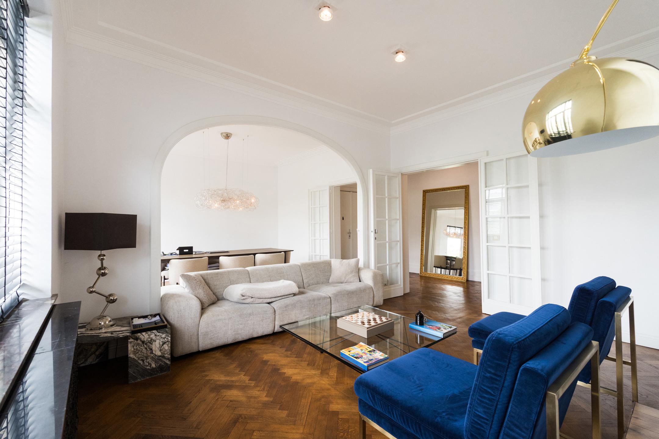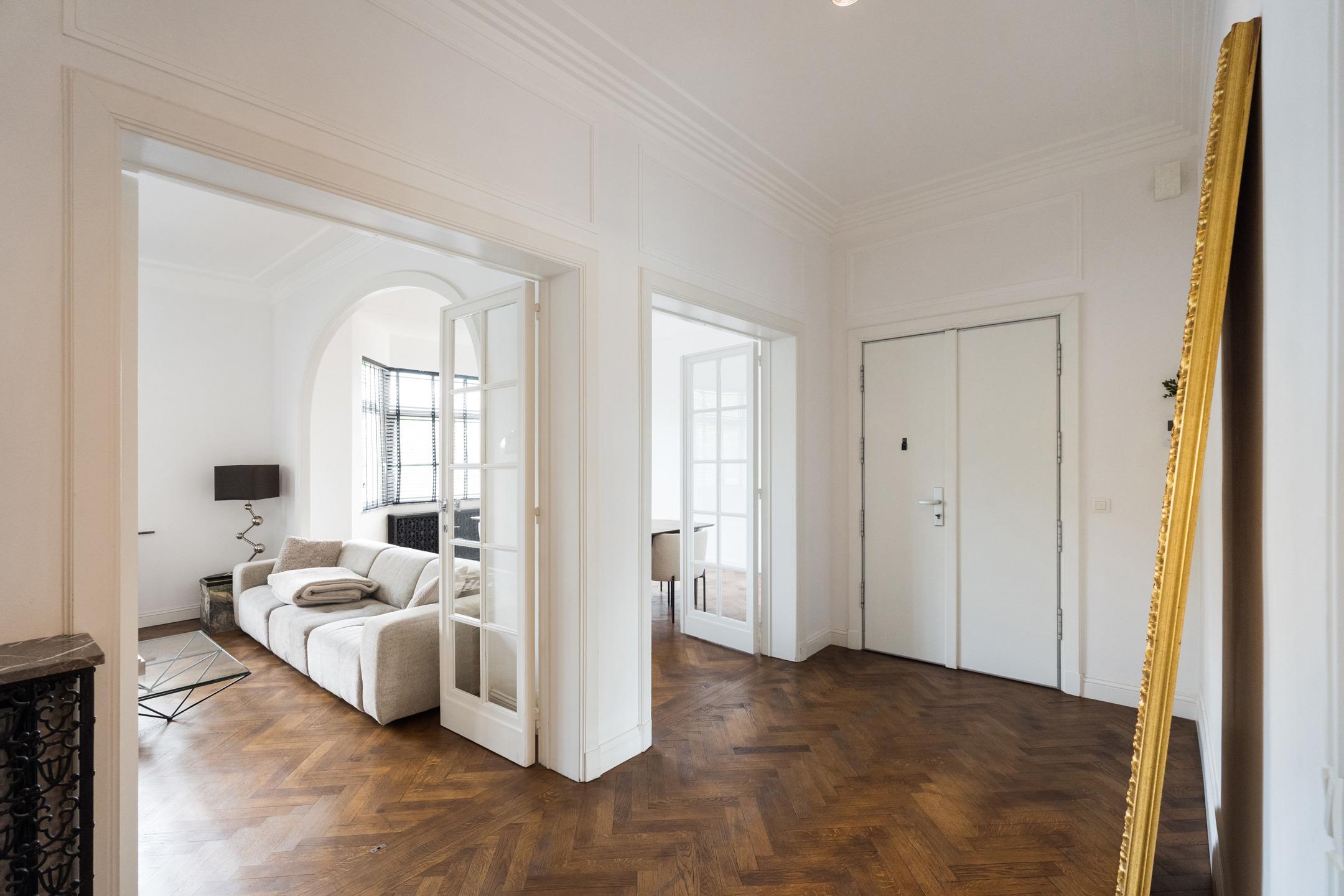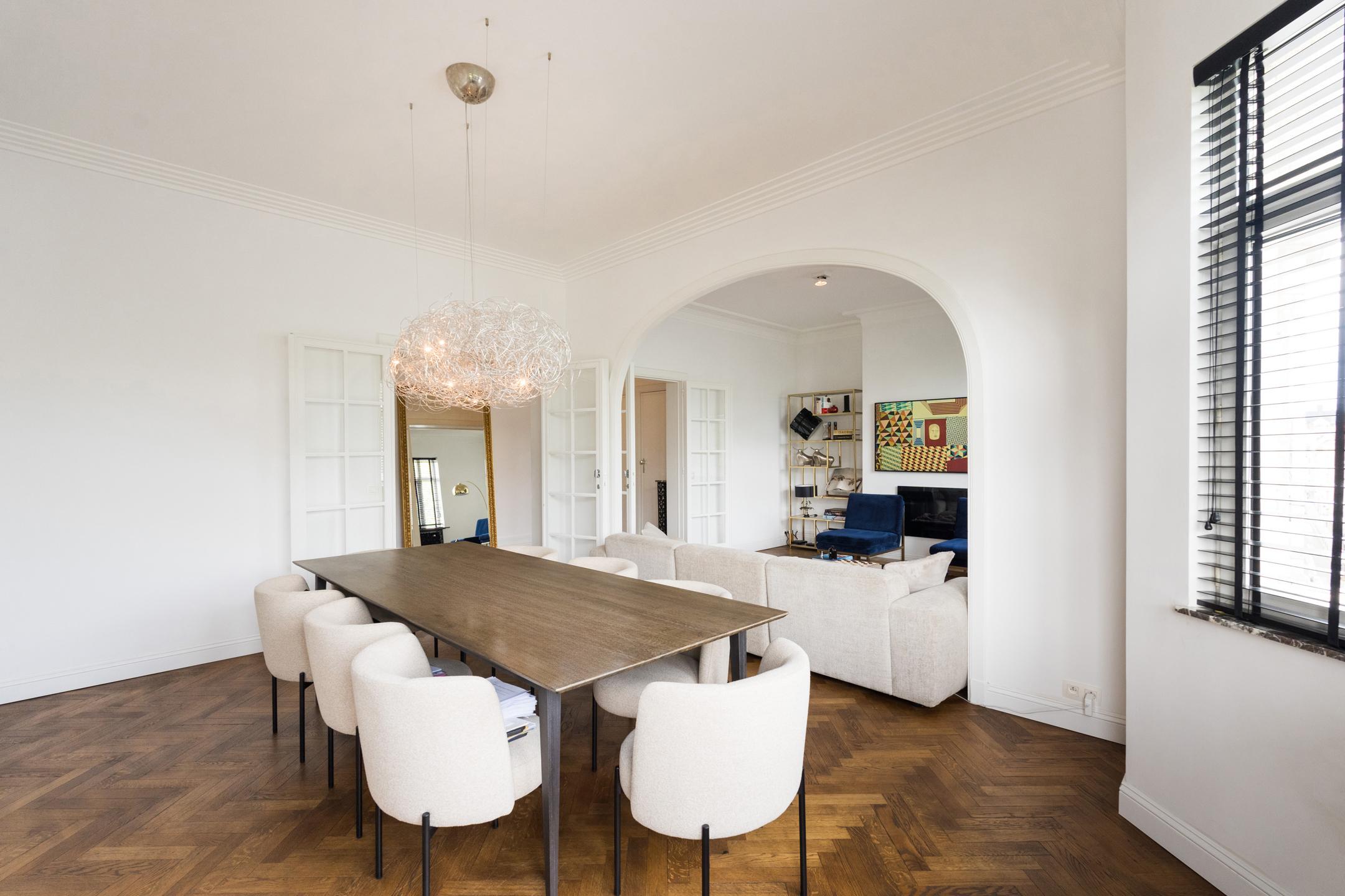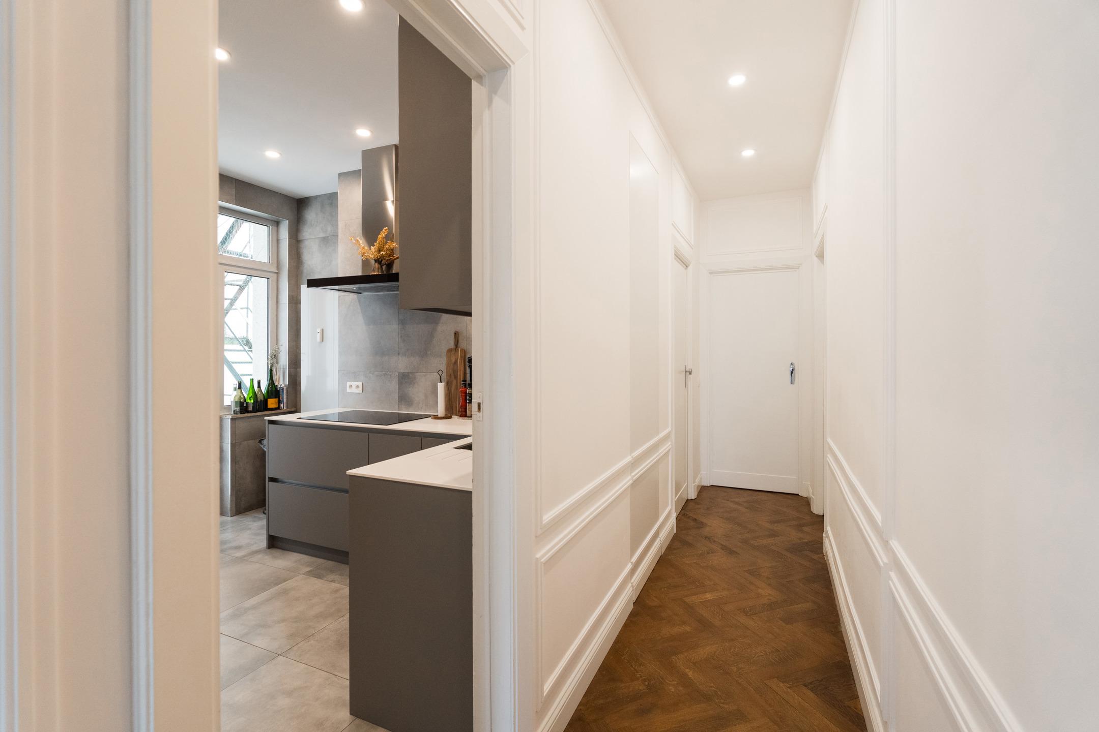 BRUXELLES-Ville, quartier Louise, superbe APPARTEMENT (2Ch/1Sdb) de ±108 m² au 5ème étage d’un magnifique immeuble Art Déco de standing de 1936. L'appartement se compose comme suit : hall d’entrée avec placard de vestiaire et WC invités, lumineuses réceptions de ±55 m² comprenant le salon et la salle à manger et offrant une vue en perspective sans vis-à-vis, cuisine séparé super-équipée avec accès au balcon, hall de nuit avec placards de rangement desservant deux chambres de ±20 m² dont une avec dressing, salle de bains (lavabo, baignoire, douche, WC). Une chambre de bonne et une cave complètent le bien. Châssis PVC double-vitrage. Porte blindée. Vidéophone. Chaudière collective au mazout. PEB G. A visiter sans tarder avec L&P!