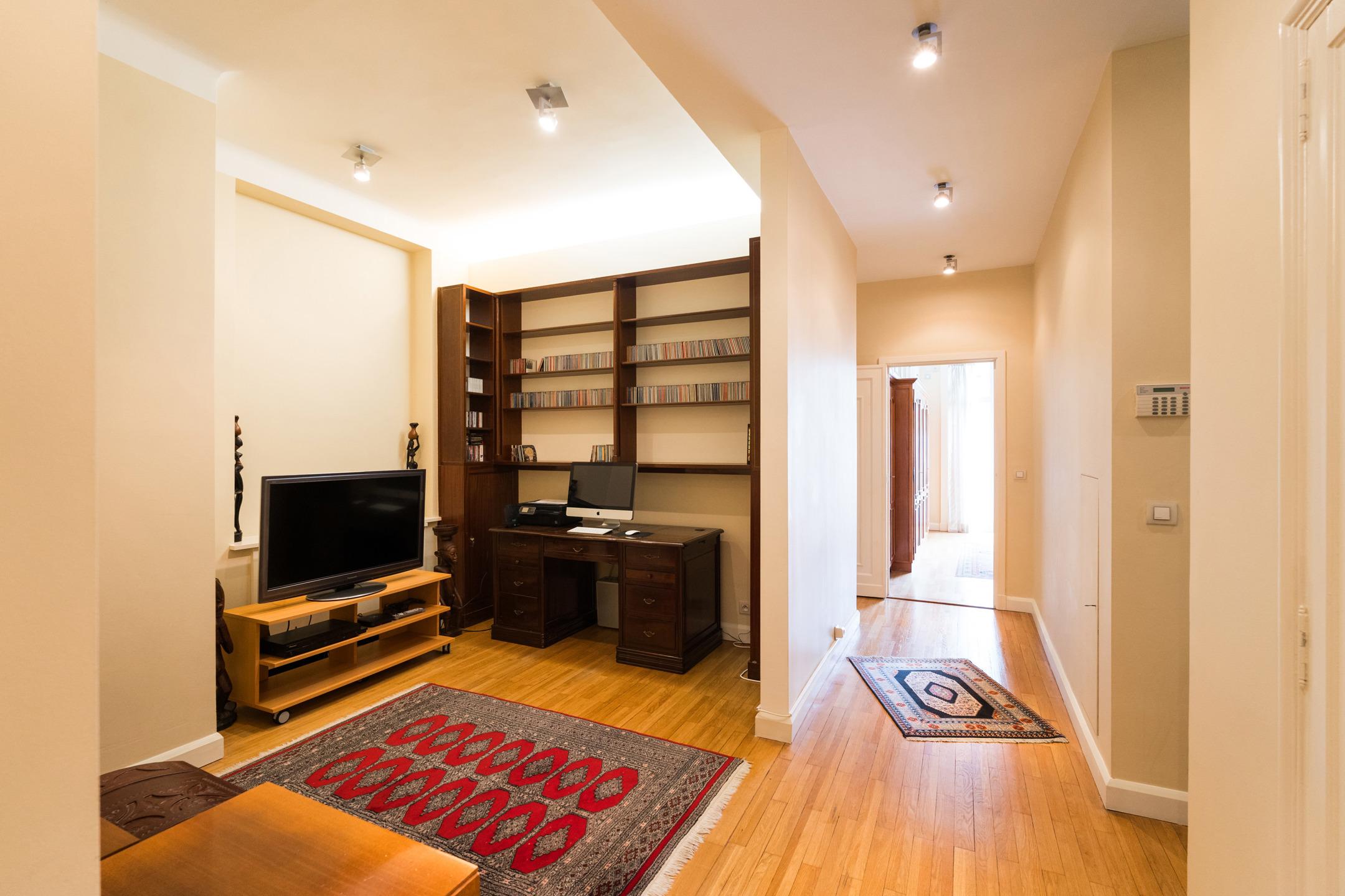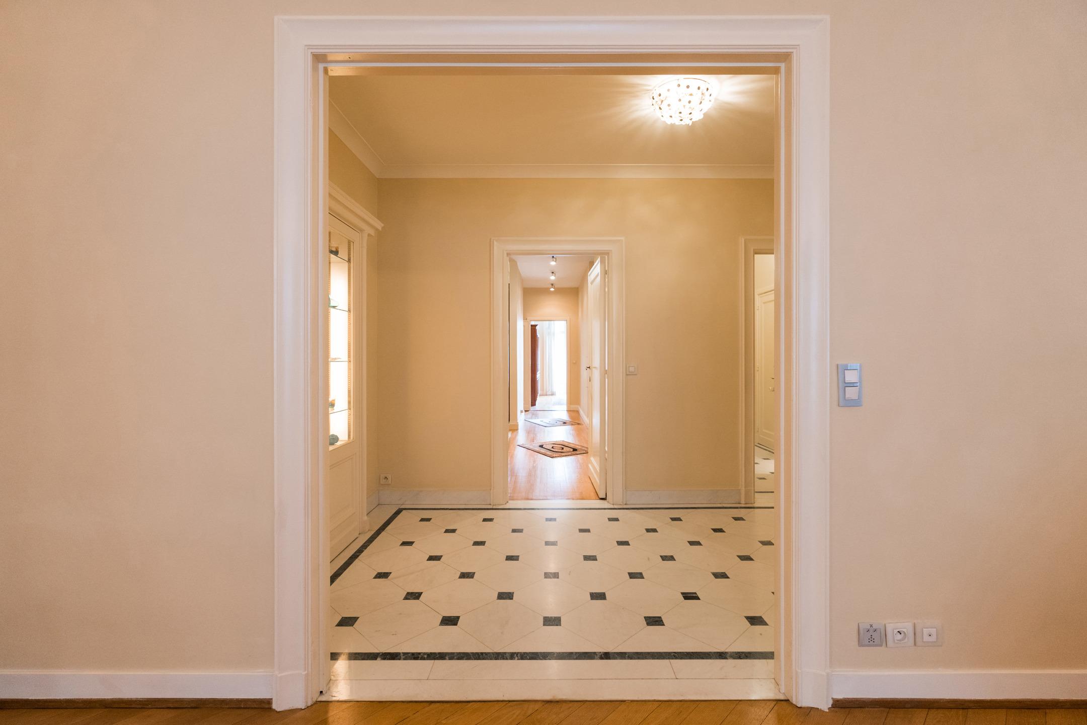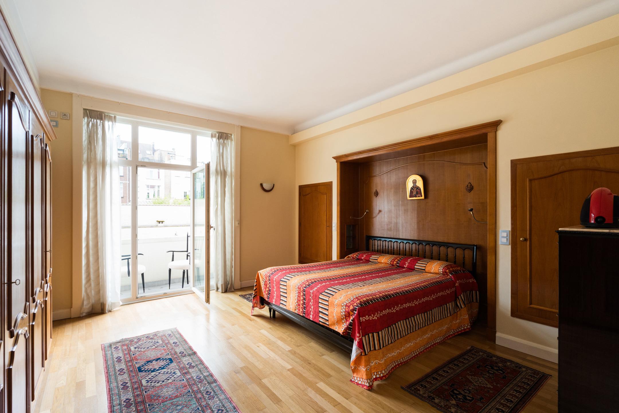 Bruxelles, entre la Place du Châtelain et l'avenue Louise, au 1er étage d’un bel immeuble de standing Art Déco (1936), magnifique APPARTEMENT (3ch - 2sdb) de ±235m² avec petite TERRASSE exposée Sud/Est, PARKING, GARAGE et cave. Il se compose comme suit : Spacieux hall d’entrée, à droite en entrant, vestiaire et toilettes invités, à gauche, vastes réceptions ±80m² sur parquet d'origine, comprenant salon avec feu ouvert et salle à manger donnant sur l'arrière cuisine et ensuite sur une cuisine semi-professionnelle exceptionnellement équipée (cave à vins électrique, chauffe plats, cuisinière et hotte Viking, îlot central...) buanderie et accès à l'ascenseur de service; grand espace bureau , hall de nuit avec nombreux placards intégrés, chambre 1 ±22m², avec placards intégrés et accès à une petite terrasse arrière, salle de bains (double lavabo, bains et wc), chambre 2 ±20m², avec bibliothèque et placards avec salle de douche attenante, dressing ou bureau (possibilité 3ème chambre). Au rez-de-chaussée, 1 chambre de service, au sous-sol, 1 cave. Dans la cour arrière, parking extérieur commun et garage box fermé en supplément à 45.000€. Double système d’alarme, détecteur de fumée, volets électriques, double vitrage PVC 2010. Jardin commun à l’arrière. Concierge . PEB D. Charges communes ±450€ (chauffage privatif, eau chaude et froide, concierge, syndic, entretien jardin et communs, assurance, ...). Un beau bien dans un quartier des plus recherchés à découvrir en exclusivité chez Latour et Petit!