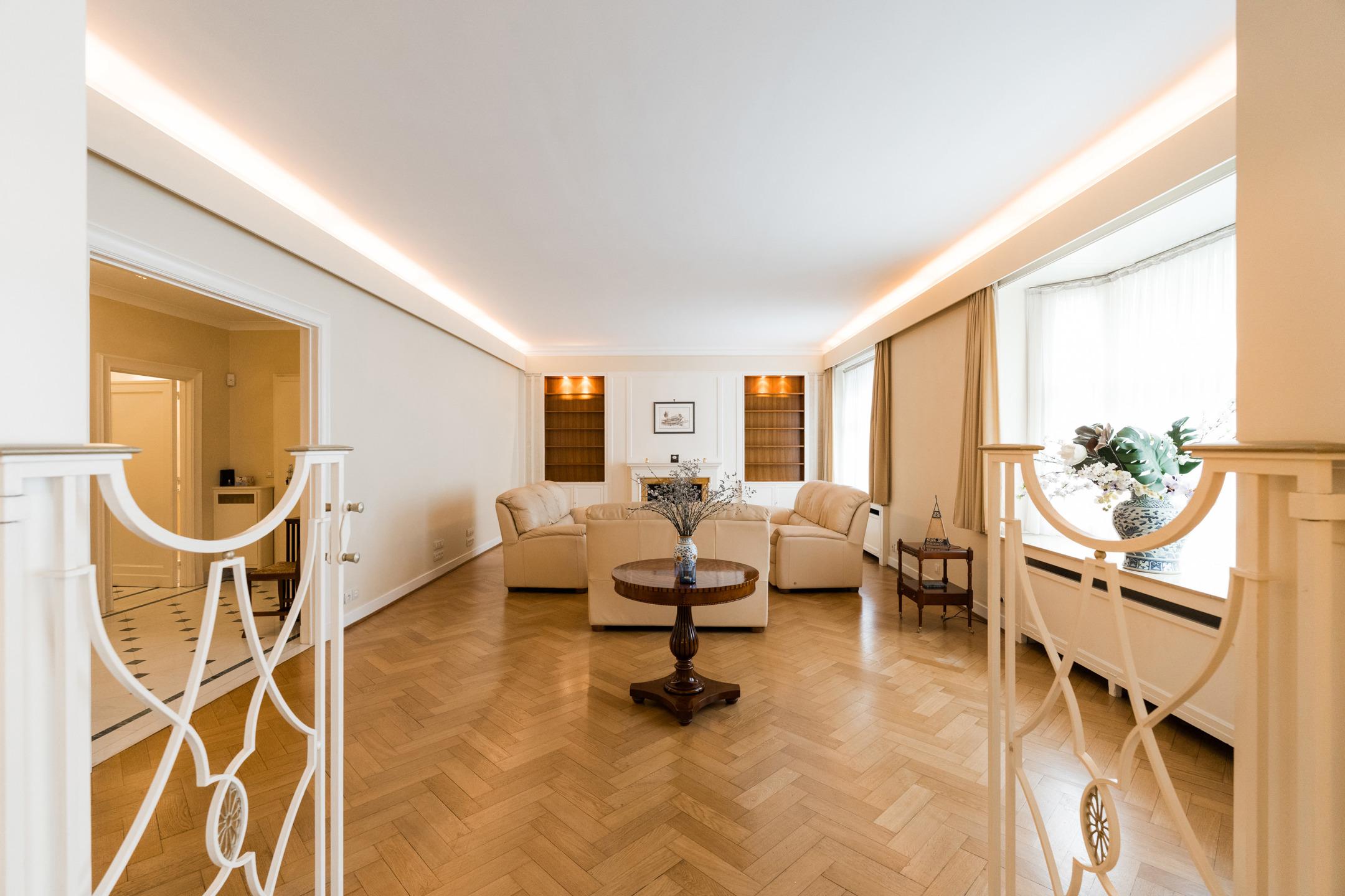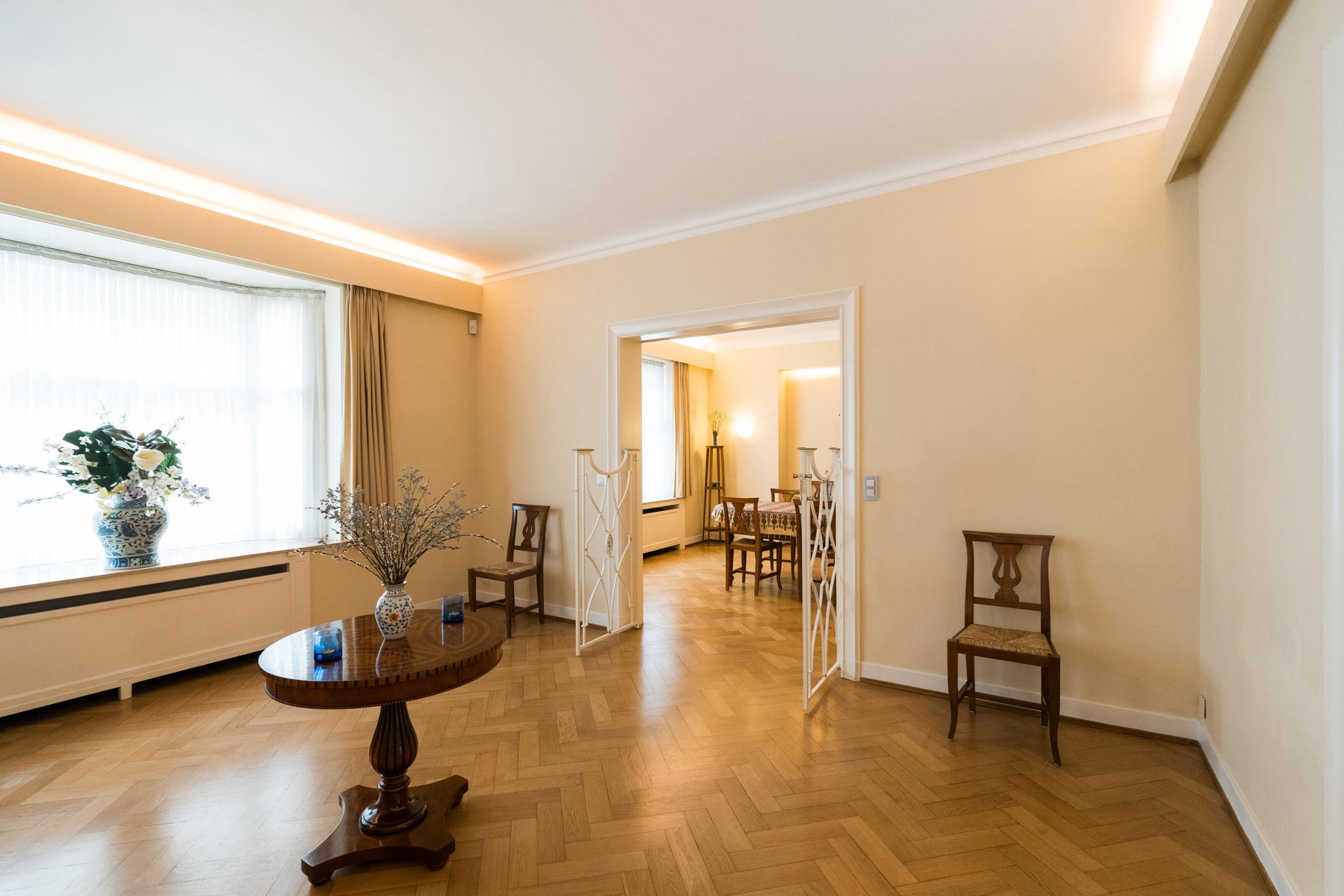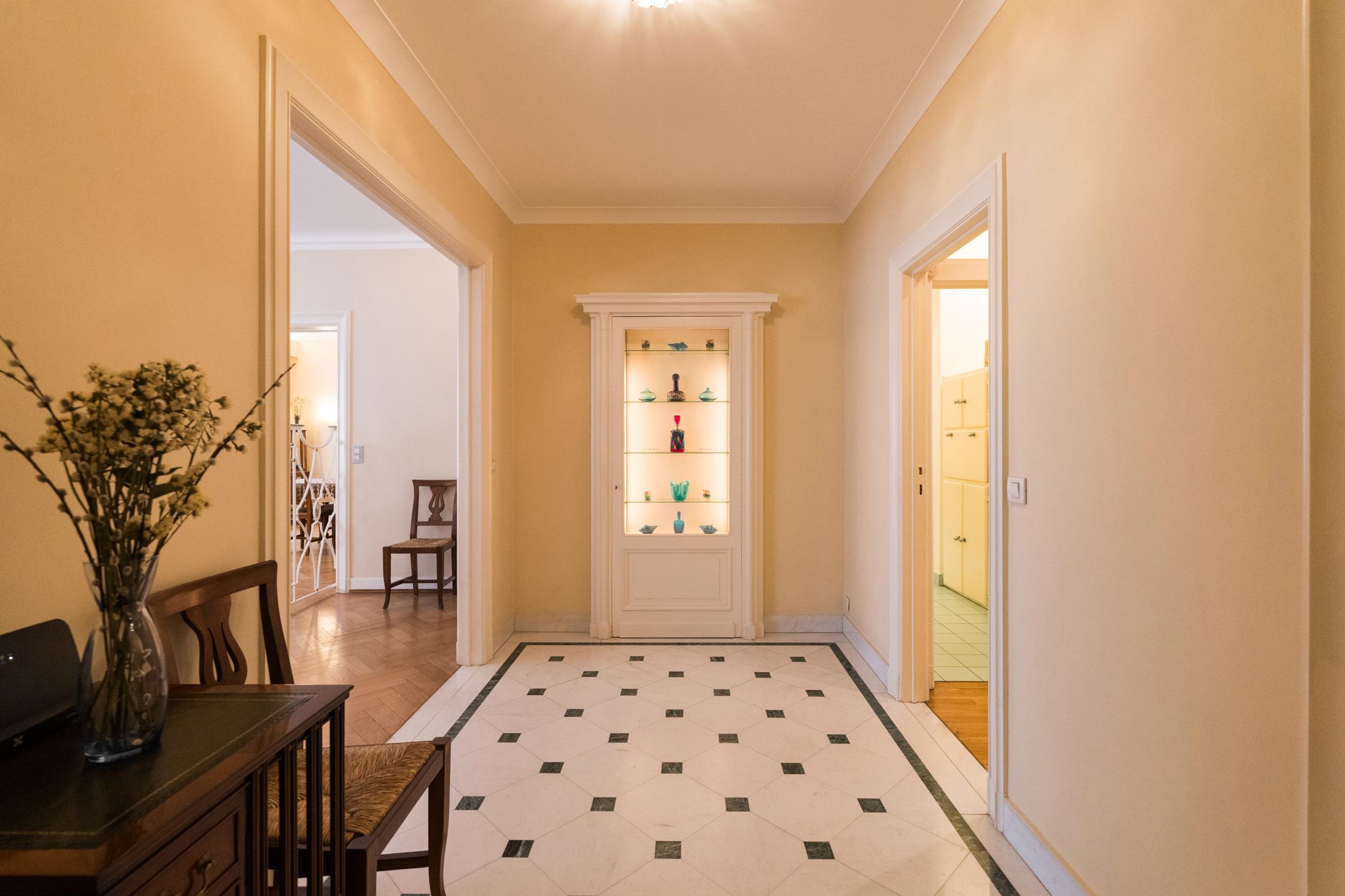 Bruxelles, entre la Place du Châtelain et l'avenue Louise, au 1er étage d’un bel immeuble de standing Art Déco (1936), magnifique APPARTEMENT (3ch - 2sdb) de ±235m² avec petite TERRASSE exposée Sud/Est, PARKING, GARAGE et cave. Il se compose comme suit : Spacieux hall d’entrée, à droite en entrant, vestiaire et toilettes invités, à gauche, vastes réceptions ±80m² sur parquet d'origine, comprenant salon avec feu ouvert et salle à manger donnant sur l'arrière cuisine et ensuite sur une cuisine semi-professionnelle exceptionnellement équipée (cave à vins électrique, chauffe plats, cuisinière et hotte Viking, îlot central...) buanderie et accès à l'ascenseur de service; grand espace bureau , hall de nuit avec nombreux placards intégrés, chambre 1 ±22m², avec placards intégrés et accès à une petite terrasse arrière, salle de bains (double lavabo, bains et wc), chambre 2 ±20m², avec bibliothèque et placards avec salle de douche attenante, dressing ou bureau (possibilité 3ème chambre). Au rez-de-chaussée, 1 chambre de service, au sous-sol, 1 cave. Dans la cour arrière, parking extérieur commun et garage box fermé en supplément à 45.000€. Double système d’alarme, détecteur de fumée, volets électriques, double vitrage PVC 2010. Jardin commun à l’arrière. Concierge . PEB D. Charges communes ±450€ (chauffage privatif, eau chaude et froide, concierge, syndic, entretien jardin et communs, assurance, ...). Un beau bien dans un quartier des plus recherchés à découvrir en exclusivité chez Latour et Petit!