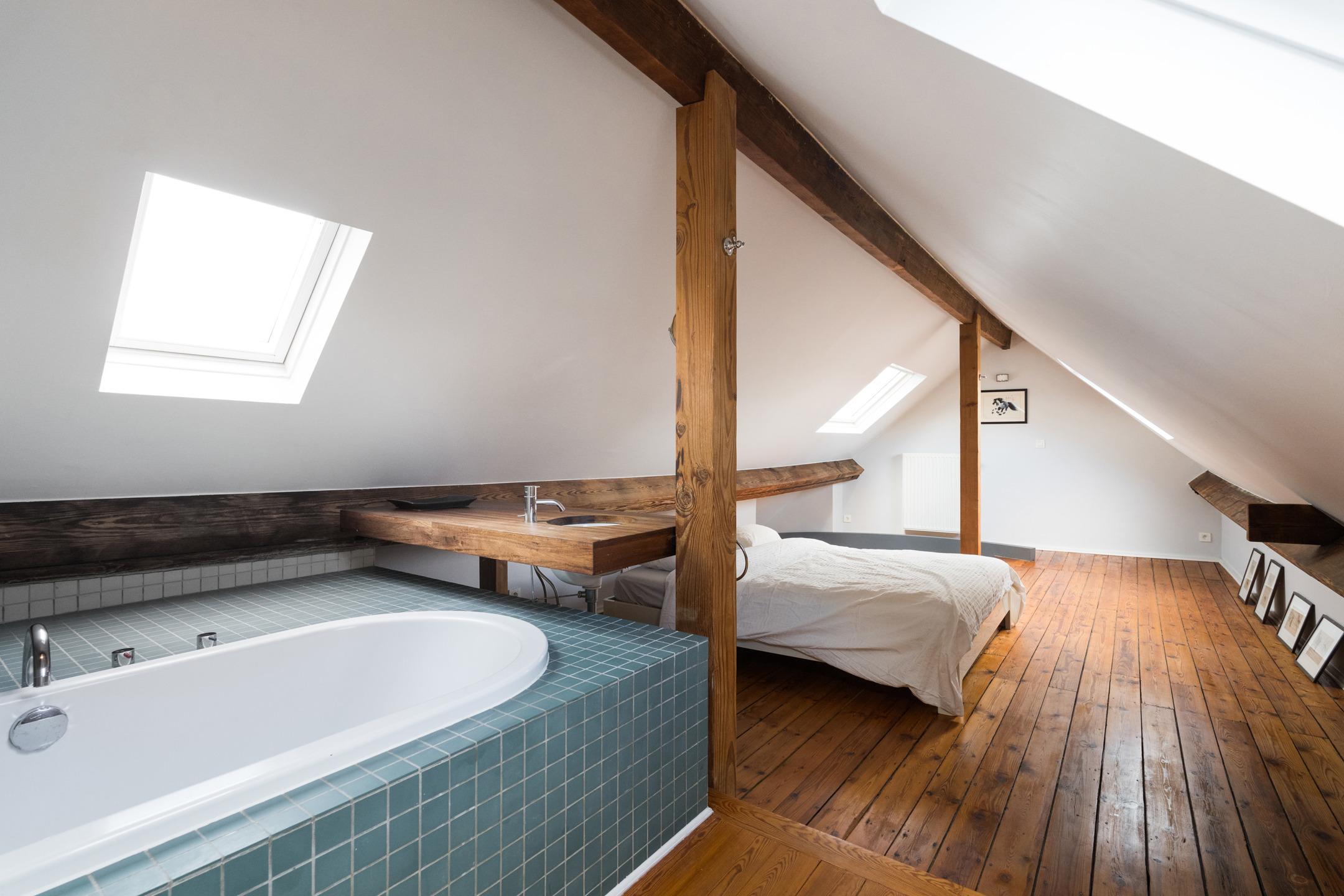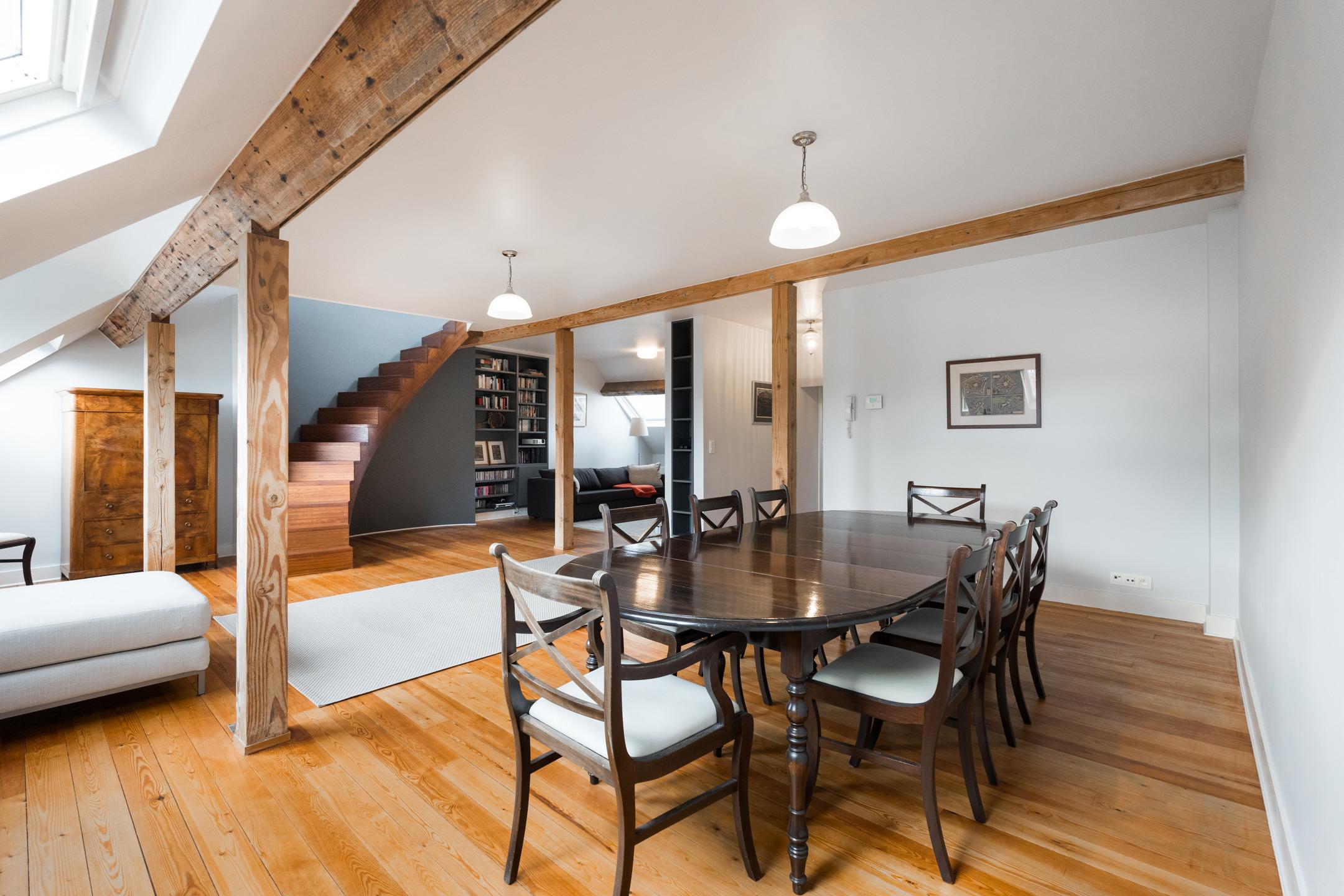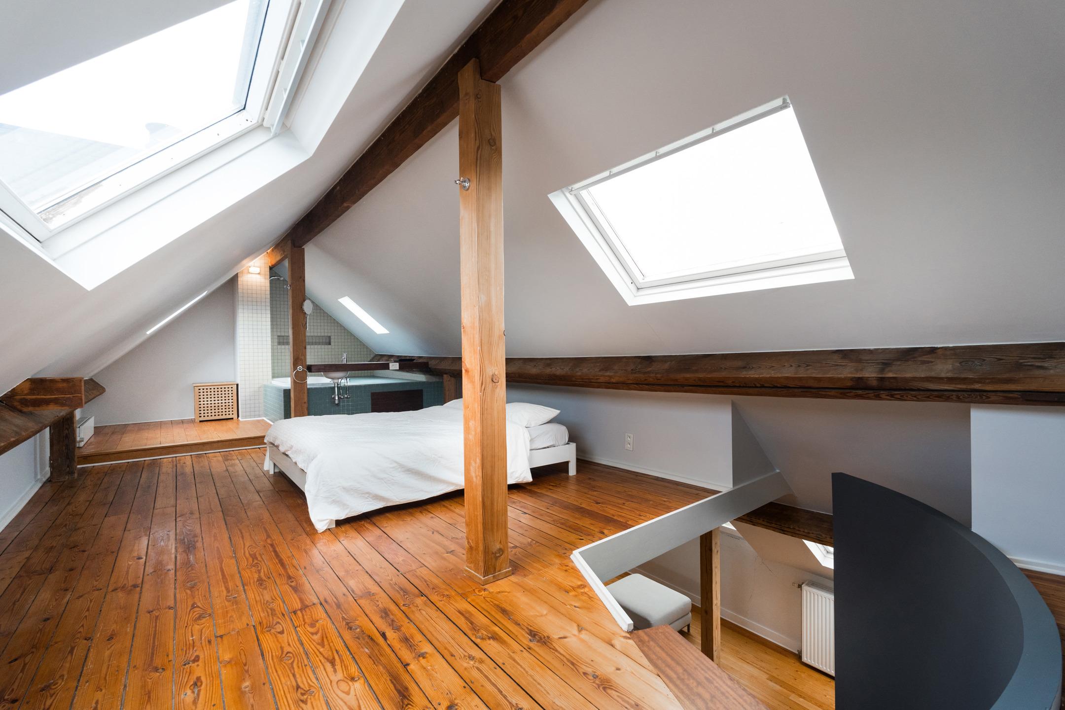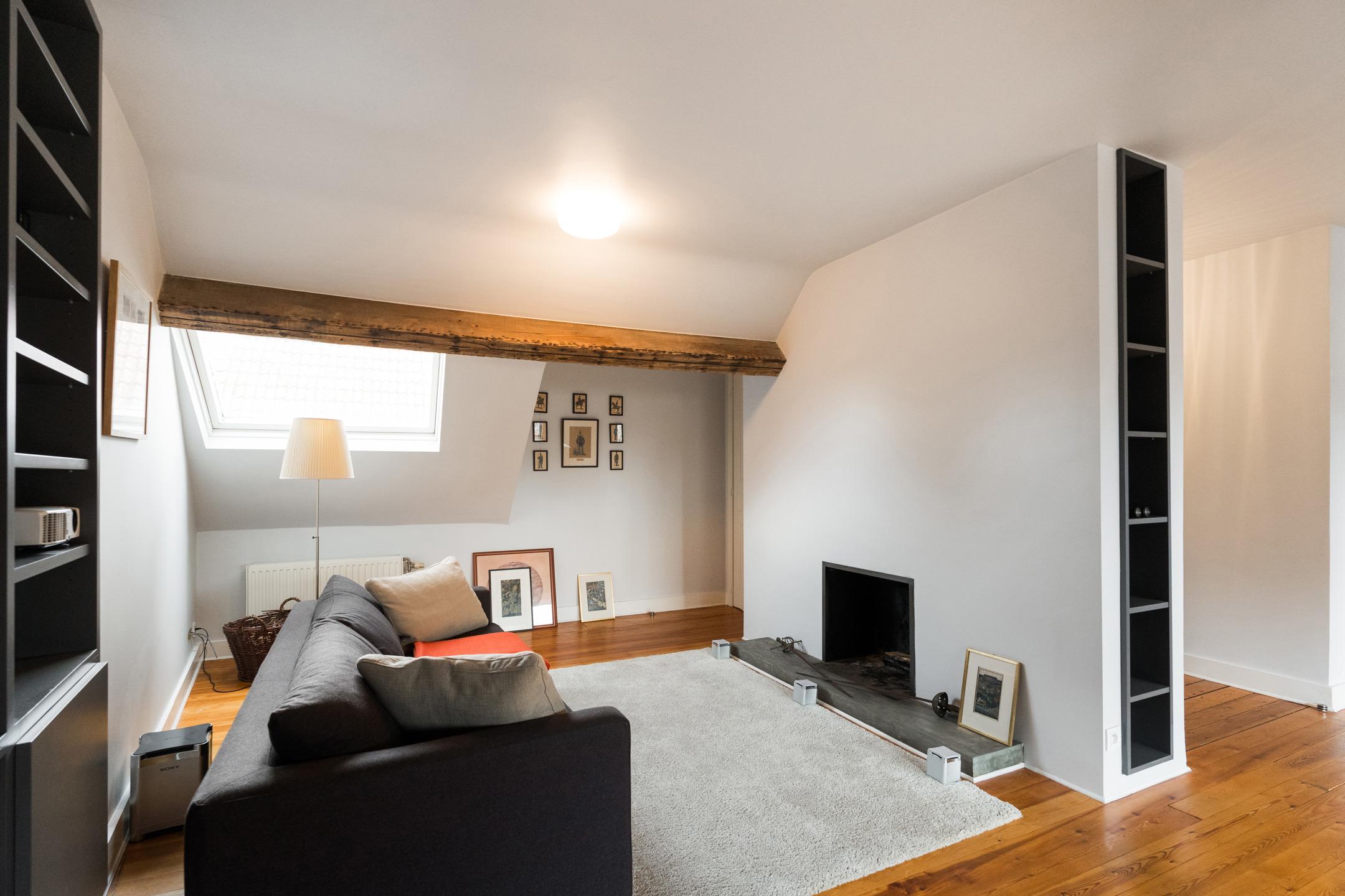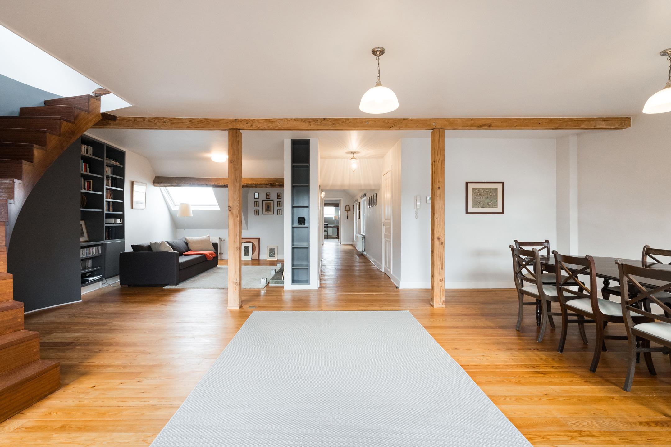 IXELLES, entre le Campus de l'ULB et les Etangs d'Ixelles, charmant APPARTEMENT DUPLEX de style loft (2Ch/2Sdb) totalisant ± 137m² (superficie PEB) avec TERRASSE et CAVES. Situé au 4ème et 5ème étage d’un immeuble de caractère sans ascenseur, il se compose comme suit : hall d’entrée avec espace vestiaire, lumineux séjour ouvert de ± 43m² composé du salon et de la salle à manger avec coin bibliothèque et FO de ± 15m², cuisine séparée super-équipée avec coin déjeuner, hall de nuit avec toilette et lave-mains desservant la première chambre de ± 33m² avec salle de bains attenante et espace buanderie. Agréable terrasse de ± 8m² idéalement exposée sans vis-à-vis et accessible par le hall. Magnifique escalier d’architecte menant aux combles aménagés en chambre parentale avec salle de bains. Aux rez-de-chaussée : 2 caves. PEB : G. Electricité conforme. Charges : ± 320€/mois (assurance, communs, prov. chauffage, eau, fonds de réserve). A découvrir en exclusivité chez L&P !