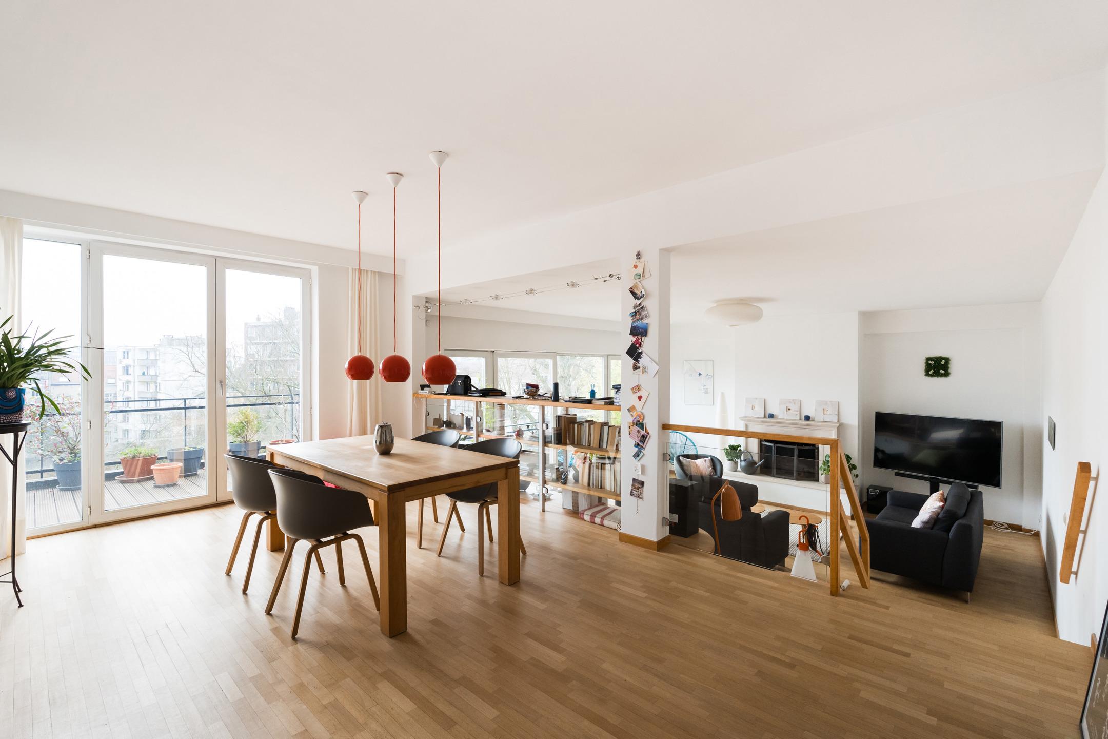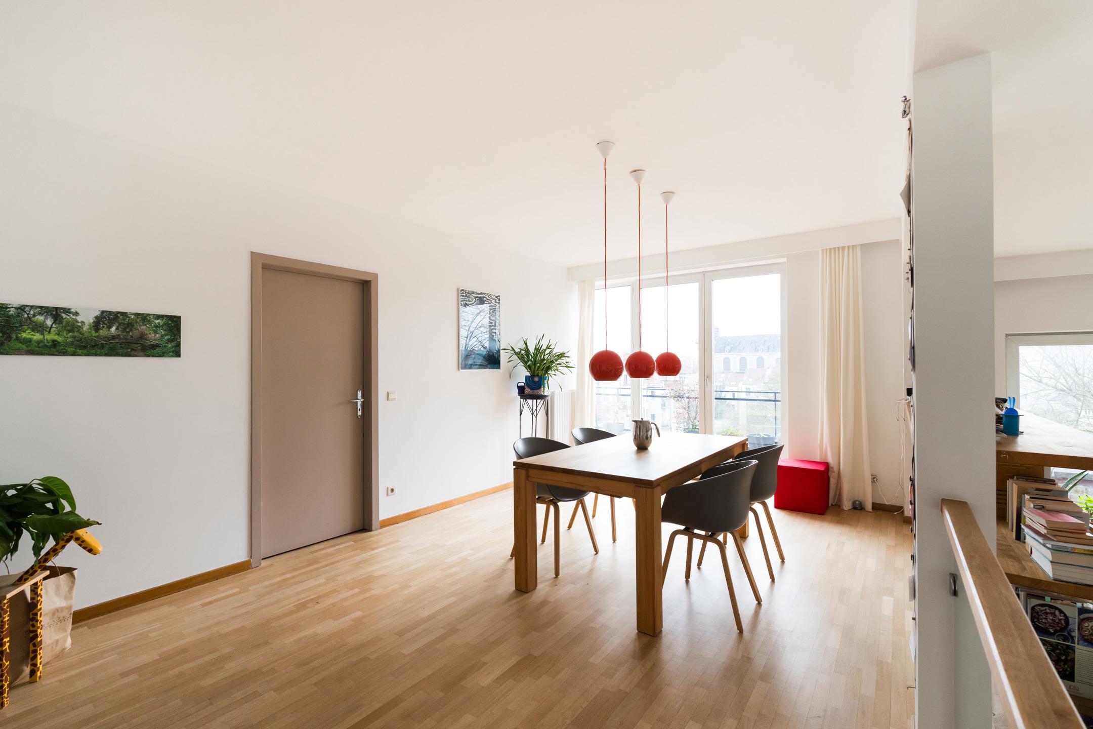 SAINT-GILLES, à la limite d’IXELLES, idéalement situé à proximité immédiate de la place du Châtelain et des commerces, APPARTEMENT DUPLEX d'exception (3ch/2sdb) de ± 164 m² avec 2 terrasses (14 m² et 6 m²) exposées Sud-Est et un emplacement de Parking (35.000 €). Situé aux 4e et 5e étages, le bien se compose d’un hall d’entrée avec vestiaire et WC, d’un vaste séjour agrémenté d’un feu ouvert, s’ouvrant sur une terrasse ensoleillée offrant une vue dégagée sur un grand jardin sans vis-à-vis. La salle à manger donne accès à une seconde terrasse de ± 14 m², également sans vis-à-vis. La cuisine, entièrement équipée, est complétée par un espace de rangement. À l’étage, trois chambres spacieuses de ± 24, 13 et 11 m², dont deux côté jardin avec placards intégrés, une salle de bains, une salle de douche et une seconde toilette. Une buanderie, une cave sont également inclus, porte blindée, une chaudière individuelle au gaz à condensation et un adoucisseur d’eau. PEB : C- | Charges : ± 175€/mois (eau froide et communs).À découvrir sans tarder chez L&P !