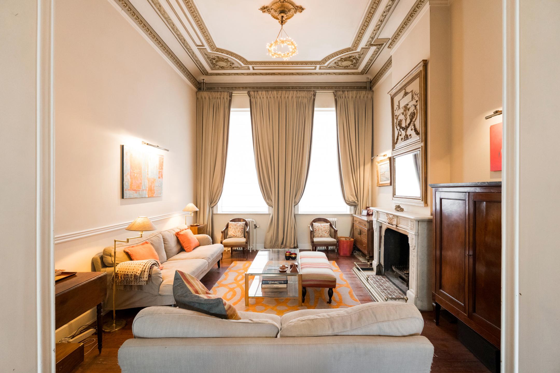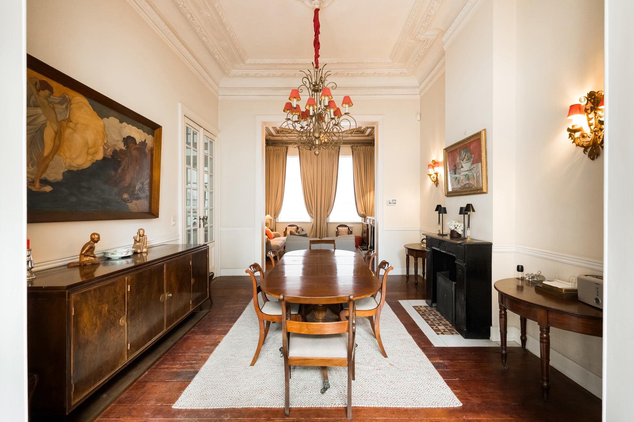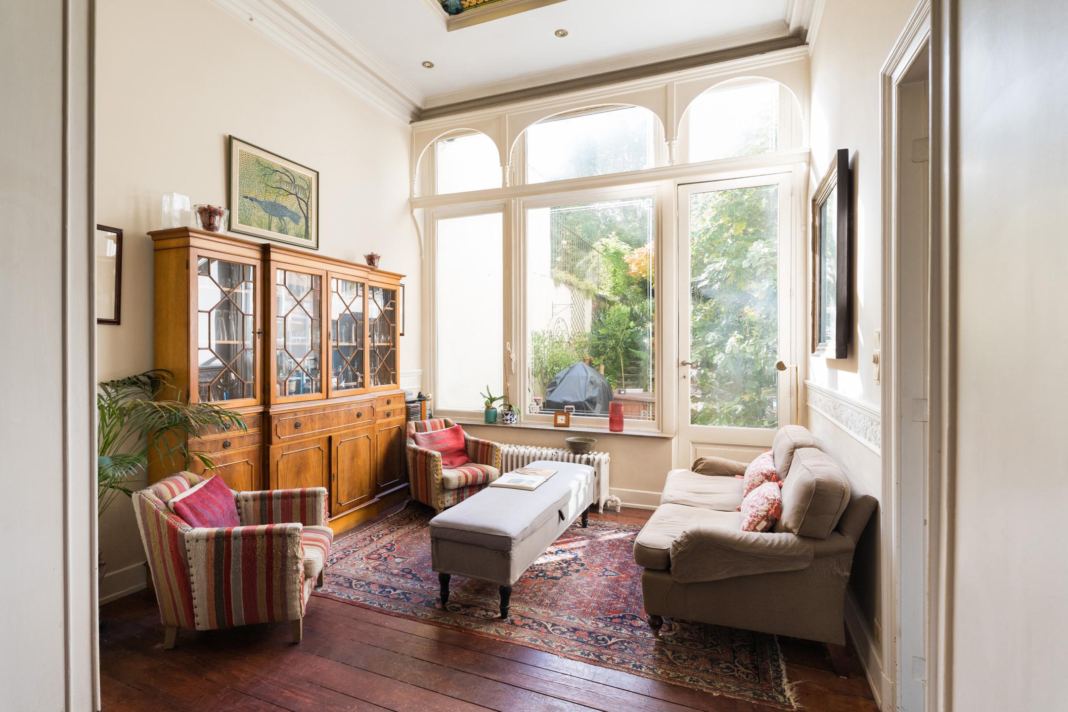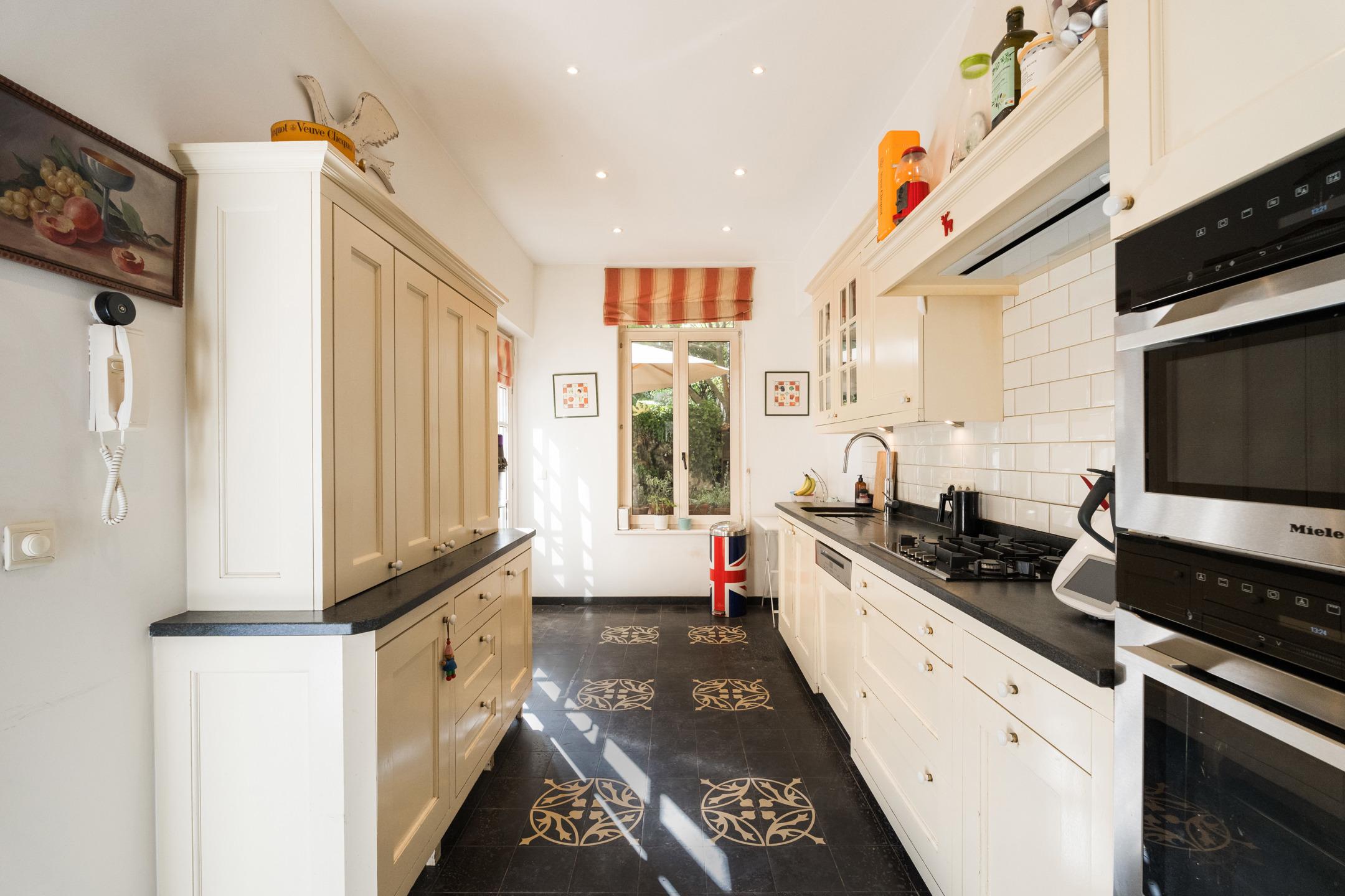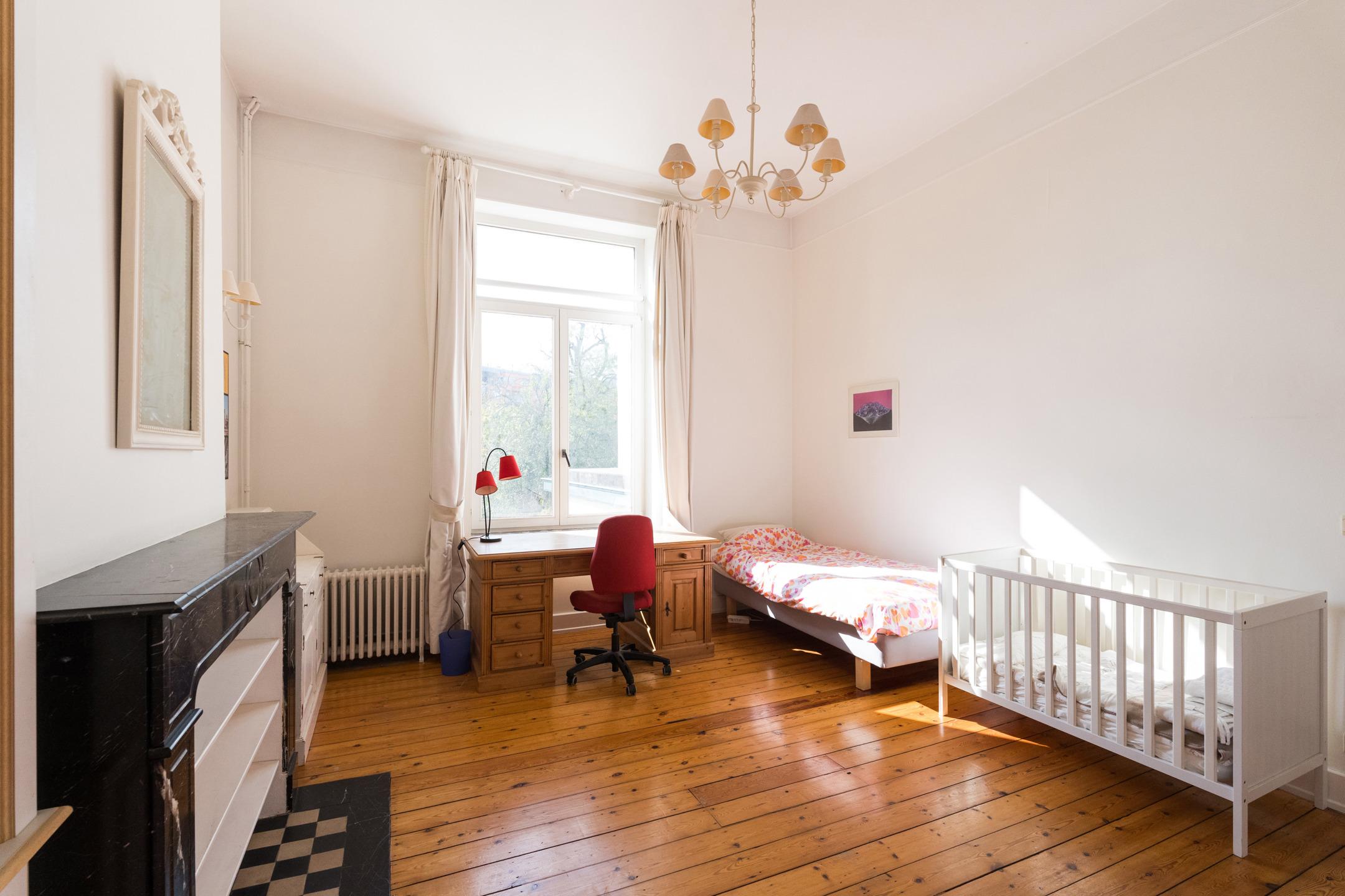 IXELLES - CHATELAIN : Superbe MAISON de Maître (5ch./3sdb./bur.) de 342 m² (selon PEB) développant 6,60 m de façade sur un terrain de 3a65ca. Elle se compose comme suit : Au rez-de-chaussée: Hall d'entrée, superbes réceptions de ± 55 m² comprenant un salon avec feu ouvert fonctionnel, salle à manger de ± 20 m² et un second salon donnant accès à la terrasse et au jardin paysagé sans vis-à-vis de ± 200 m² orientés Sud-Ouest, cuisine équipée séparée. A l'entresol : wc et agréable bureau. Au premier étage: Chambre n°1 de ± 50 m² comprenant un dressing, une salle de bains ainsi qu'une terrasse. Chambre n°2 de ± 13.5 m² en entresol. Au deuxième étage : Chambre n°3 et 4 de ± 22 et 20 m², salle de bains, wc séparé. Au troisième étage : chambre n°5 de ± 21 m² et salle de bains. Studio d'appoint de ± 37 m² comprenant un séjour avec cuisine ouverte et une mezzanine, cet espace est idéal en tant que "Guest room" ou pour "Jeune fille au pair". Au niveau inférieur : Pièces polyvalentes de ± 40 m² actuellement aménagées en buanderie, un cellier, diverses caves et wc. Egalement : Double vitrage en bois - Chaudière au gaz à condensation (2021) - R.U. en cours - PEB F - Possibilité de louer un parking. La maison se présente dans un excellent état général, la plupart des éléments d’époque ont été conservés (parquet, menuiseries, ferronnerie, marbres, moulures et vitraux). Coup de cœur assuré, à découvrir avec L&P.