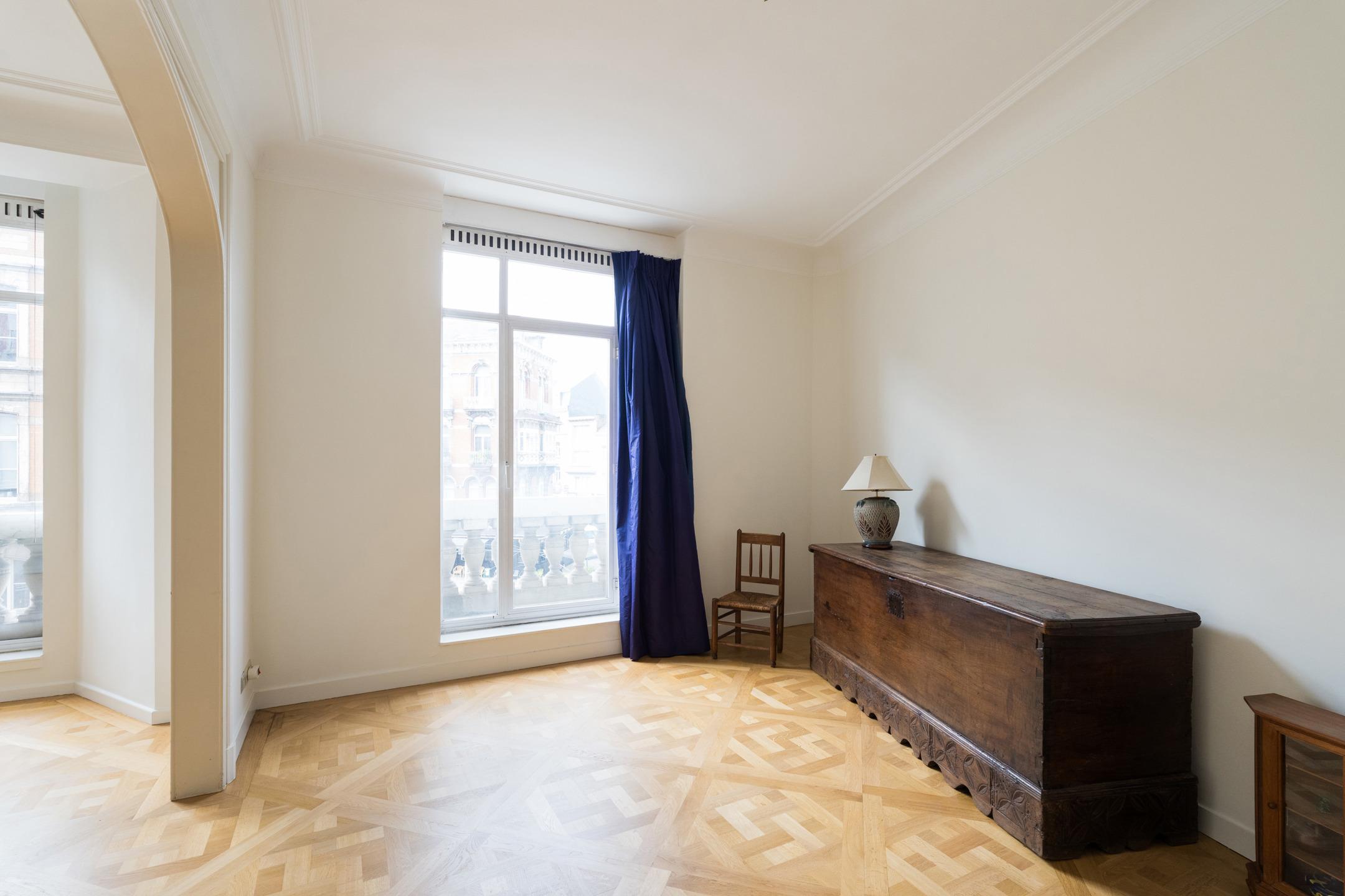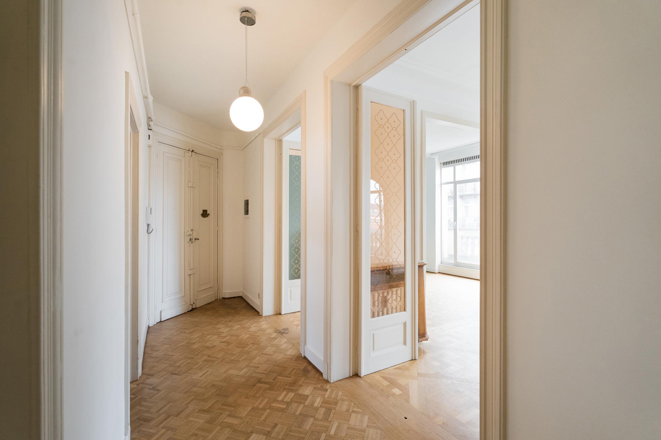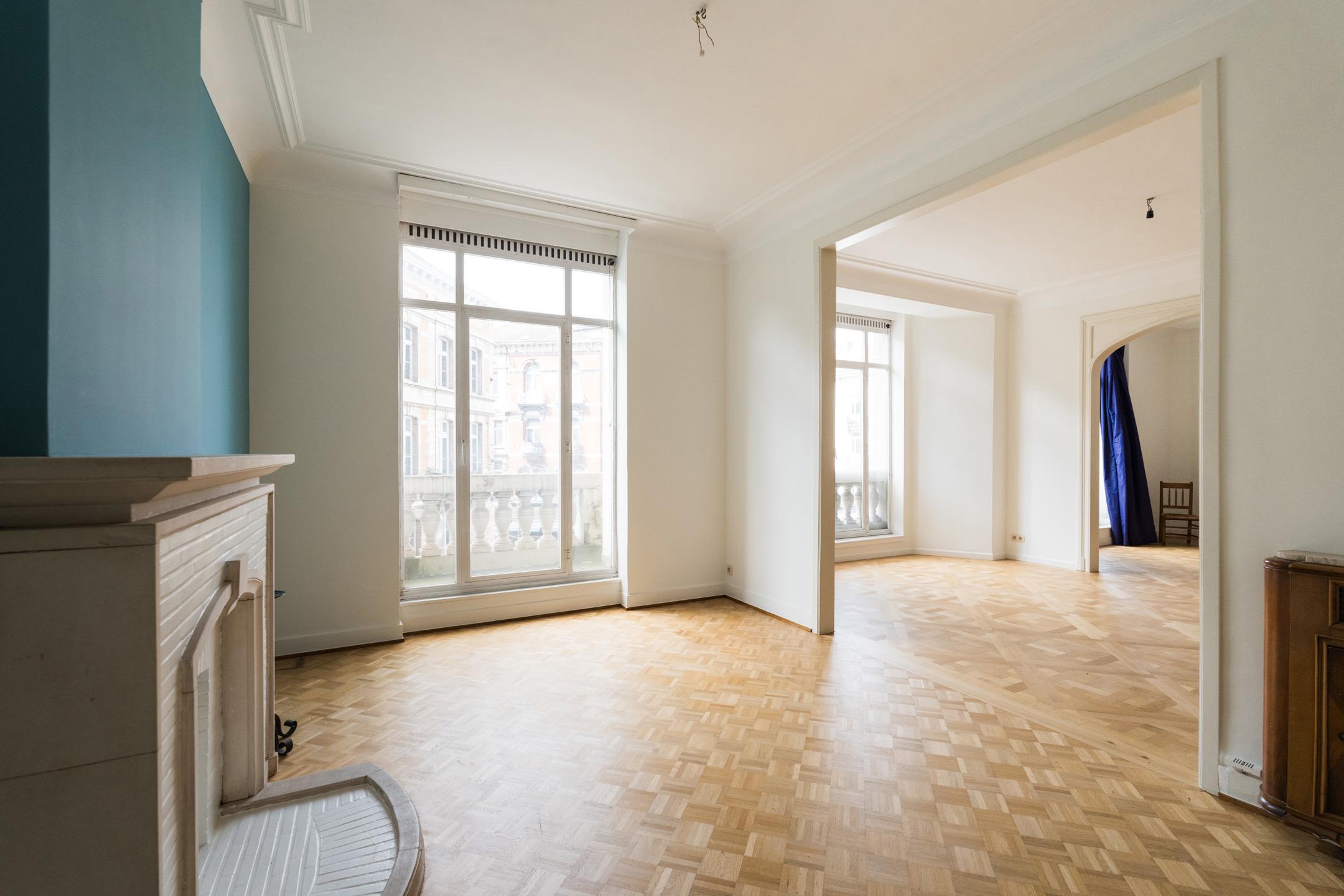 SOUS OPTION, sous réserve de signature du compromis. Inscrivez-vous sur www.latouretpetit.be pour recevoir nos biens en avant-première.SAINT-GILLES, Barrière, à deux pas de la place VAN MENEEN, superbe APPARTEMENT (2ch./1sdb) de caractère de ± 115 m² situé dans un immeuble Haussmannien. Il se compose comme suit : Hall de réception, séjour et salle à manger de ± 35 m² avec balcons orientés Sud-Ouest, première chambre de ± 16 m² (actuellement bureau open space), cuisine équipée et séparée de ± 16 m², wc invités avec lave-mains. Hall de nuit, seconde chambre de ± 15 m² (donnant à l'arrière), salle de bains (baignoire, vasque posée sur meuble, wc, raccord buanderie), placard débarras. Egalement : Double vitrage PVC, vidéophonie, chaudière commune gaz à condensation (2008), deux boilers individuelles pour l'eau chaude privative, local vélo, ascenseur aux normes. L'appartement a été entièrement rafraichit en 2024, les réceptions disposent d'un magnifique parquet Versailles, d'une cheminée décorative, de boiseries d'origines et d'une hauteur sous plafonds de ± 3 mètres. Une chambre de service ainsi qu'une cave complète ce bien. A visiter en exclusivité avec L&P !