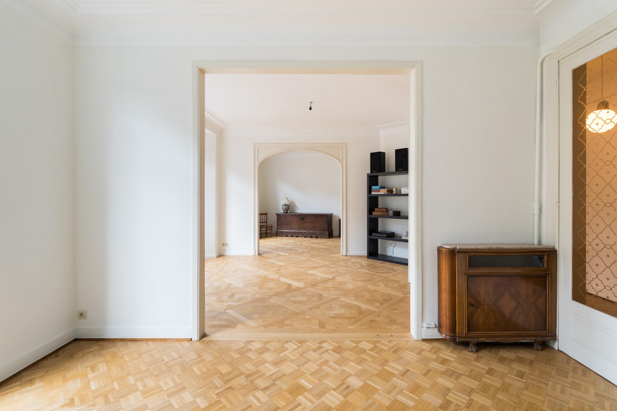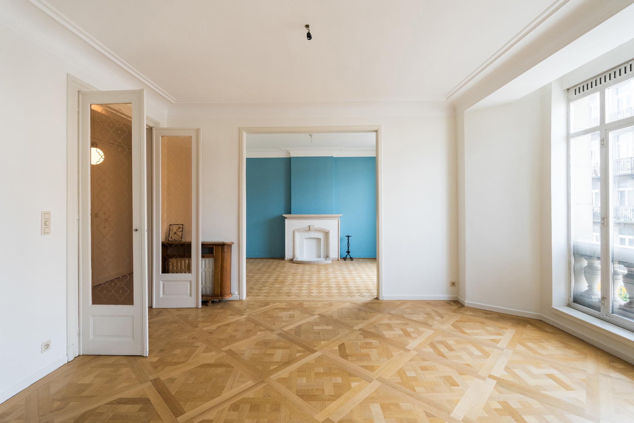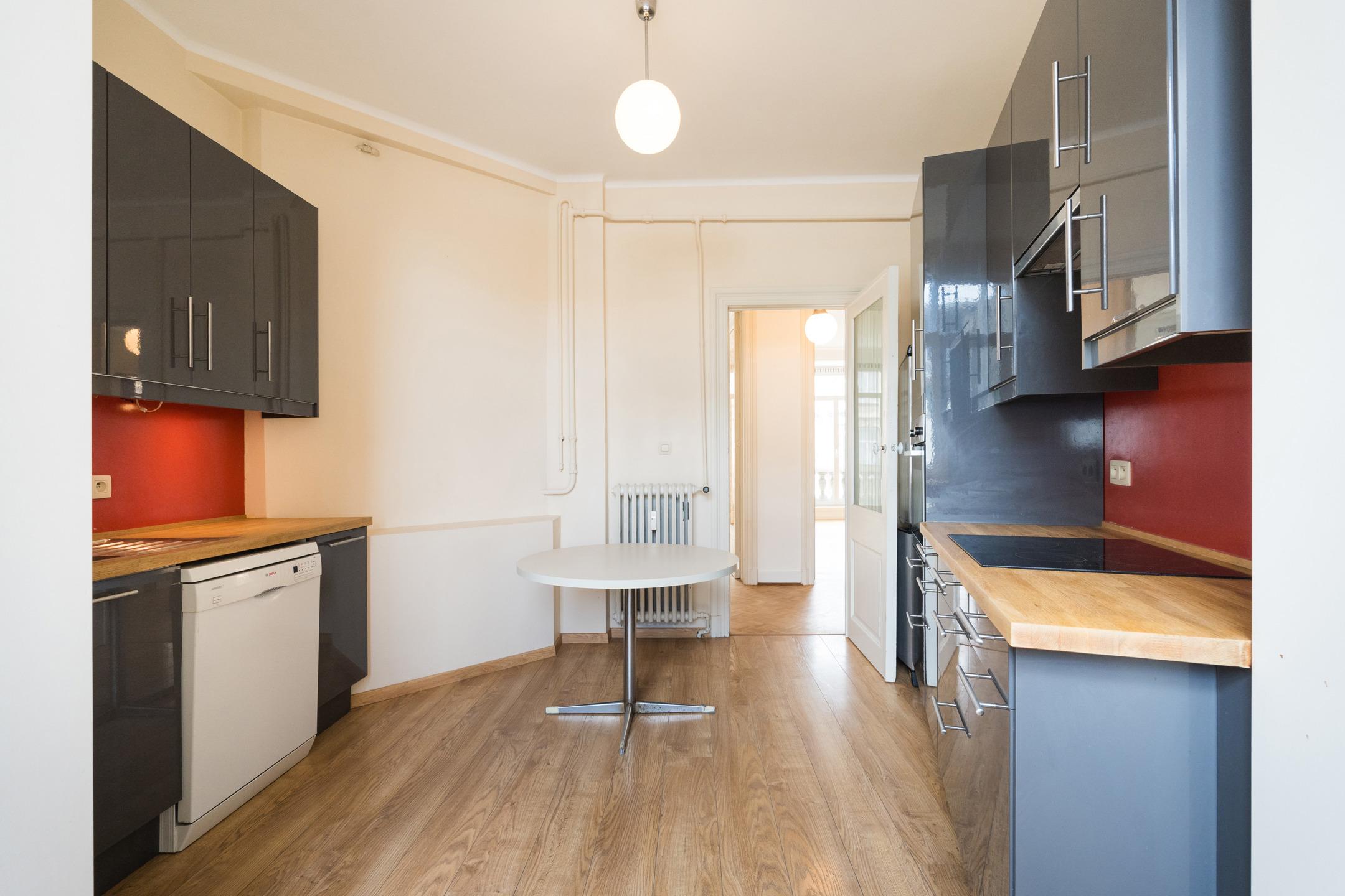 SOUS OPTION, sous réserve de signature du compromis. Inscrivez-vous sur www.latouretpetit.be pour recevoir nos biens en avant-première.SAINT-GILLES, Barrière, à deux pas de la place VAN MENEEN, superbe APPARTEMENT (2ch./1sdb) de caractère de ± 115 m² situé dans un immeuble Haussmannien. Il se compose comme suit : Hall de réception, séjour et salle à manger de ± 35 m² avec balcons orientés Sud-Ouest, première chambre de ± 16 m² (actuellement bureau open space), cuisine équipée et séparée de ± 16 m², wc invités avec lave-mains. Hall de nuit, seconde chambre de ± 15 m² (donnant à l'arrière), salle de bains (baignoire, vasque posée sur meuble, wc, raccord buanderie), placard débarras. Egalement : Double vitrage PVC, vidéophonie, chaudière commune gaz à condensation (2008), deux boilers individuelles pour l'eau chaude privative, local vélo, ascenseur aux normes. L'appartement a été entièrement rafraichit en 2024, les réceptions disposent d'un magnifique parquet Versailles, d'une cheminée décorative, de boiseries d'origines et d'une hauteur sous plafonds de ± 3 mètres. Une chambre de service ainsi qu'une cave complète ce bien. A visiter en exclusivité avec L&P !