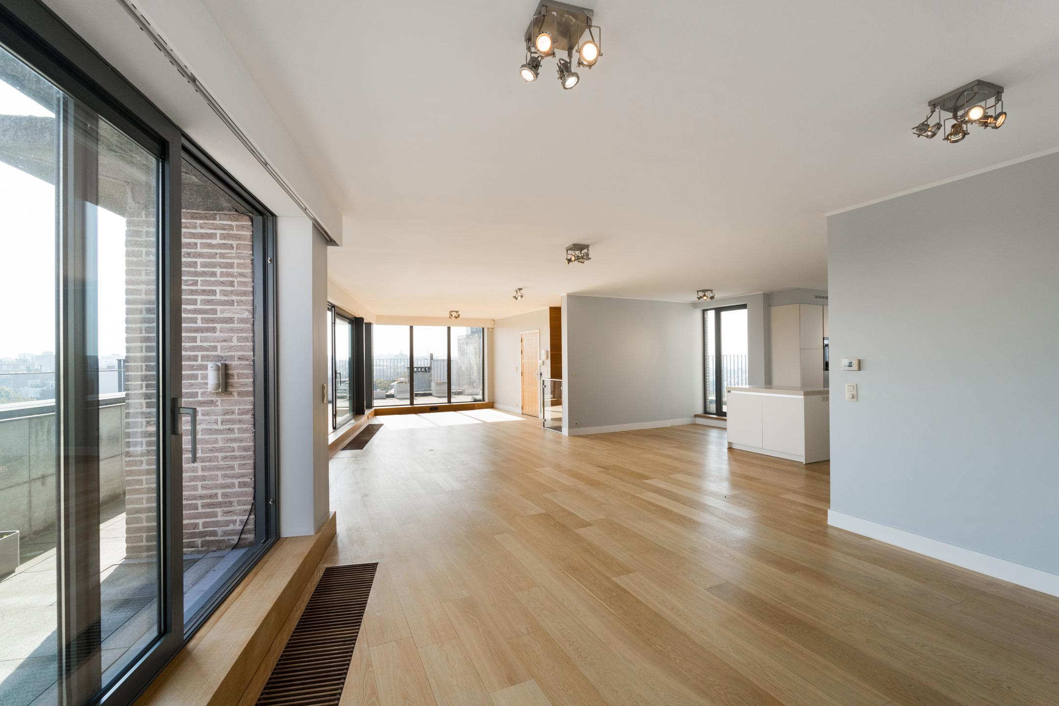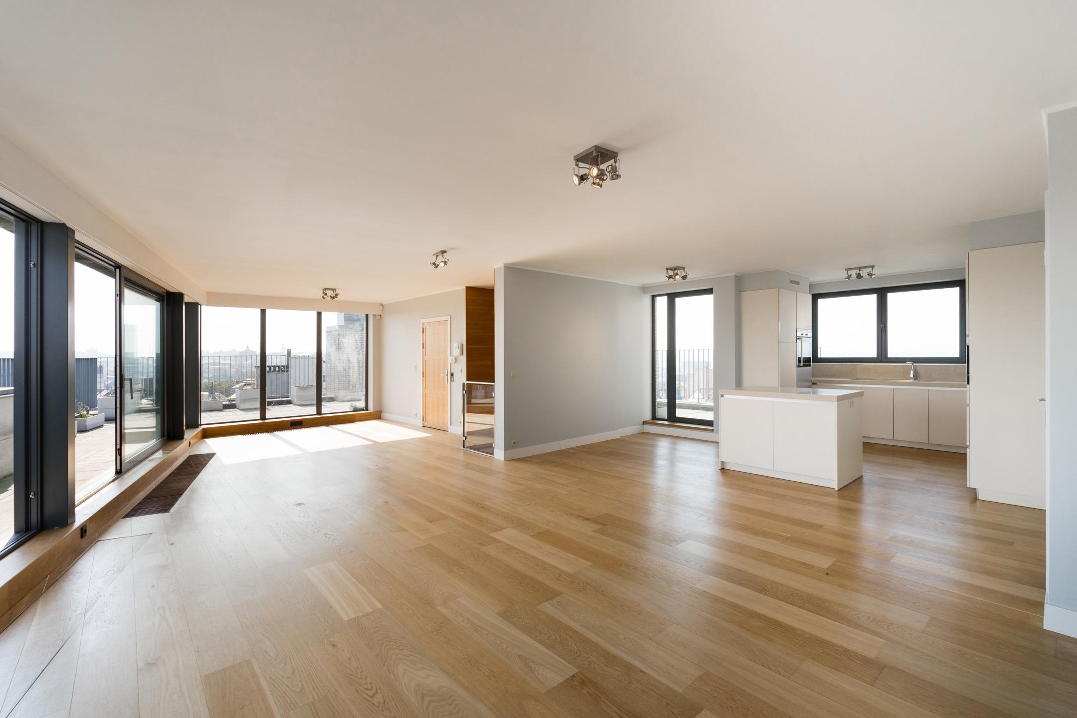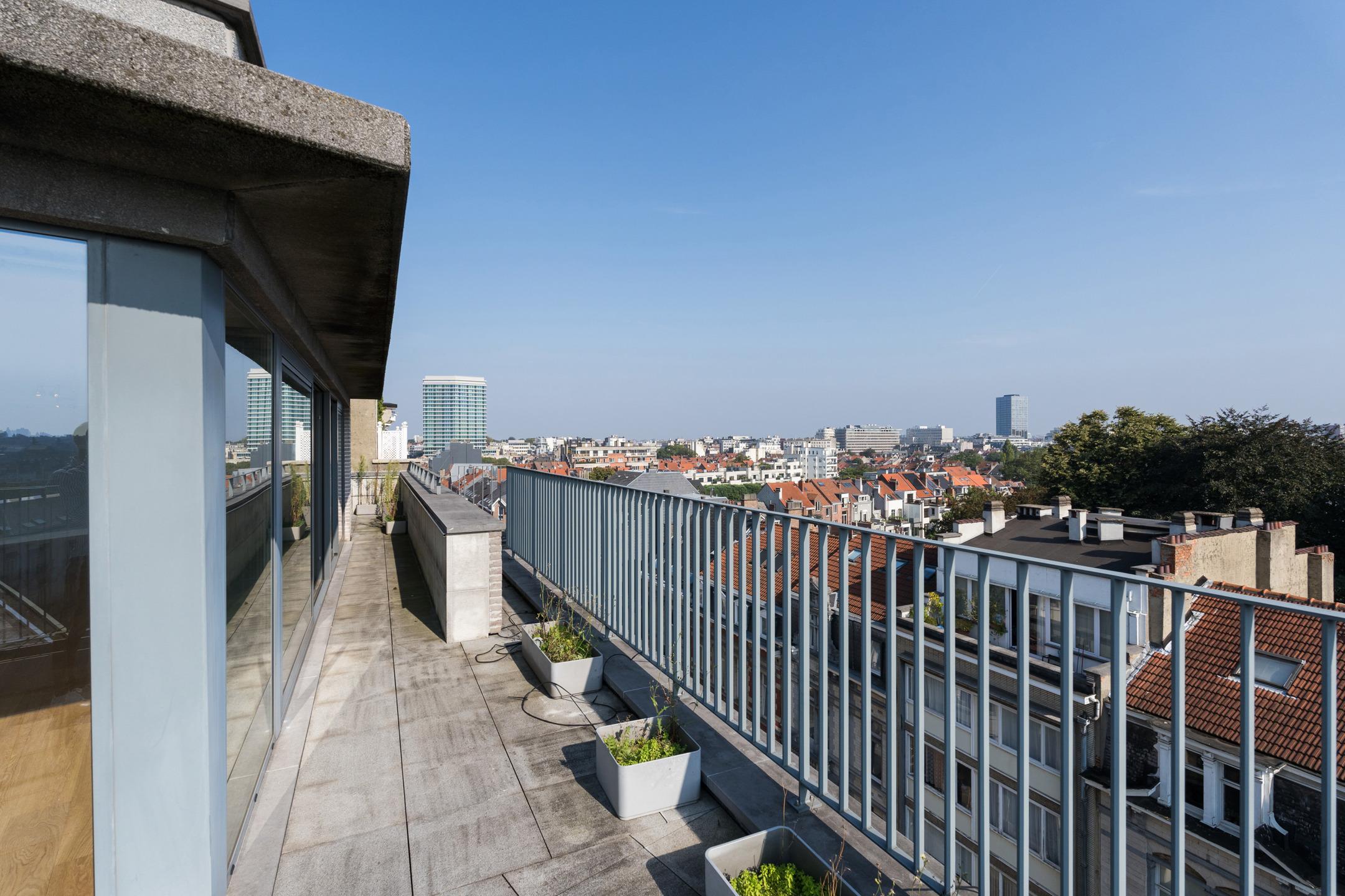 SAINT-GILLES, à proximité immédiate de la Place du Châtelain, APPARTEMENT Penthouse (2Ch/2Sdb) de ± 196 m² (surface PEB). Situé 7ème et dernier étage, il se offre un cadre de vie unique et lumineux. Sa spacieuse terrasse de ± 45m² dévoile une vue panoramique imprenable sur Bruxelles. Celui-ci se compose comme suit : Au 8ème étage: hall d'entrée avec toilette invités, lumineuse réception de ± 80 m² avec accès à la terrasse, cuisine ouverte super-équipée et espace buanderie. Au 7ème étage: vaste suite principale avec dressing et salle de bains attenante, seconde chambre, salle de bains. Possibilité de faire une troisième chambre. Une cave et deux emplacements de parking complètent le bien. Chaudière individuelle au gaz. PEB C. Charges communes : ±200€/mois. Installation électrique conforme. L'ascenseur dessert tous les étages. L'appartement allie un niveau élevé de performances énergétiques, des finitions intérieures de grande qualité et une garantie maximale en terme de sécurité. Un magnifique bien, idéalement situé à découvrir rapidement avec L&P!