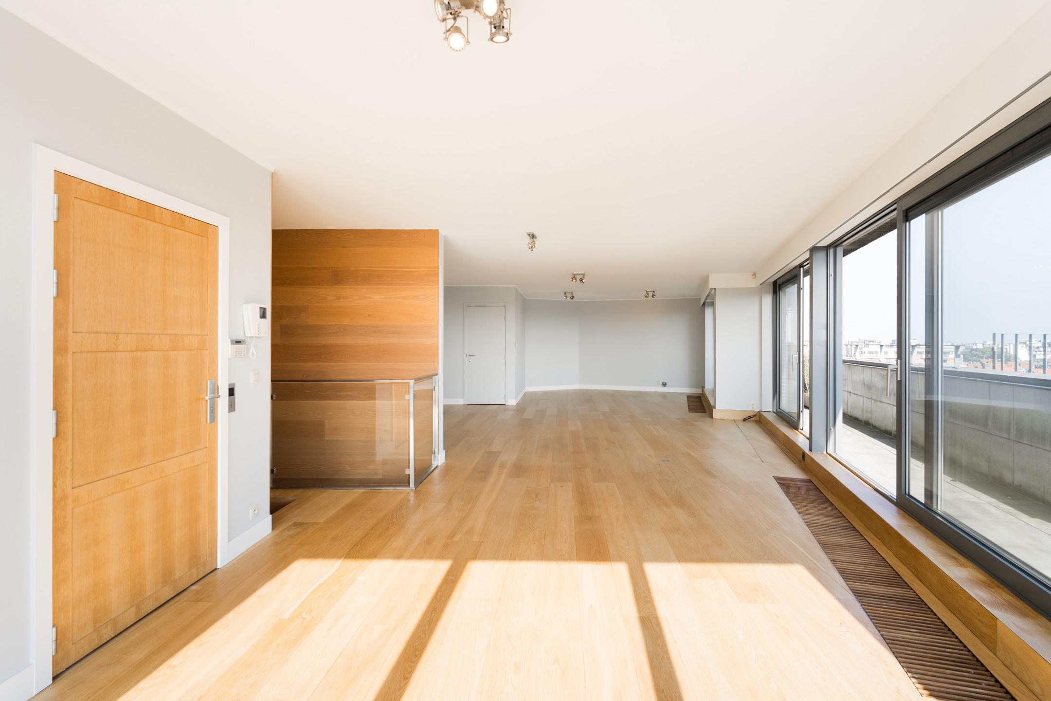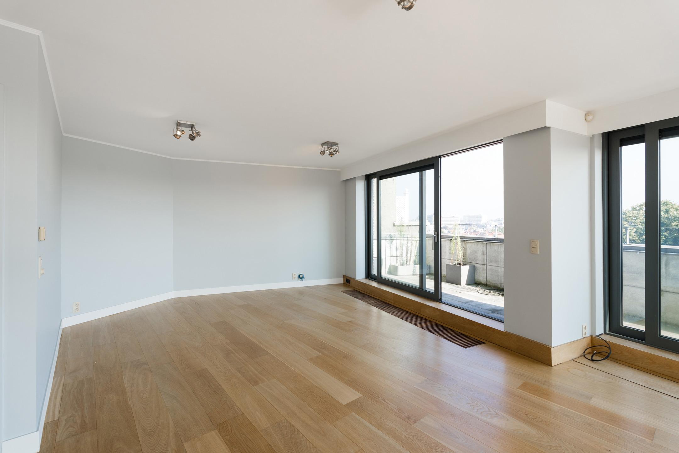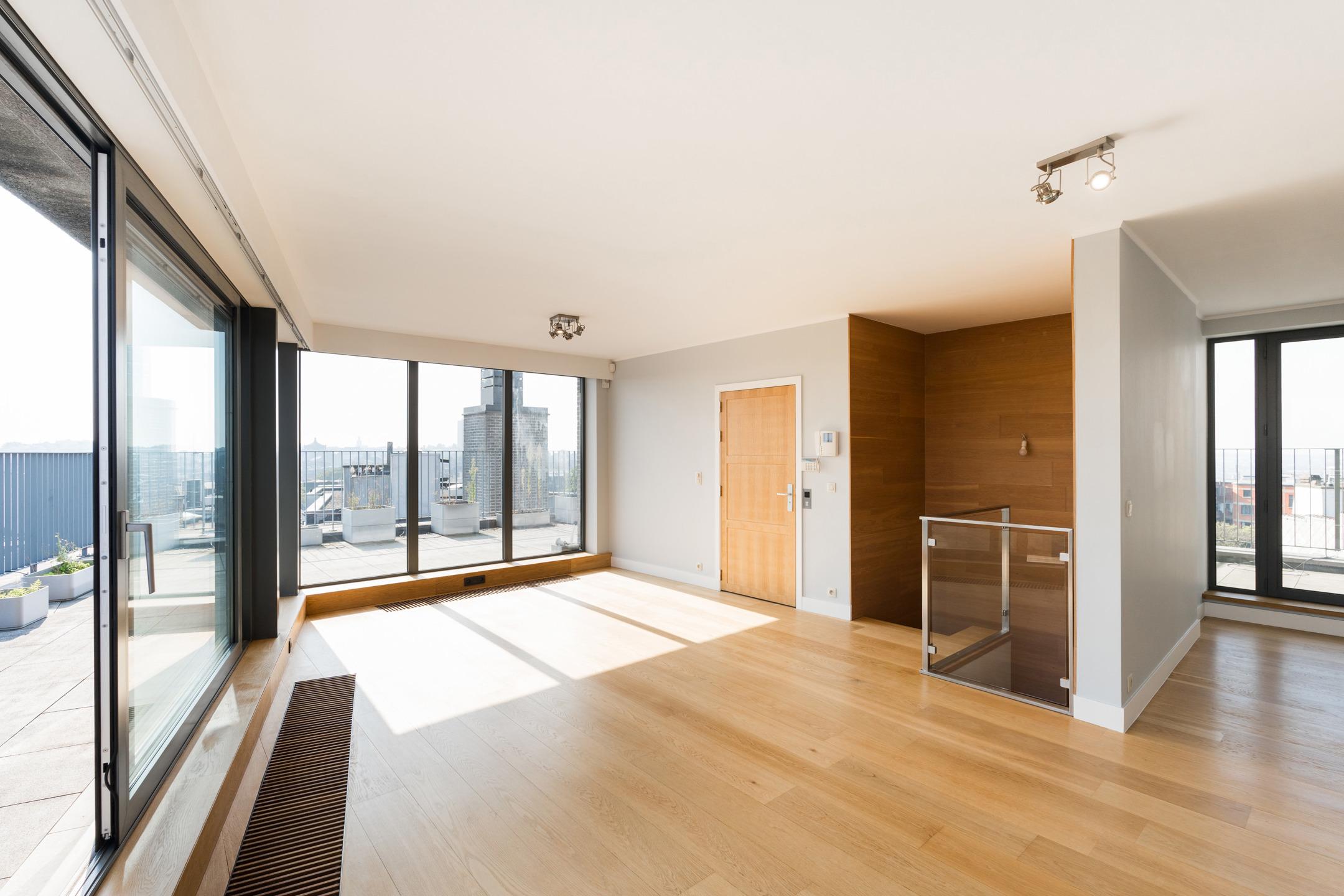 SAINT-GILLES, à proximité immédiate de la Place du Châtelain, APPARTEMENT Penthouse (2Ch/2Sdb) de ± 196 m² (surface PEB). Situé 7ème et dernier étage, il se offre un cadre de vie unique et lumineux. Sa spacieuse terrasse de ± 45m² dévoile une vue panoramique imprenable sur Bruxelles. Celui-ci se compose comme suit : Au 8ème étage: hall d'entrée avec toilette invités, lumineuse réception de ± 80 m² avec accès à la terrasse, cuisine ouverte super-équipée et espace buanderie. Au 7ème étage: vaste suite principale avec dressing et salle de bains attenante, seconde chambre, salle de bains. Possibilité de faire une troisième chambre. Une cave et deux emplacements de parking complètent le bien. Chaudière individuelle au gaz. PEB C. Charges communes : ±200€/mois. Installation électrique conforme. L'ascenseur dessert tous les étages. L'appartement allie un niveau élevé de performances énergétiques, des finitions intérieures de grande qualité et une garantie maximale en terme de sécurité. Un magnifique bien, idéalement situé à découvrir rapidement avec L&P!