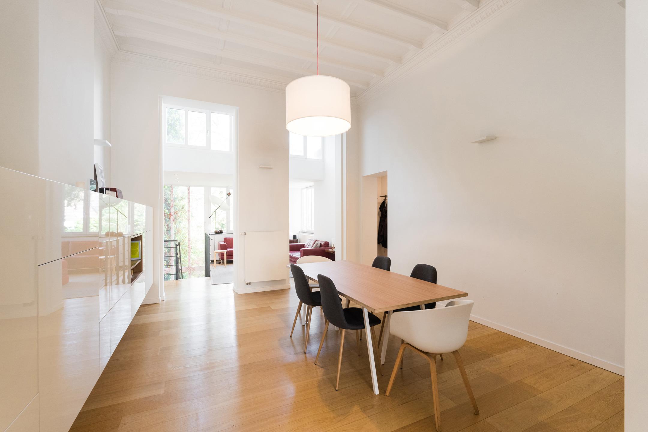 SAINT-GILLES, Avenue des Villas, Parc de Forest, au Rez et Bel étage d'une petite copropriété, magnifique APPARTEMENT DUPLEX (3ch.2sdb) de ± 282 m² bruts avec jardin de ± 380 m² et terrasse. Cet appartement entièrement rénové avec beaucoup de goût et des matériaux de qualité se compose comme suit: Au bel étage, 1er salon/bureau bibliothèque de ±28 m², escalier vers petit bureau, vestiaire, toilette invités japonaise, salle à manger ±24 m², avec meubles de rangement design intégrés et plafonds moulurés de 4,20m de haut, cuisine super équipée avec îlot central de ±13 m², deuxième salon côté jardin ±20 m², donnant accès au premier niveau et au jardin, hall de nuit avec placards, salle de bains, une chambre de ±17m² avec placards intégrés. Au premier niveau, salle polyvalente de ±44 m² avec insert, donnant accès à la terrasse et au jardin offrant une jolie vue dégagée sans vis-à-vis, deuxième hall de nuit, deux chambres de respectivement ±15,50m² et ±13,50m², dressing, une salle de douche . Une buanderie et chaufferie de ±18 m² et une cave de rangement complètent ce niveau qui dispose d' un accès privatif indépendant. PEB D-. Charges communes ±135€/mois. Un très beau bien à découvrir en exclusivité chez Latour et Petit!