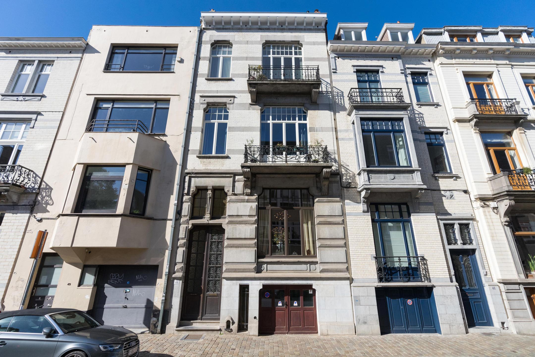 SAINT-GILLES, dans une rue calme entre le Châtelain et Ma Campagne, magnifique MAISON (8ch/4sdb) construite en 1902 sur 680m² avec super JARDIN de 260m², GARAGE 4 voitures et ascenseur. Avec une largeur de 7m et des magnifique volumes, elle a fait l'objet d'une rénovation complète en 2009/2010 tout en ayant conservé son caractère. Elle se compose, au rez-de-chaussée (bel-étage), d'un hall avec ascenseur, wc et escalier en granito. Majestueuses réceptions avec 3 pièces en enfilade avec de belles hauteurs sous plafonds, boiseries et plancher, salon avec insert au gaz, salle à manger et cuisine super-équipée avec accès à la terrasse et au jardin de 260m² qui jouit d'un bel ensoleillement (Nord-Ouest) avec bureau/atelier de jardin. Au 1er étage : vestiaire et wc à l'entresol, 2 chambres, salle de douche et chambre 3 parentale avec balcon, dressing intégré et salle de bains. Au 2ème étage : chambre/bureau à l'entresol, salle de douche et 3 chambres dont une utilisée en séjour avec cuisine super-équipée (Electro SMEG) et balcon (poss. suite parentale). Au 3ème étage : 2 chambres, terrasse de 28,9m² Nord-Ouest, salle de bains. Accès au grenier aménagé (poss. chambre, salle de jeux..). En sous-sol : garage 4 voitures en enfilade, caves, chaufferie et accès au jardin. Chaudières à condensation. Châssis bois dv (2009). Toiture isolée. Electricité conforme. PEB F et G. Toutes les facilités à disposition : commerces, transports, marché du Châtelain, écoles belges et internationales, bois de la Cambre... Poss. de diviser le bien en 2 beaux appartements moyennant permis. Un bien d'exception à découvrir en exclusivité avec L&P!