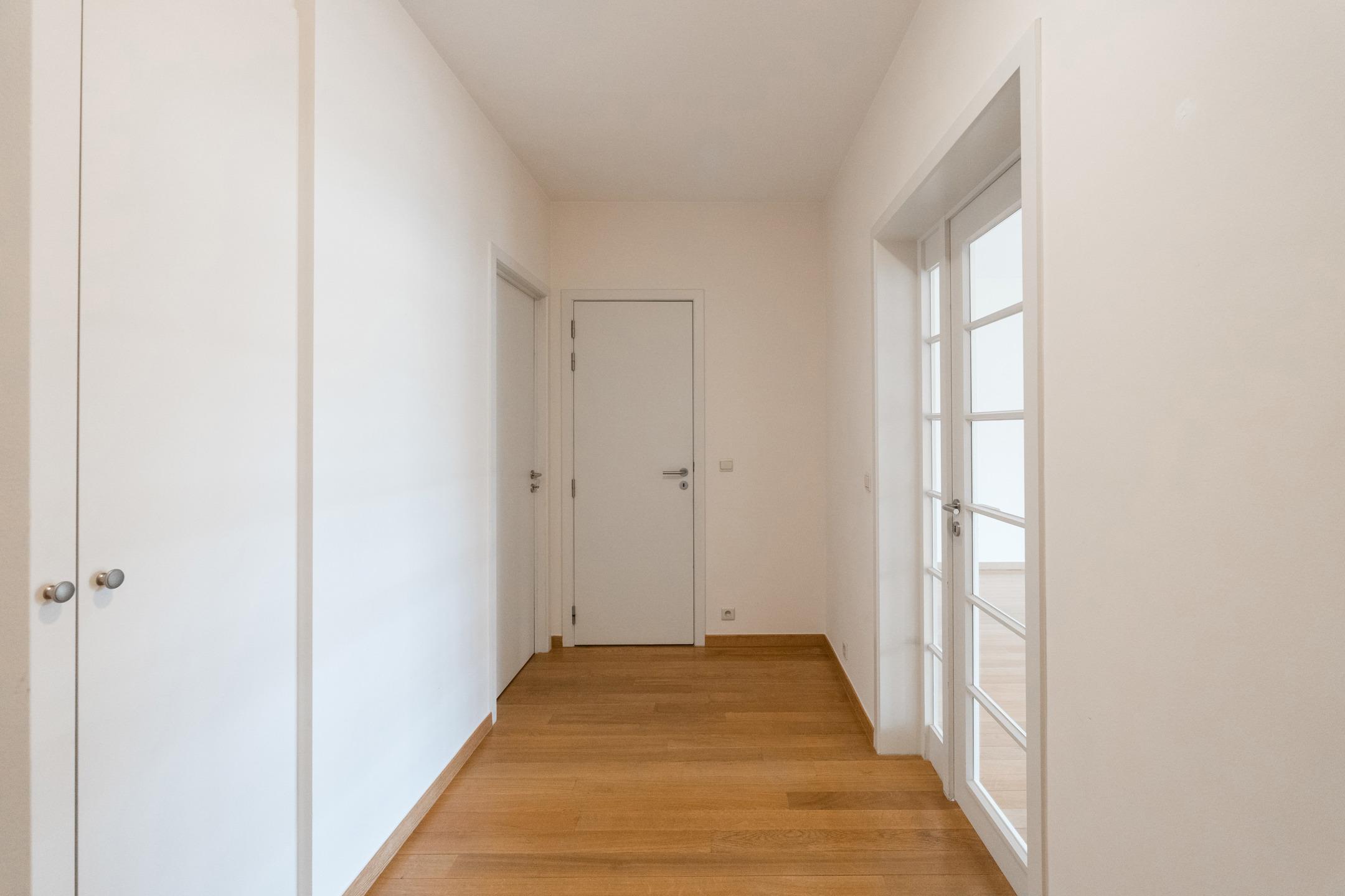 WOLUWE-SAINT-PIERRE, Drève des Shetlands à proximité de la Place Dumon. Magnifique APPARTEMENT (3ch/2sdb) de 135m² avec terrasses et emplacement de parking. Situé au 4e étage sur 5 d'un immeuble de 2005 avec ascenseur, il se compose comme suit: hall d'entrée avec espace vestiaire, toilette invités, living (36m²) avec accès vers une terrasse de 8m² orientée Sud-Ouest, cuisine super-équipée, local chaufferie/buanderie, hall de nuit, deux chambres (13 et 15m²) dont une avec terrasse (8m²) orientée Nord-Est, salle de douche (douche, lavabo), grande chambre parentale avec placards et sa salle de bain privative (baignoire, 2 lavabos, wc). Cave et emplacement de parking au sous-sol. Electricité conforme. Charges: +-200€/mois (communs, concierge, assurance) et +-100€/mois (fonds de réserve) PEB: C (119kWh/m²/an). A découvrir en exclusivité chez L&P!