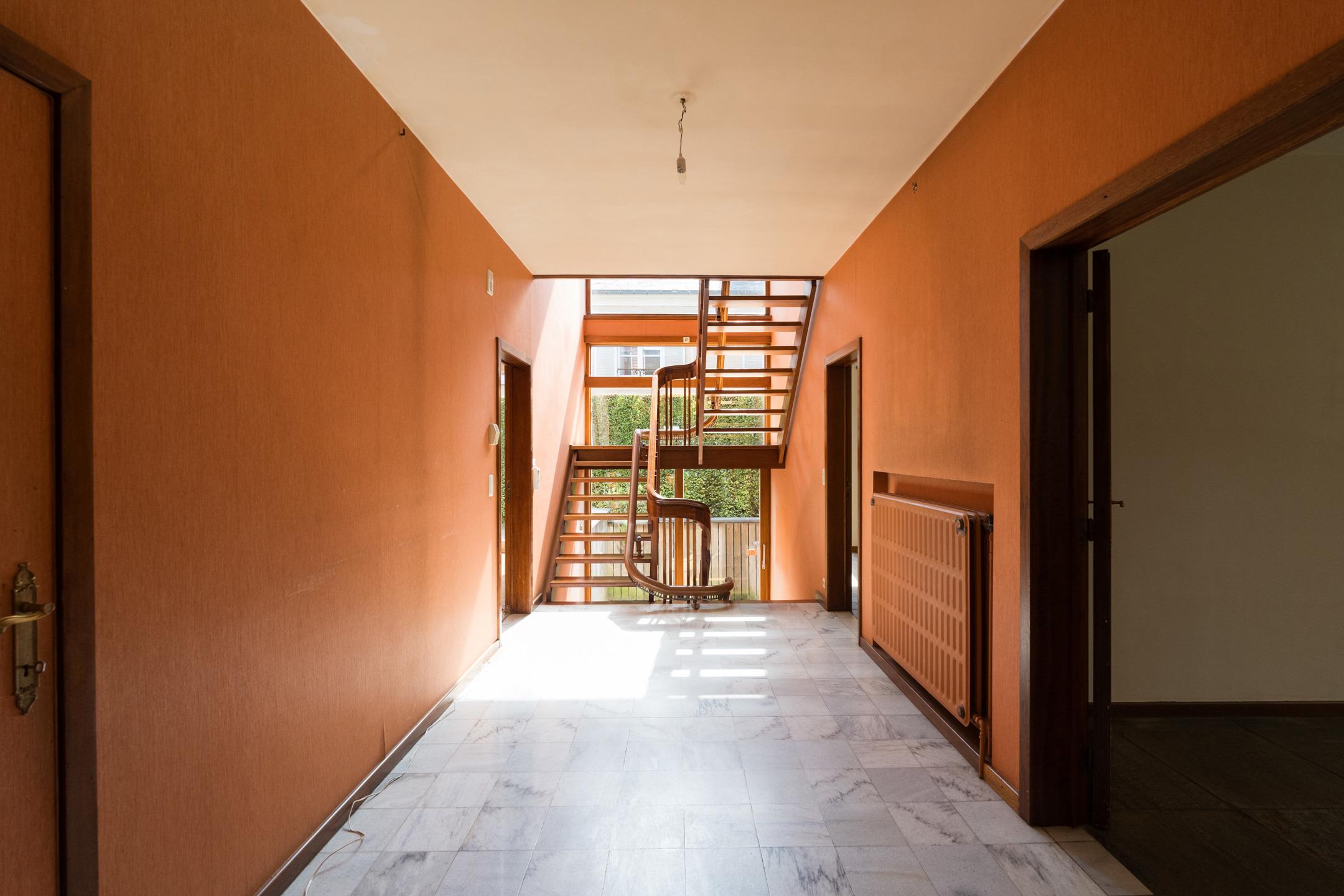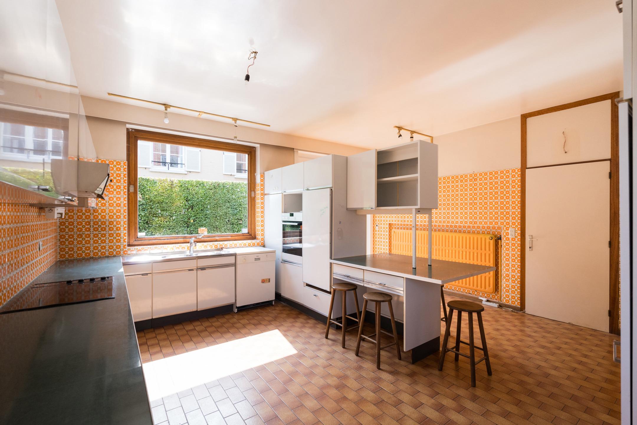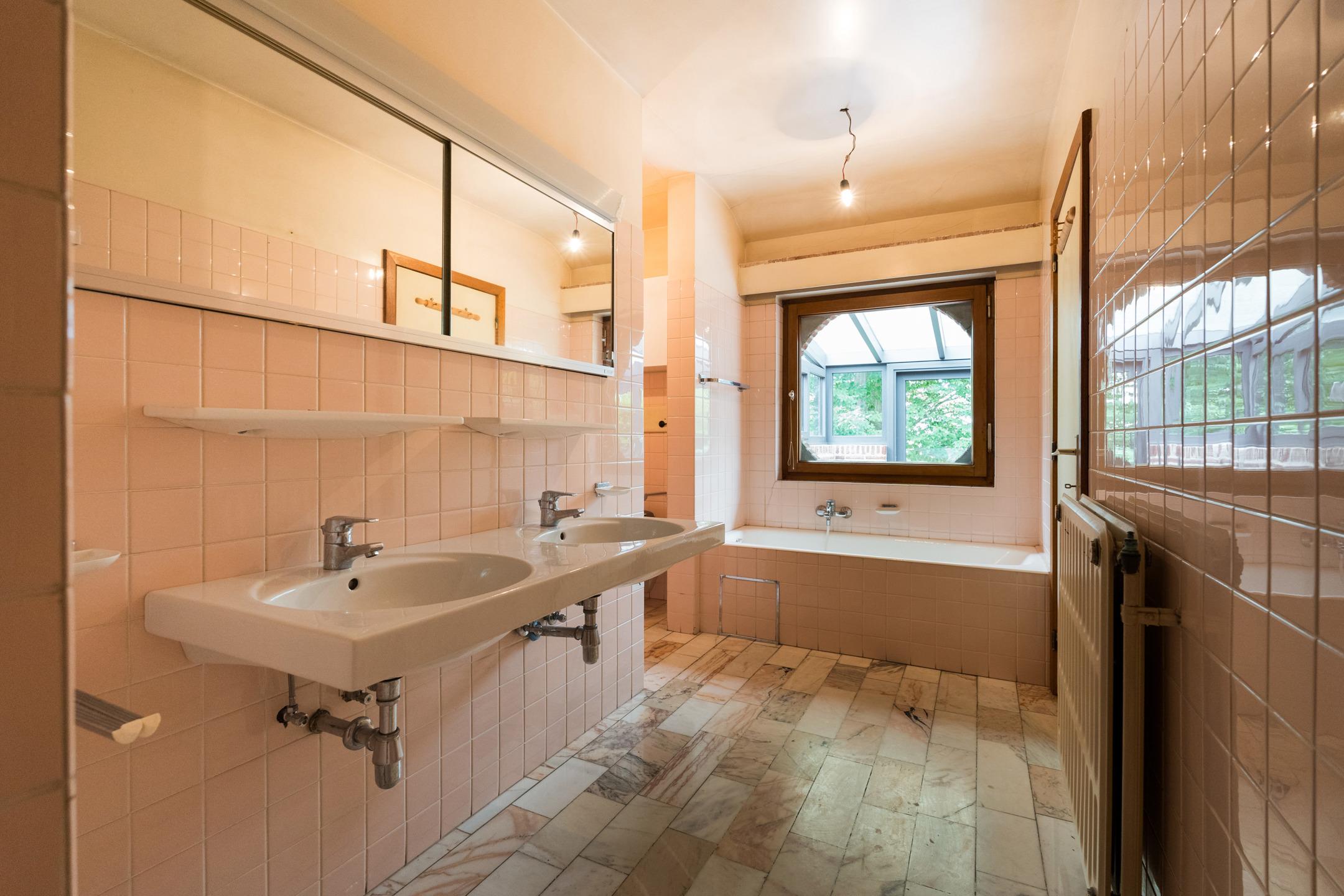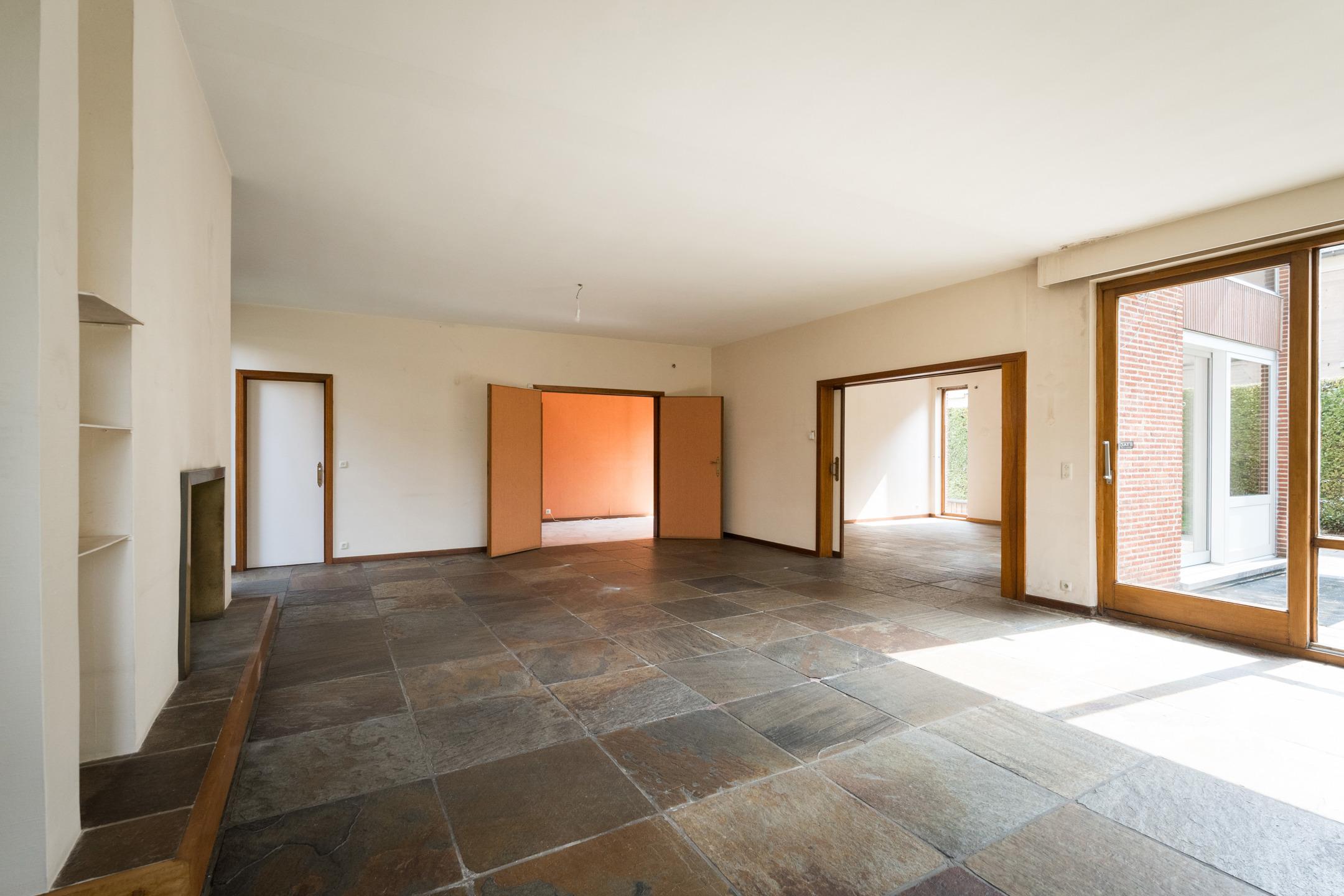 WOLUWE SAINT PIERRE, située dans un petit clos très calme et vert, magnifique VILLA de style moderniste à rénover (4ch/3sdb/2 bur) de +/- 480m² construits agrémentée d'un beau jardin bien orienté (Ouest). Construite en 1972, elle se compose au rez-de-chaussée d'un hall d’entrée avec vestiaire et toilette, salle polyvalente avec point d'eau, bureau avec point d'eau, grand garage 2 voitures, chaufferie, buanderie, cave de rangement/cave à vin. Au 1er étage : hall, toilette invité, grande cuisine avec office et accès terrasse. Un bureau, beau salon avec feu ouvert, salle à manger et accès direct au jardin. Au 2e étage : hall de nuit, chambre 1 (17m²) avec salle de douche, chambre 2 (19m²) avec salle de bain complète, chambre 3 (18m²) et chambre 4 (19m²) avec accès salle de bain. Au 3e étage : grenier aménageable (50m²). Possibilité d'installer une profession libérale au rez-de-chaussée. Électricité non conforme, PEB E (258 kWh/m²/an). Un bien d'exception à découvrir sans plus attendre chez L&P !