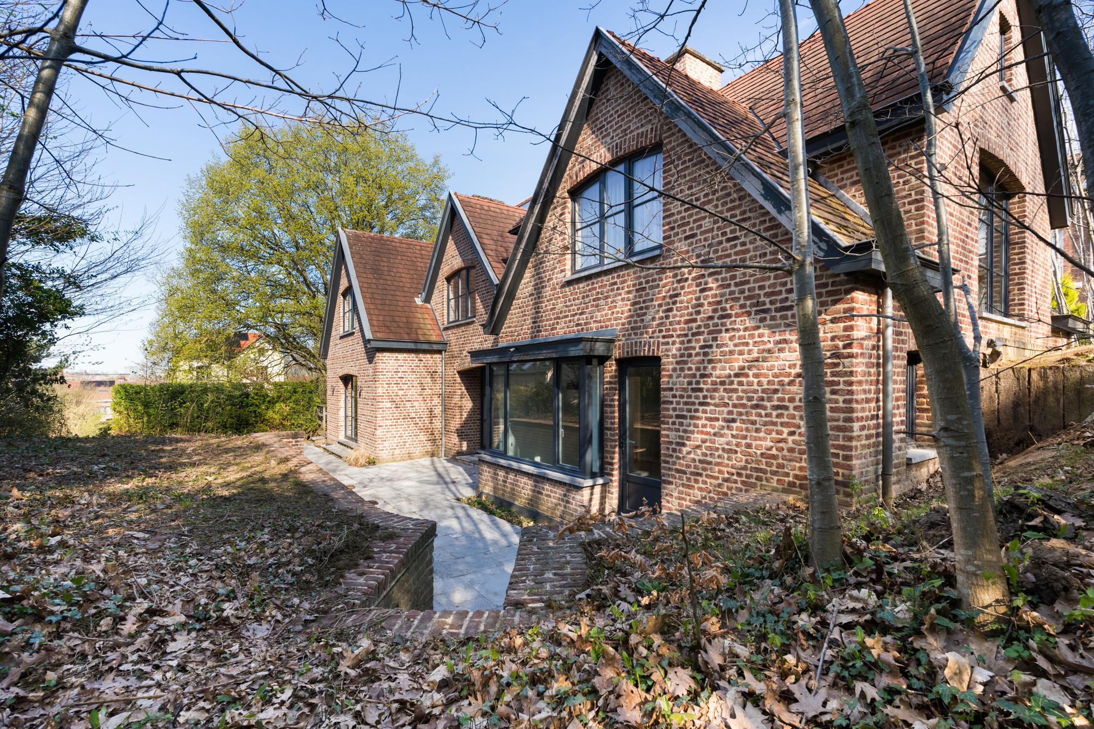 ------SOUS OPTION -------WOLUWE-SAINT-PIERRE, à proximité immédiate du Parc des Sources, superbe VILLA (5ch/4sdb) totalisant +- 432m², nichée sur un terrain de fond de 14ares (d'après le titre). Construite en 2007, la maison se compose comme suit: au rez-de-chaussée: spacieux hall d'entrée avec toilette invités et espace vestiaire, vastes et lumineuses réceptions qui donnent sur une agréable terrasse et un jardin (Sud), cuisine super-équipée avec îlot central, espace à déjeuner et chambre 1 avec salle de douche attenante. Au 1er étage: hall de nuit, superbe chambre parentale totalisant 50m² (incluant salle de bains et beau dressing), 3 autres chambres comprises entre 12,5m² et 19m², salle de bains, salle de douche, toilette séparée et buanderie. Au grenier: deux beaux espaces de jeux aménagés. Au sous-sol: magnifiques caves sur toute la surface de la maison, toilette et un double garage. Panneaux solaires pour production d'eau chaude. Servitude passage. Electricité conforme. PEB "D": 156 kWh/m²/an. A découvrir en exclusivité chez L&P!