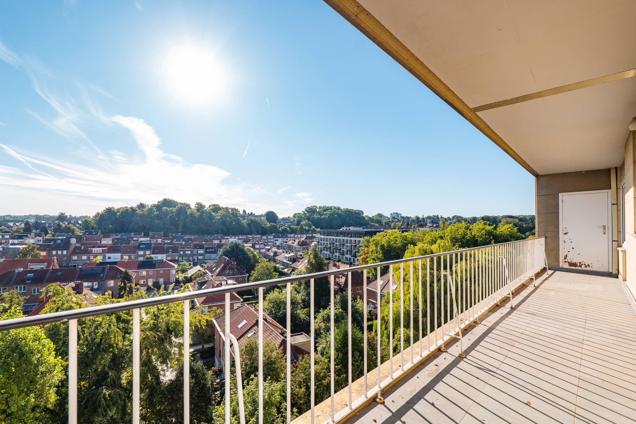 AUDERGHEM, à 2 pas du métro Herman Debroux, Bel appartement avec vue imprenable (2ch/1sdb) de 110m² avec terrasses de 20 m² orientée Est et Ouest, une cave au sous-sol et un box garage dans un immeuble construit en 1968. Situé au 7ème étage sur 8 avec ascenseur, il se compose comme suit : Hall d’entrée avec vestiaire, toilette séparée, spacieux living, cuisine, salle de bain, 2 chambres (16m²) avec placards, 2 terrasses, cave et garage box au sous-sol (inclus dans le prix). Charges ± 270€/mois. PEB C+ (99kWh/m²/an), électricité non-conforme. Une opportunité à découvrir en exclusivité chez L&P.